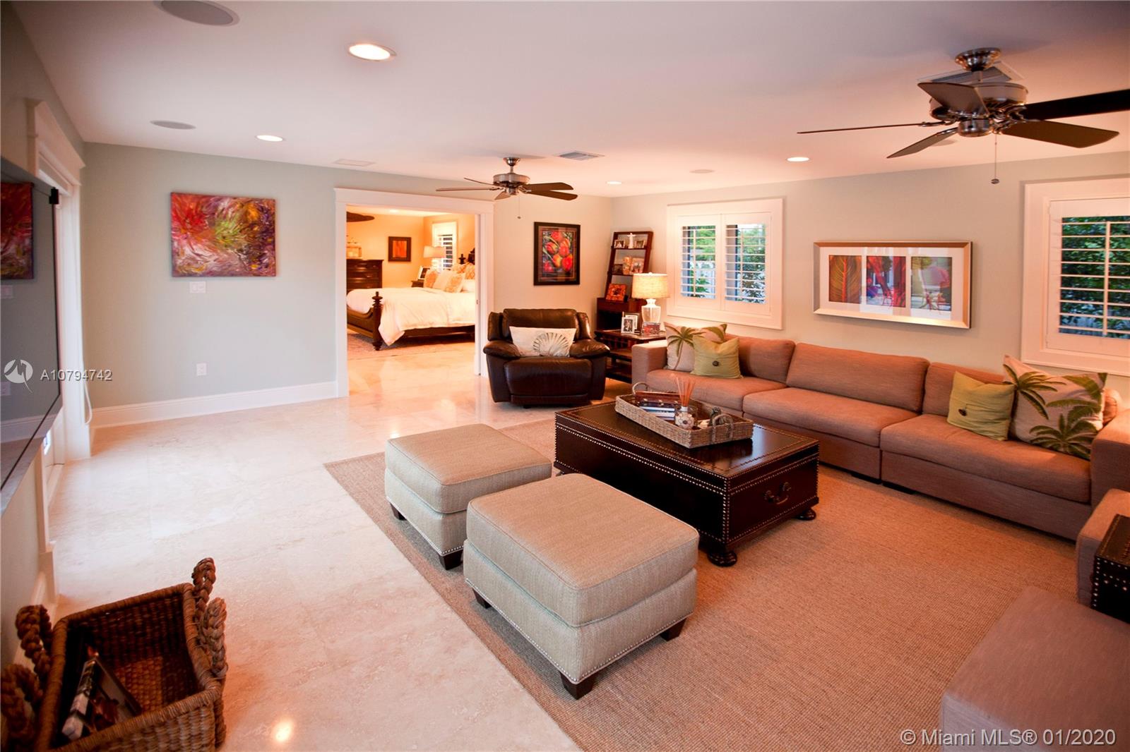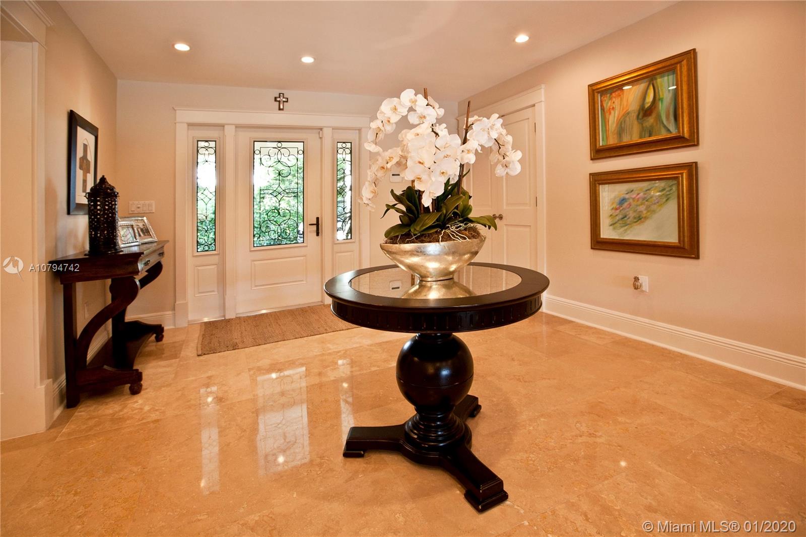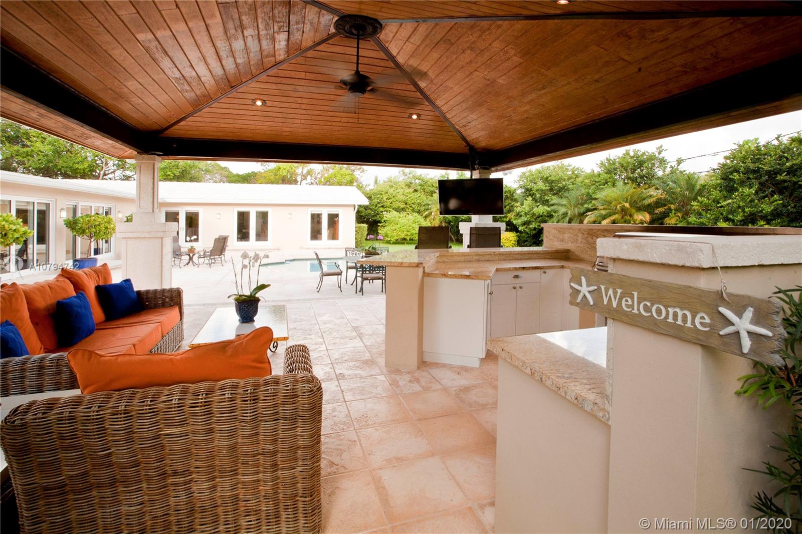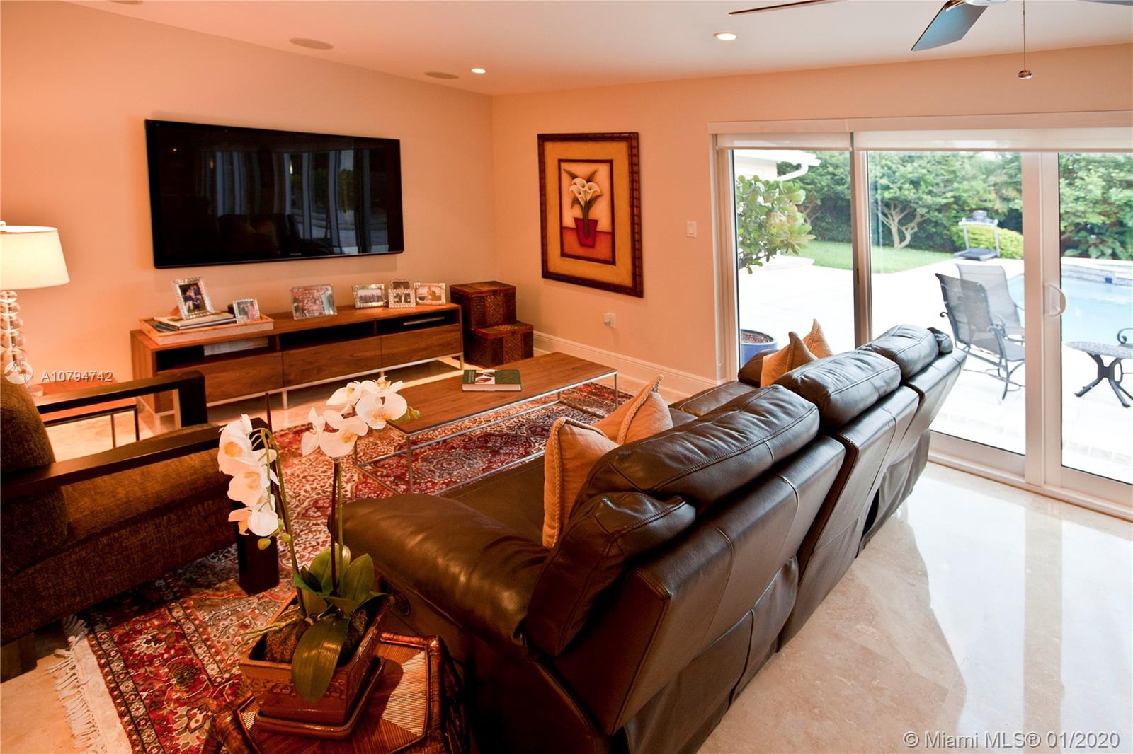 Immaculate and beautifully appointed half-acre home in Pinecrest. This lovely 4 bedroom 3 baths home offers 3723 sqft. of resort like living. The large kitchen is a chef's dream; two islands with top-quality cabinetry, high end appliances and finishes. Huge Master bedroom with its own sitting room overlooking the sparkling blue pool, Jacuzzi and gazebo. This home was fully renovated and updated with impact windows and doors. Beautiful marble floors throughout and hardwood cabinetry in all bathrooms.