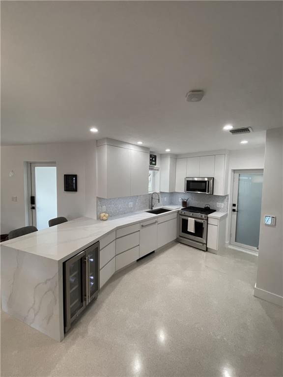 Mid-century modern meets 2020 hi-tech stunning smart home! Over $140K in brand new renovations! Situated just blocks from Biscayne Bay & Miami Shores CC, every inch of this sparkling spacious 3/2 w/office niche, fabulous sunroom & pvt tropical fenced yard has been meticulously redone! New sleek white kitchen w/quartz counters/waterfall edge, high-end integrated appliances w/gas oven, convention micro, wine cooler, walk-in pantry. Brand new modern marble bathrooms; master has huge walk-in His/Her glass shower & free-standing tub. ALL IMPACT GLASS, French Doors, new custom closets, new AC system, new plumbing, electrical updated to code, new laundry room w/ WiFi enabled W/D, new tankless water heater, new solid doors/baseboards/newly painted, refinished terrazzo floors, utility, shed & more!