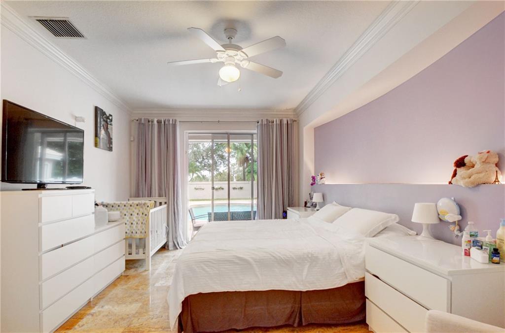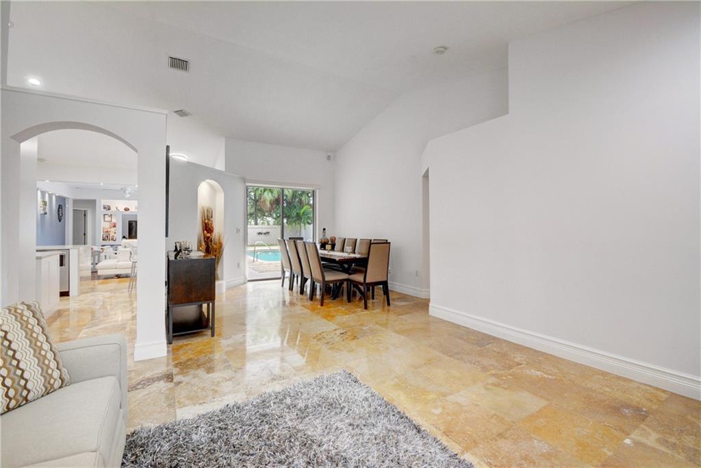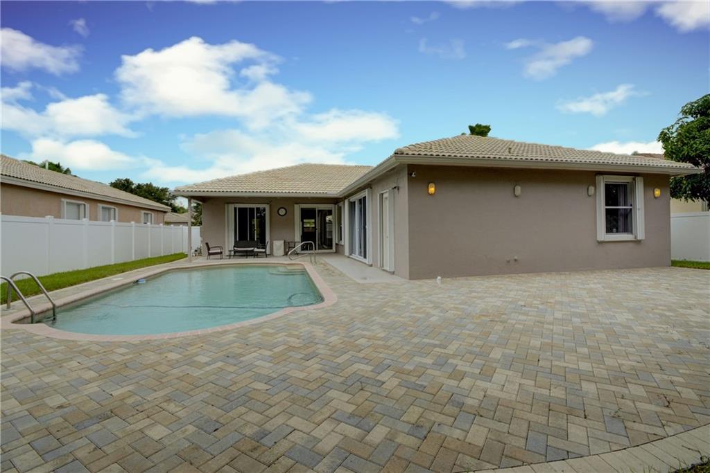 You will fall in love with this Bright and Airy home the moment you park your car in the paved driveway. Meticulously well-maintained property with amazing upgrades and top of the line appliances, gas stove. One story three-way split 4 bedrooms and 3 bathrooms with oversize paved patio and pool located in the desirable resort style guard gated community of Pembroke Falls. Marble flooring throughout, all bathrooms and kitchen tastefully updated and upgraded.