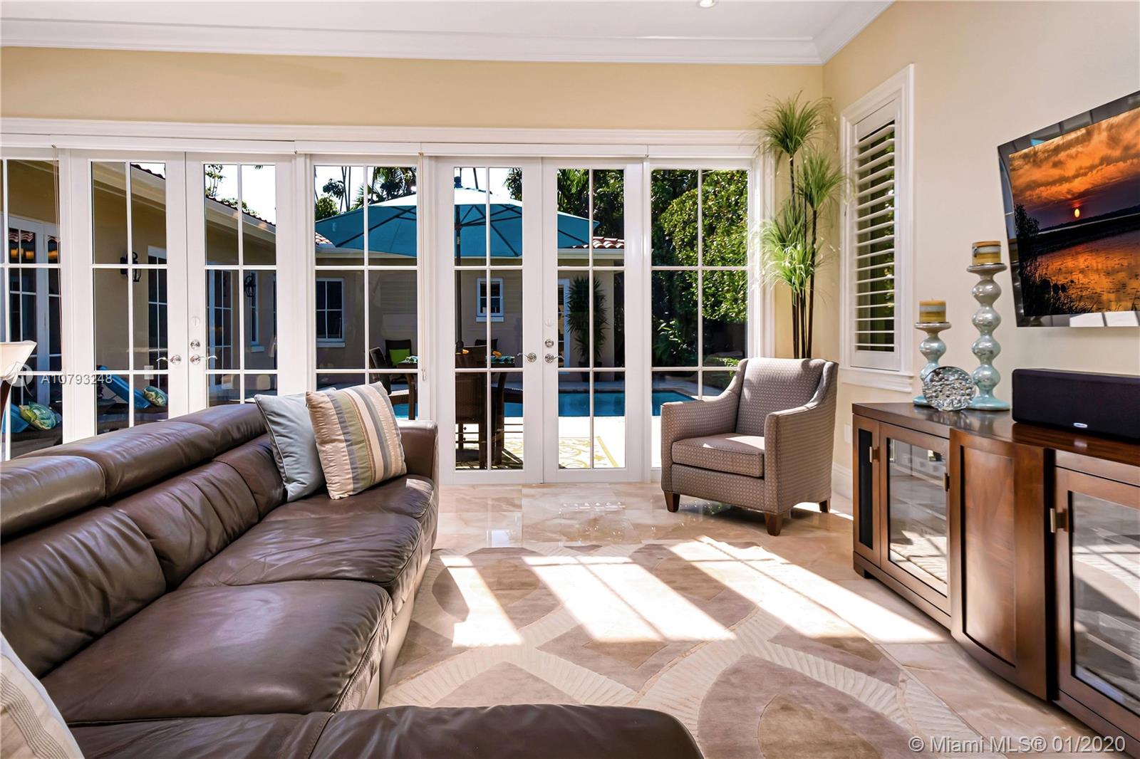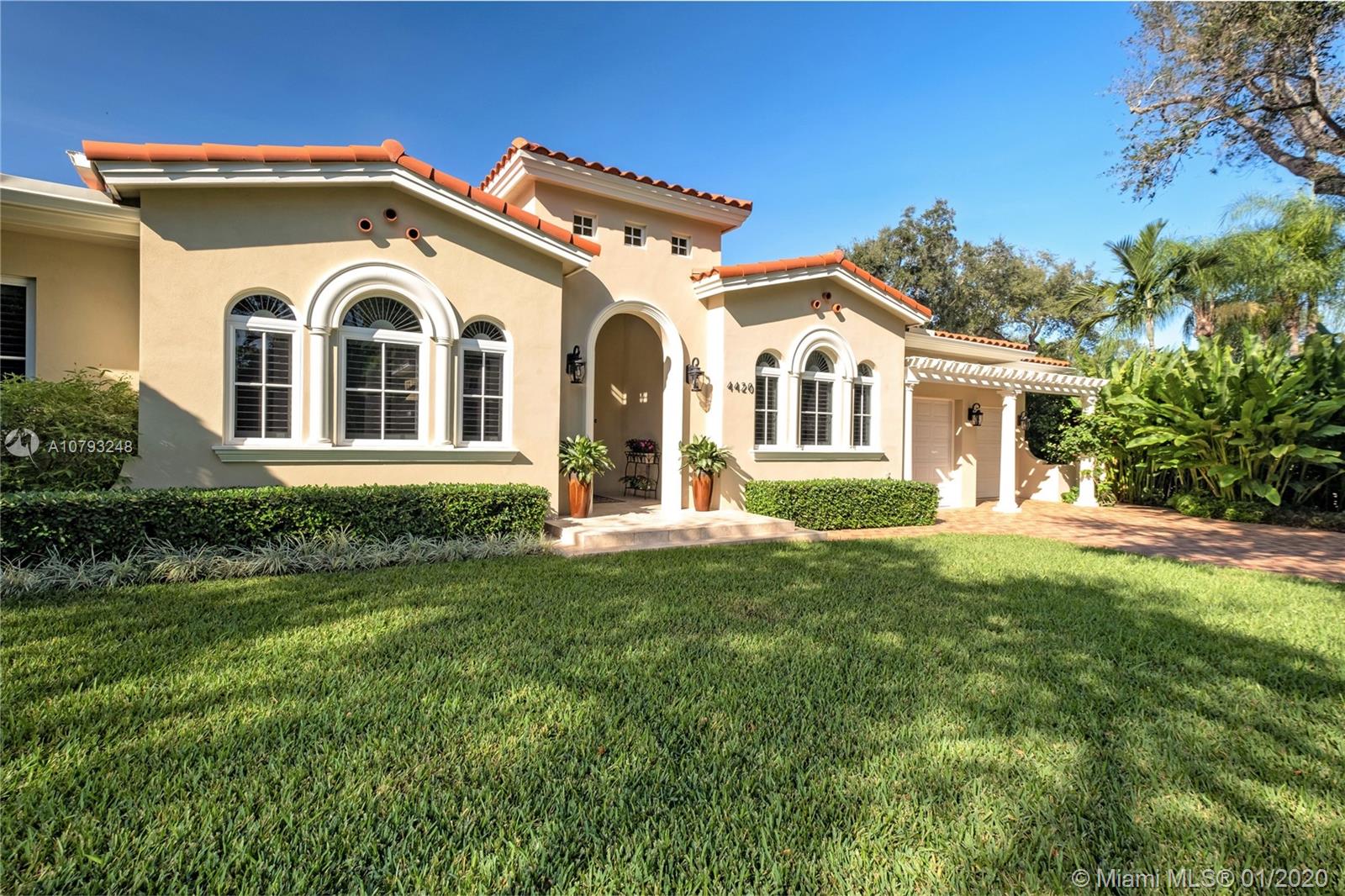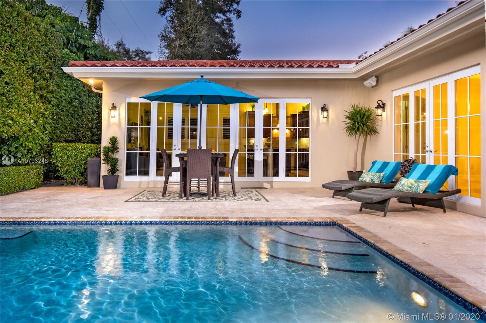 Executive living meets tropical haven! Move-in ready, single-story residence on coveted Coral Gables street features 4bd, 4ba, 3,505 total SF, newer construction (2010) & luxurious yet functional smart living spaces. Spacious interior design, soaring ceilings & 24x24 polished travertine floors create a bright floorplan that flows from one room to the next, all opening up to the tranquil courtyard pool. Mature landscaping provides complete privacy. Gas chef's kitchen offers high-end appliances & plenty of storage, perfect for those that love to cook/entertain. The sumptuous master suite boasts his/her walk-in closets & spa-like bath that presents a serene place to retire from your busy day. Full impact windows & doors! Minutes from Shops at Merrick Park, Biltmore, UM & Riviera Country Club.