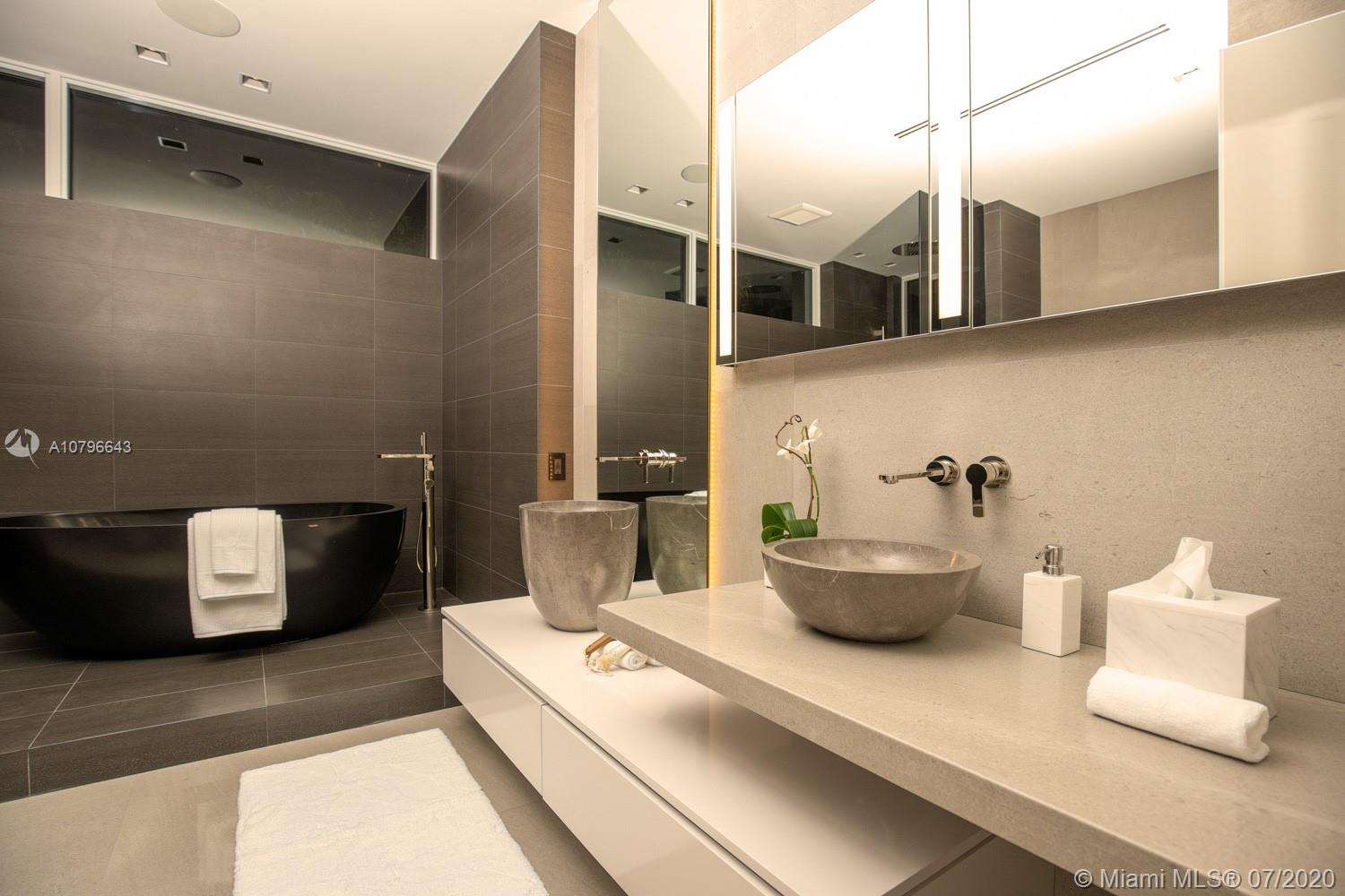 Bay Point Masterpiece: A one-of-a-kind exceptional home, beautifully crafted with exquisite finishes, this Bay Point estate is a modern work of art. The estate features a gorgeous design suited for Miami's indoor-outdoor living, including 7,341 SF of living space, 7 bd, 8.5 ba, 3 car garage + 2 carport spaces with circular driveway, modern kitchen, and stunning custom bar with wine cellar. Fire up the best Gaggenau appliances in the kitchen, and quickly tidy up using innovative hideaway cabinet features by Valcucine. Whether you're enjoying the 74ft infinity lap pool or entertainment areas, you'll spend just as much time outdoors as you do indoors. Located in the most desirable private neighborhood in Miami just mins away from Miami Beach, Downtown, the Design District, & the Miami Airport