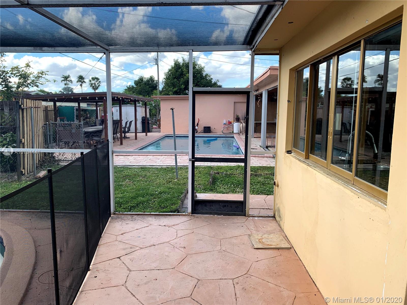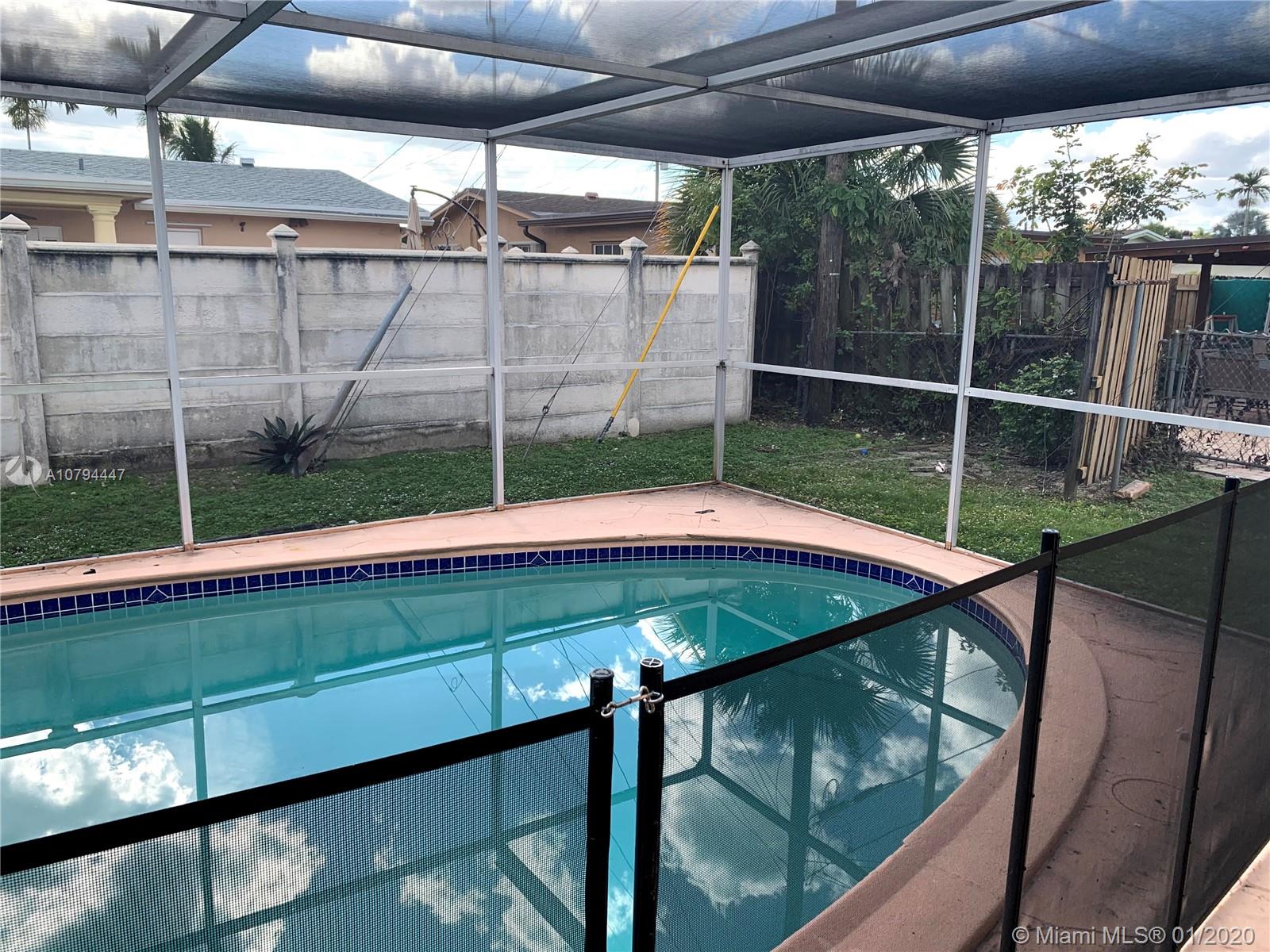 This spacious 1678 sqft 3/2 corner lot home with screened in pool and child proof gate. Features an enormous living room and dining room area great for entertaining. Kitchen overlooking pool area. All bathrooms give access to pool area. Hard flooring throughout home. Newer A/C. 1 car garage that was previously converted into living space can be used as storage and laundry area. Pool area great for entertaining. NO HOA!!!! This home is great for any size family!!!
