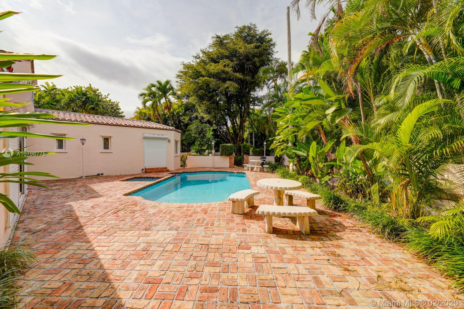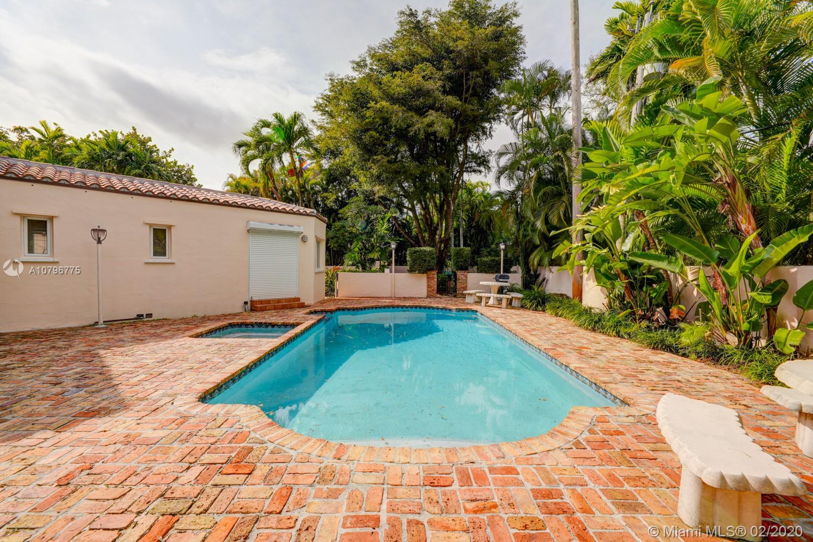 Fall in love with this spectacular Gables 3161 sqft pool home situated on a rarely available prime 24,990k sqft walled-in corner lot located in the gorgeous, desirable and historic Coral Gables. Walking distance to Venetian Pool, Miracle Mile, Biltmore Hotel, Granada Golf Course, fine dining, and Downtown Gables. Gated Spanish-Mediterranean design 4/3 baths with a great floor plan, car port, new roof, pool, jacuzzi and lush landscaping throughout. This house is built for upscale family style living and entertaining. Truly a one of a kind and charming home. A timeless classic!
