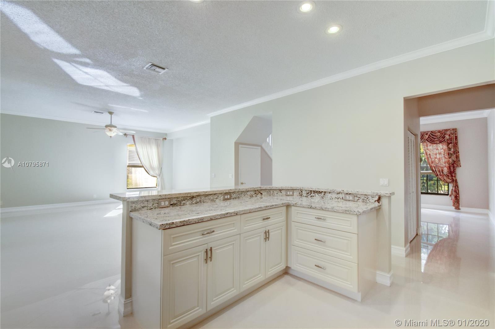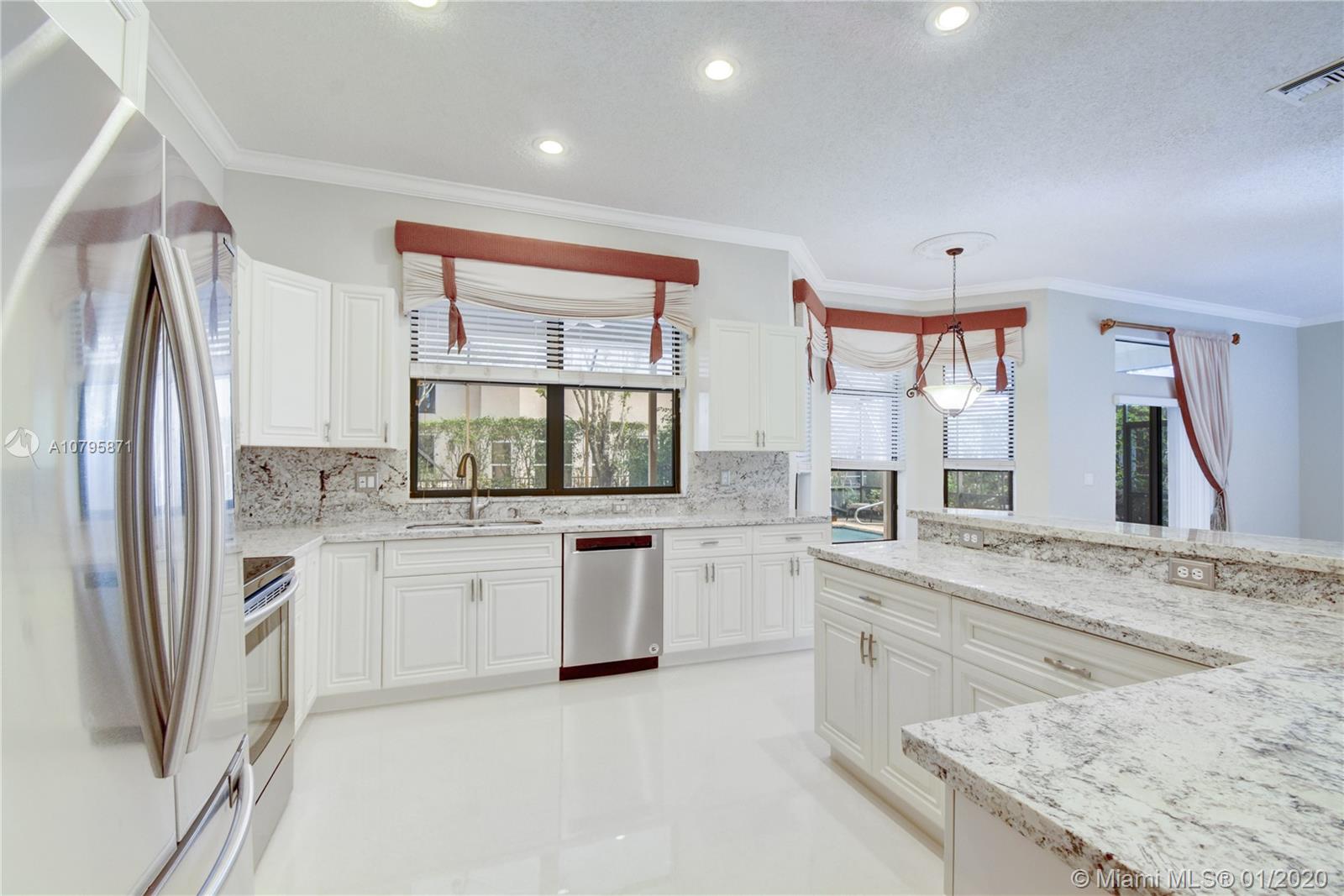 Newly renovated 5/3.5 in Boca Raton. Brand new, never-used kitchen with granite countertops and stainless steel appliances. Brand new extra-large, diagonally laid, porcelain tiling throughout first floor including kitchen, family room, dining room, and living room. Very large master bedroom upstairs with large master bath and roman tub. Large guest suite with private bath and entry/exit to patio on first floor. Very large screened in patio with private swimming pool. Close to all shopping as well as I95, FL-Tpk, and Sawgrass. Fantastic schools, quiet gated community with large public pool area, and newly renovated home, ready to greet new owners.