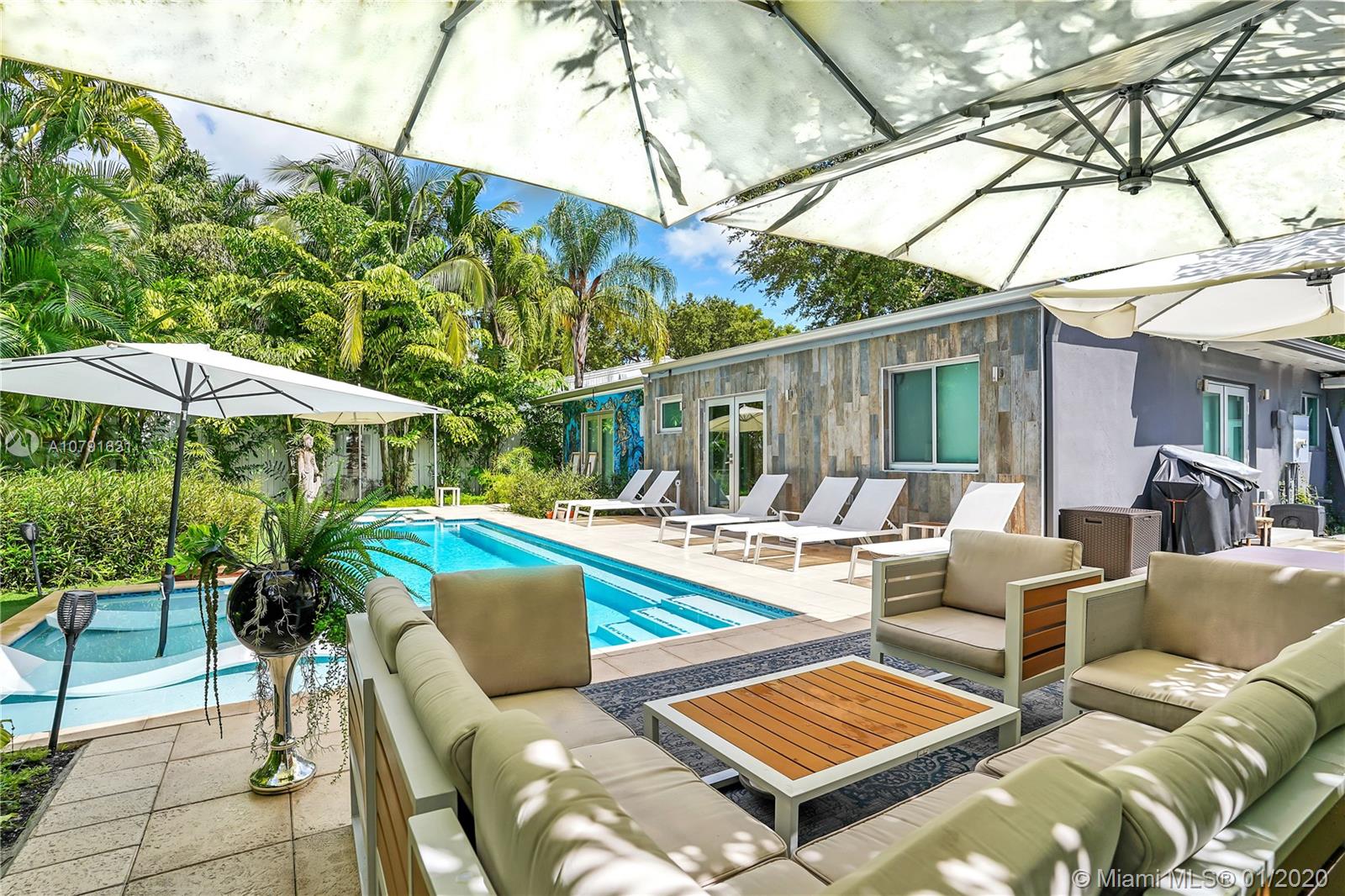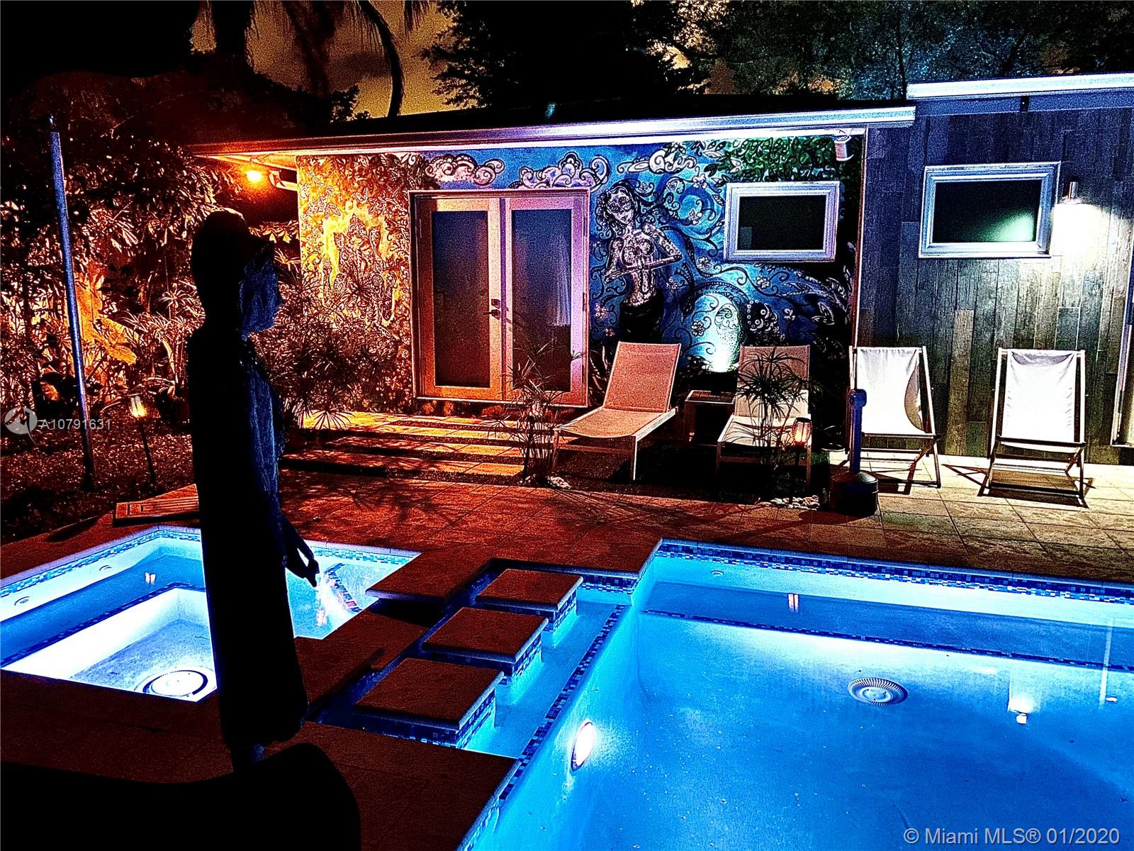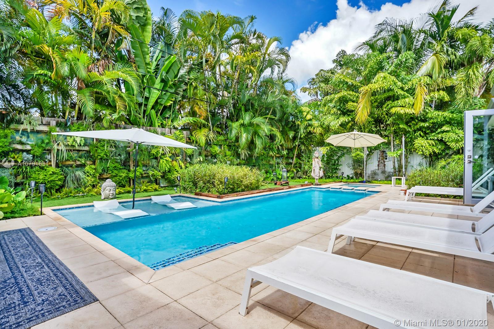Experience artsy entertainment & zen style relaxation in this one of a kind fully remodeled 3/3 private pool home in heavily sought after gated Morningside. No expenses have been spared converting this orig. 2/2 to a magical dream house within its own paradise-like and luxurious pool/spa retreat. 2 of 3 bedrooms with private en Suite bathrooms, steam shower/aromatherapy system, garage with 240V EV charger, hardwood floors, pool/spa w. heater/chiller, 75+ smart access points, front & back yard muralist artwork by Wynwoods reknown artists, etc. In- and outdoor entertainment has been elevated to a new standard, satisfying the most demanding buyers, with ample on property parking showcasing hip provencial flair within urban centricity. Offered by Agent Owner. See amazing VR360 Video via QR pic