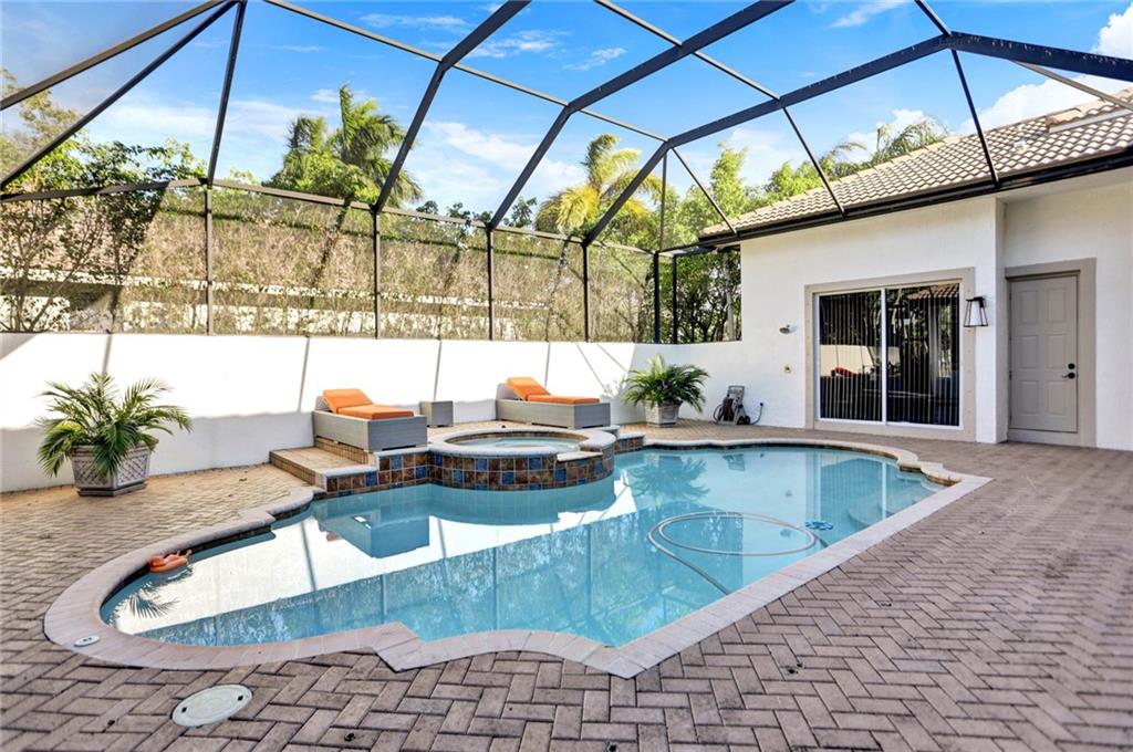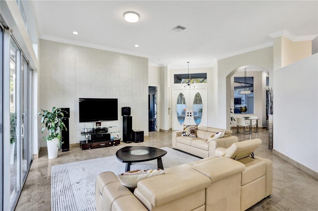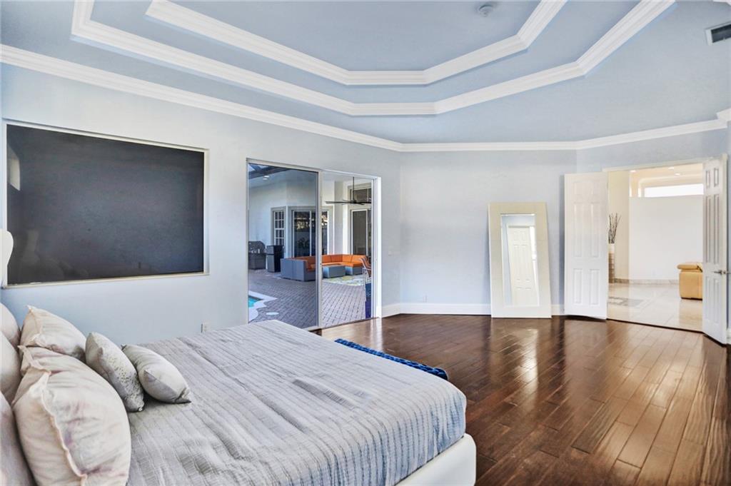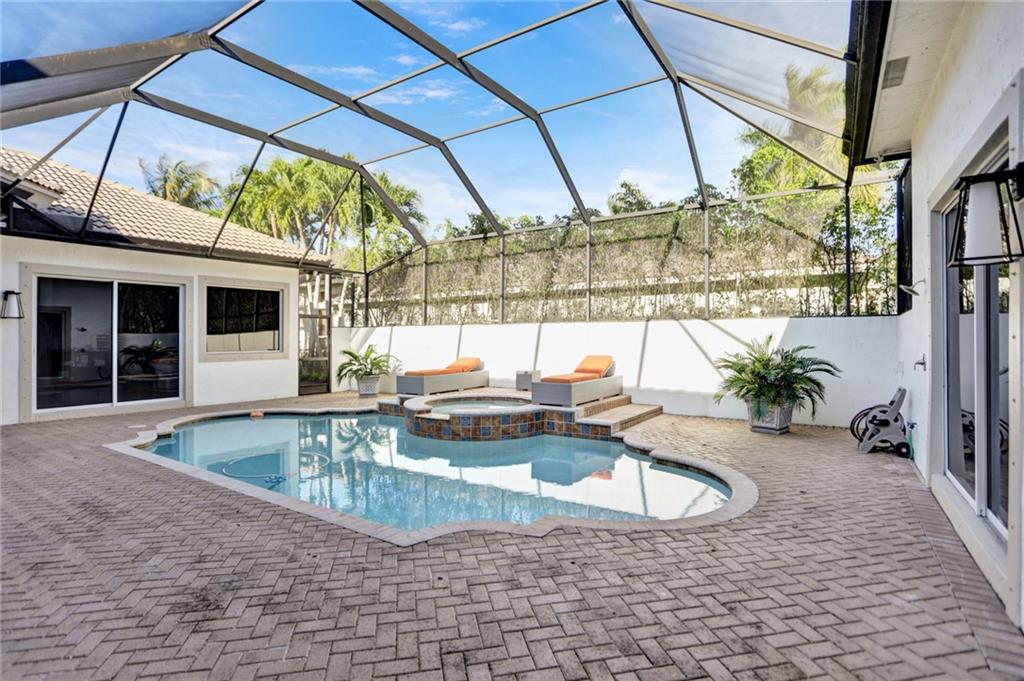 COURTYARD! Custom and extended THE MALIBU model. Modern updates galore in this unique water-front home in Heron Bay! Smart home features throughout! Enter into a screened heated pool/spa and a separate oversized 1bd/1bth guest house. Main house features smooth walls, fresh paint (exterior and interior), crown moldings, marble and wood floors, tray ceilings, 3-car garage, huge circular driveway & more! Split floor plan with a master suite with wood floors, huge built-in closets and luxurious master bathroom with soaking tub and dual shower heads. Other side: office, 2 large bedrooms have wood floors, built-in closets and plantation shutters. Granite kitchen with stainless steel appliances with center island. Large fenced backyard with wide water views and pristine lush landscaping!