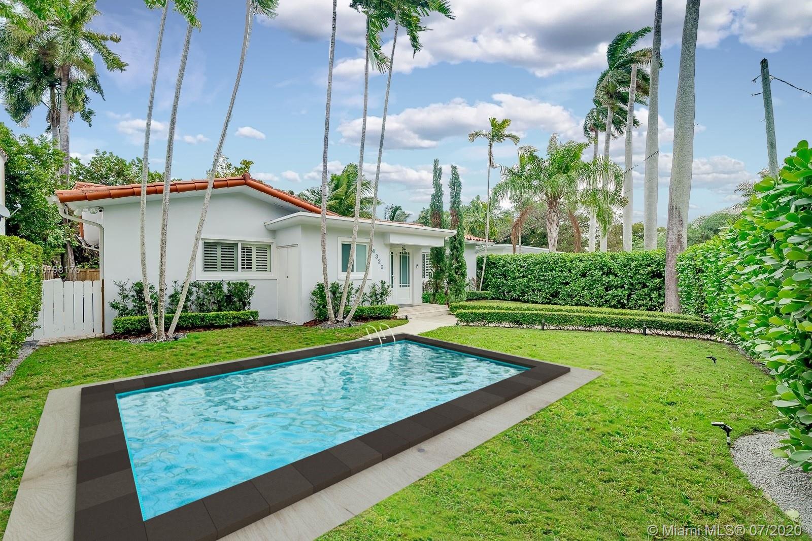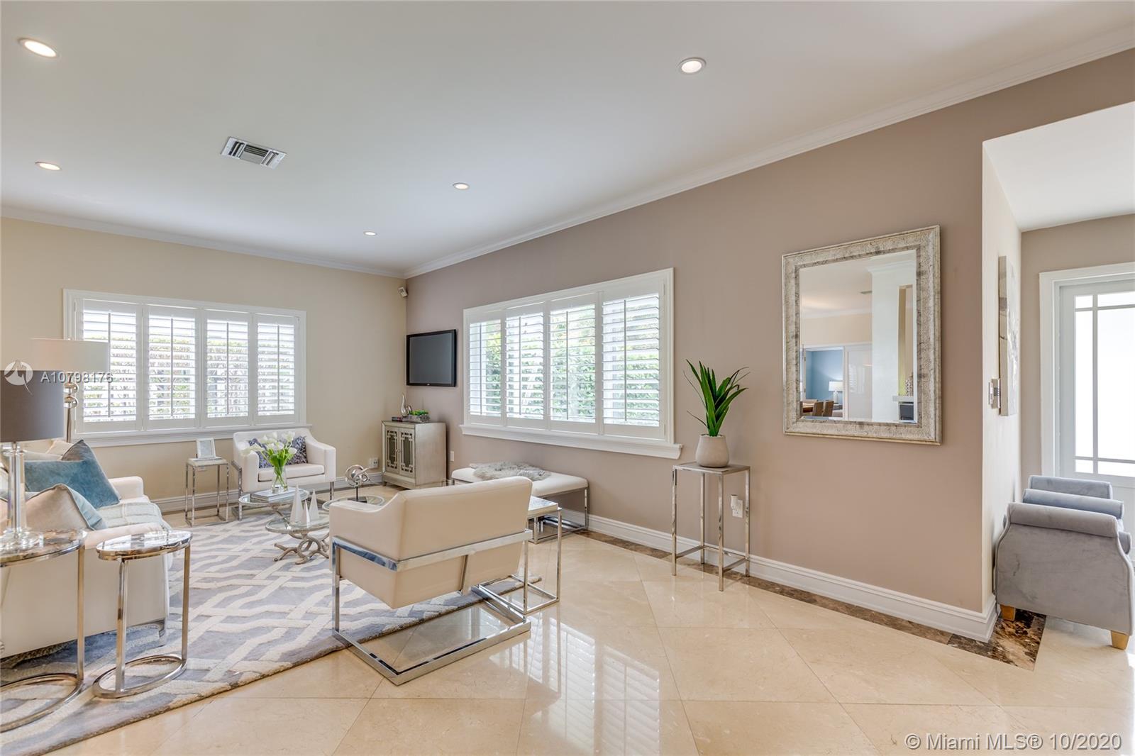 Room for a pool in front (see rendering). Beautiful updated home with the finest details and finishes. Steam shower as well as jacuzzi tub in the master as well as two walk in closets. Designer kitchen that wows all your guests and is wonderful for entertaining. The house has a very nice flow and a separate bonus room. Easy to maintain back patio that does fit a jacuzzi. Plenty of parking in the gated front yard. Front yard has room for a pool. Prime location on North Bay Road, close to houses of worship, shopping, restaurants and the beach. A Beautiful Miami Home.