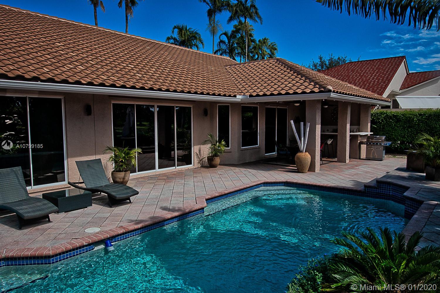 Spectacular Bright and Airy One Story Home in the prestigious golf community of Grand Palms.This Gorgeous home has 4 Bedrooms,2Baths with a stunning and relaxing view of the golf course amid lush tropical landscaping,and a paradise patio fitted with an island bar and grill,30x15 pool.Bright family room that is perfect for entertaining.Gourmet kitchenw/granite, stainless steel, wood cabinetry,raised formal dining, Master suite features a double door entry,private sliding door access to pool,his and her closets and a Master bath with dual vanities.Surround sound system through the house and patio.Circular driveway,double car garage-recently installed NEW strengthened Broward/Miami-Dade-code garage doors- NEW ROOF ! Perfectly located close to dining,shopping,great schools and ez access to I75