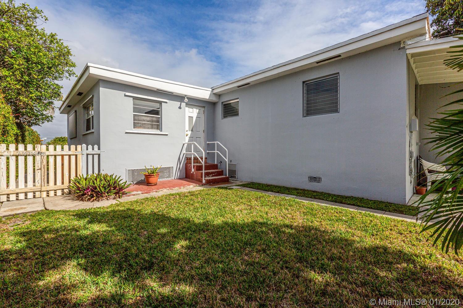 Fantastic home in Hot Hialeah! Spacious 4 bedroom/2 bath home...Beautiful foyer entry leads into living and dining area with gleaming wood floors. Private dining room can also be set up as a family room. 3 bedrooms and 2 baths are on 1 side of home with updated jack and jill bathroom. 2nd bathroom is in good condition - a retro 1950's style. Bedroom #4 is off living dining area...this room can serve as a guest room or den/office as well. Kitchen has a great working space and in very good condition. Most of the window are updated. New roof from about 15 months ago, new AC from 2018, updated electrical. Great circular driveway with great curb appeal on this home. Back yard extends 134 feet with private laundry room, tool shed too! This home is a winner!