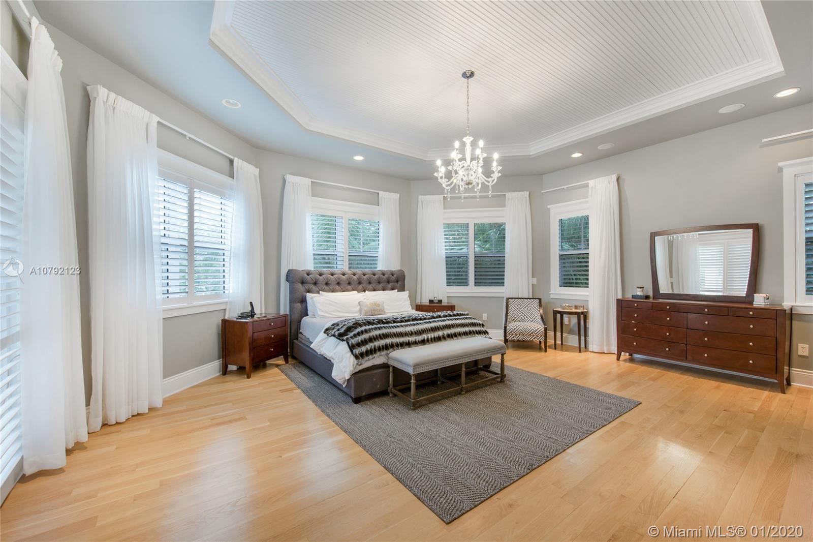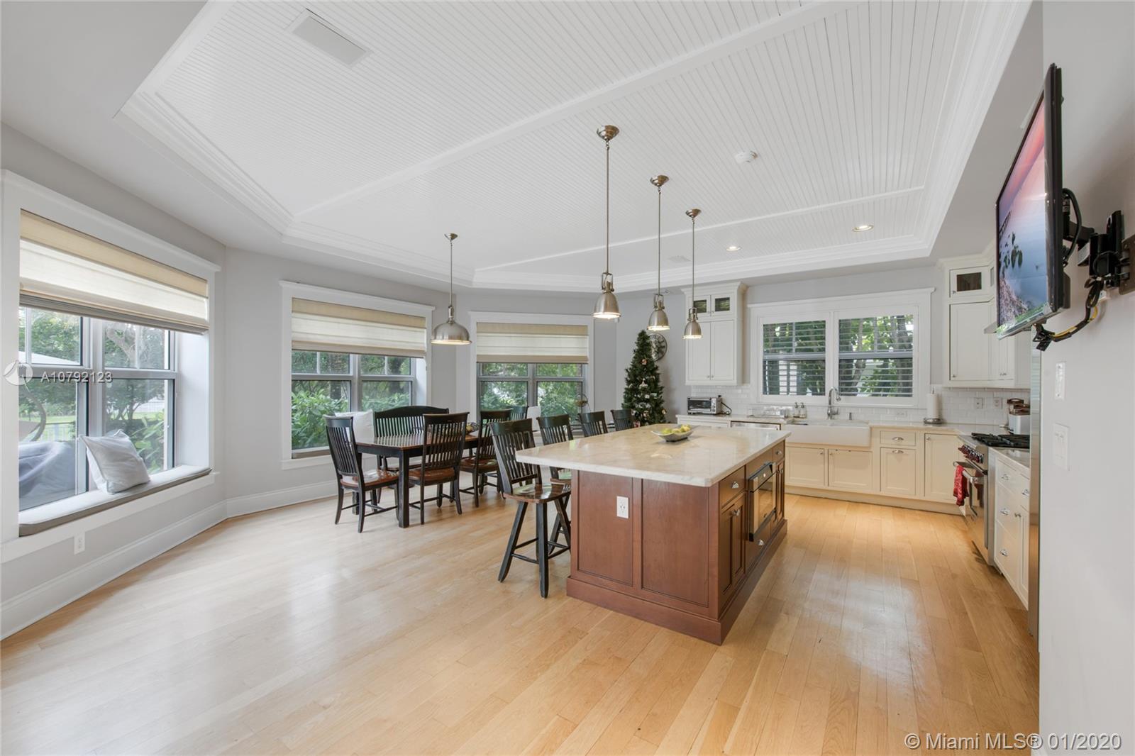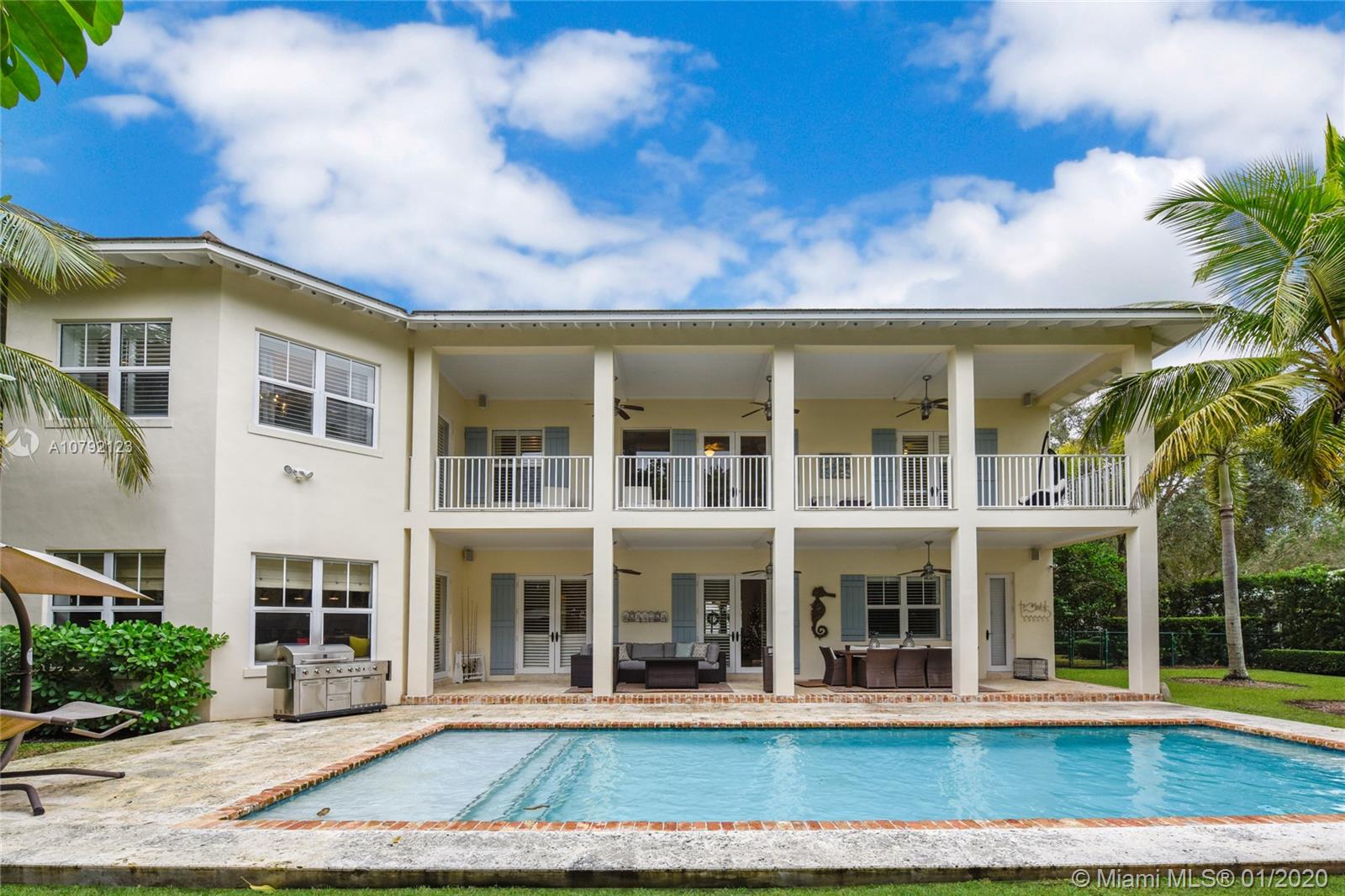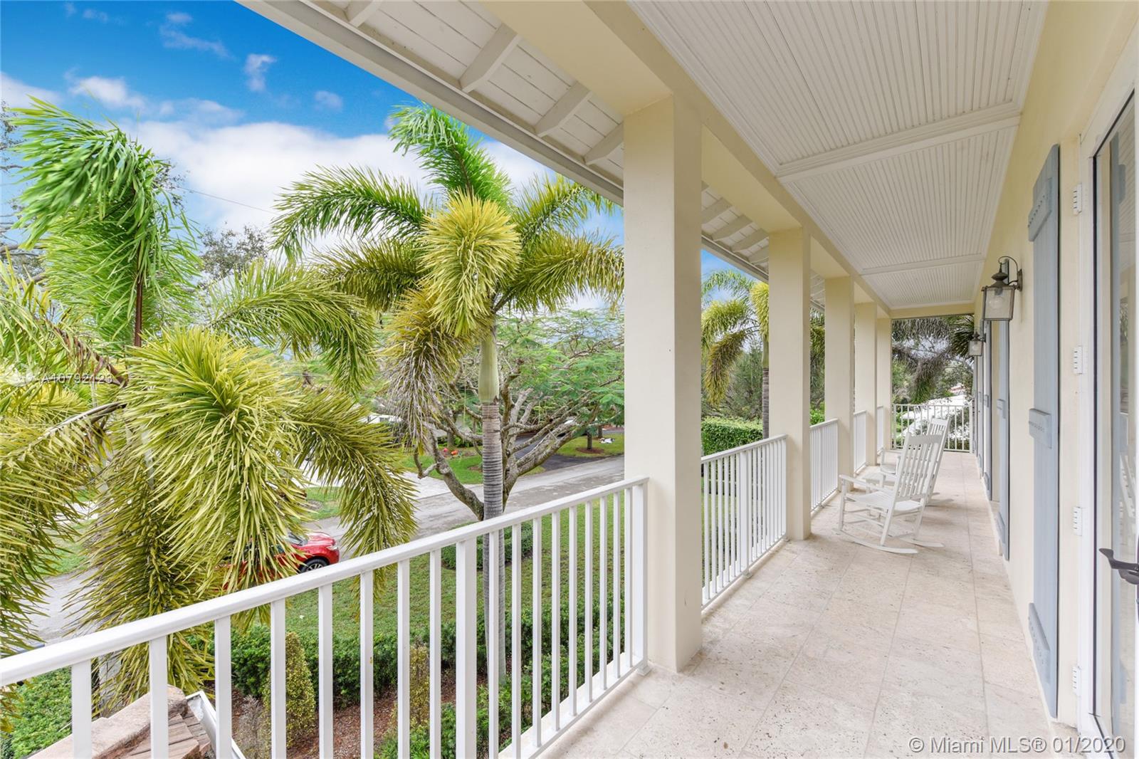 Key West style home (built 2007) impeccably maintained in prestigious Village of Pinecrest! 5 Bedrooms (hard wood floors) full of natural light. Exterior porches all around, protected by impact doors/windows. 5-1/2 Baths (limestone floors) including Cabana Bath. Heated pool with salt-water pump. Large Open Kitchen with breakfast nook, Granite Counter-tops, Wolf brand Gas-Stove & Oven, Stainless Steel Appliances, and enormous walk-in Pantry. Family Room downstairs + Family Room upstairs with wet bar kitchenette. Formal Dining Room and formal Living Room with gas-burning fireplace. Built-in Outdoor/Indoor speaker system. 8 zone security camera system. Plantation blinds. Large capacity Generator with auto on/off switch. 2-car garage with cabinetry. 2 docks with davits leading to ski-lake.