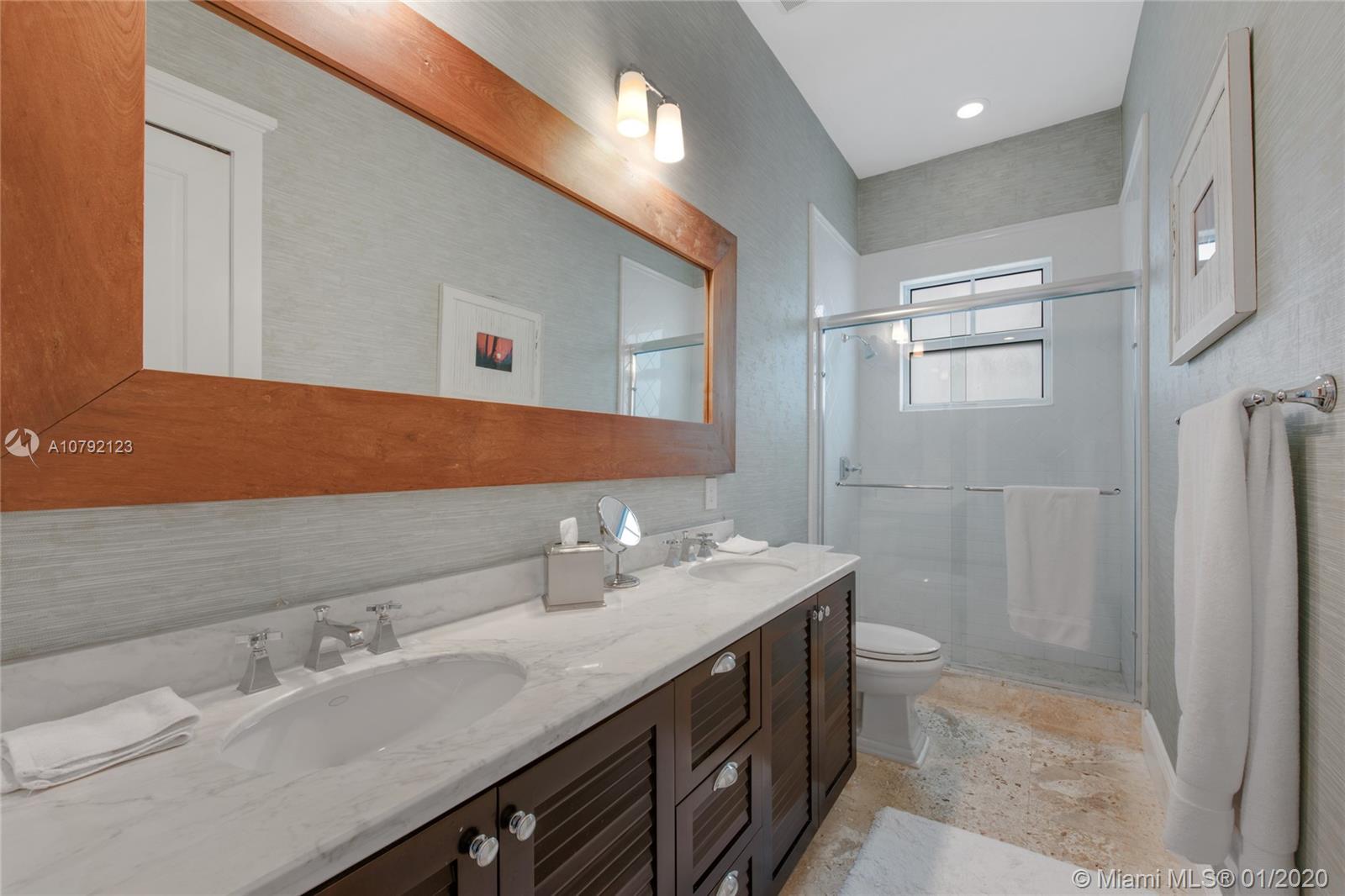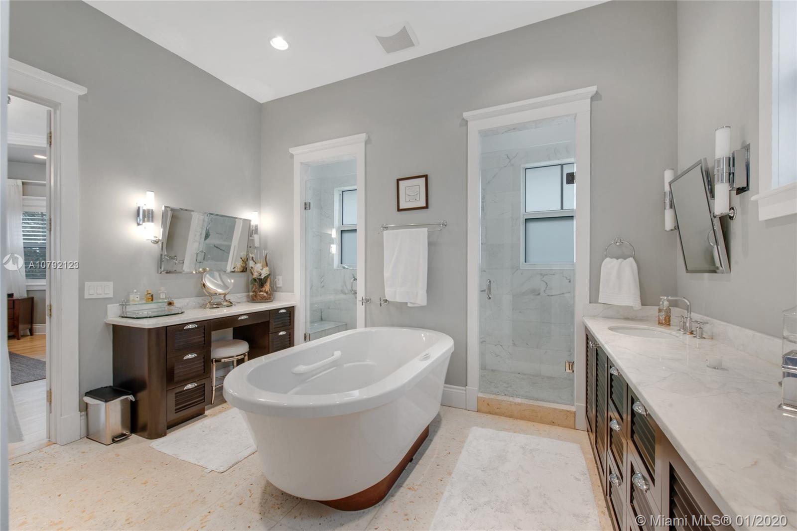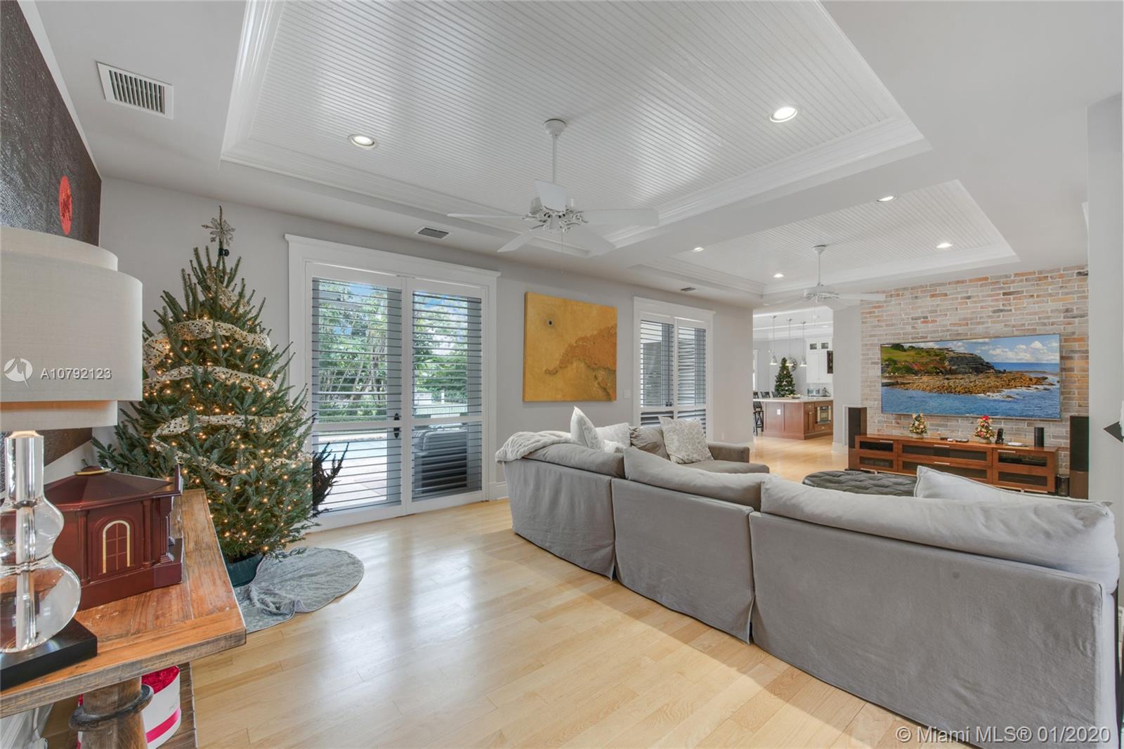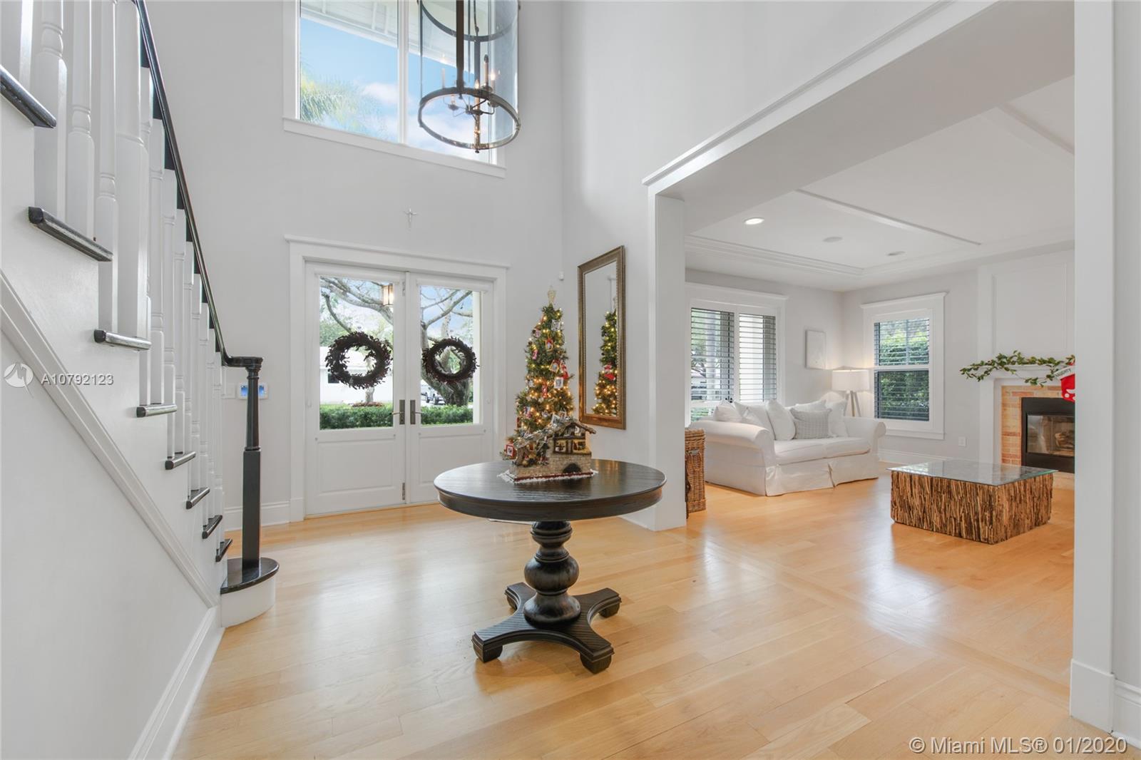 Key West style home (built 2007) impeccably maintained in prestigious Village of Pinecrest! 5 Bedrooms (hard wood floors) full of natural light. Exterior porches all around, protected by impact doors/windows. 5-1/2 Baths (limestone floors) including Cabana Bath. Heated pool with salt-water pump. Large Open Kitchen with breakfast nook, Granite Counter-tops, Wolf brand Gas-Stove & Oven, Stainless Steel Appliances, and enormous walk-in Pantry. Family Room downstairs + Family Room upstairs with wet bar kitchenette. Formal Dining Room and formal Living Room with gas-burning fireplace. Built-in Outdoor/Indoor speaker system. 8 zone security camera system. Plantation blinds. Large capacity Generator with auto on/off switch. 2-car garage with cabinetry. 2 docks with davits leading to ski-lake.