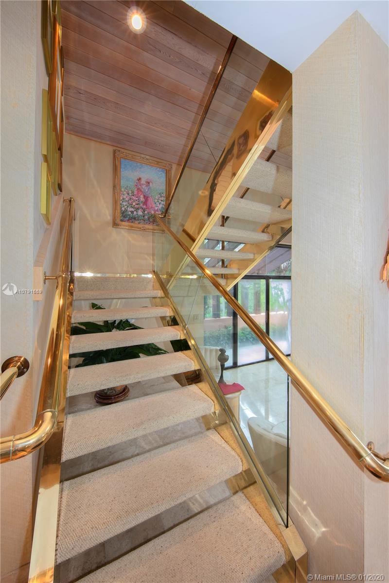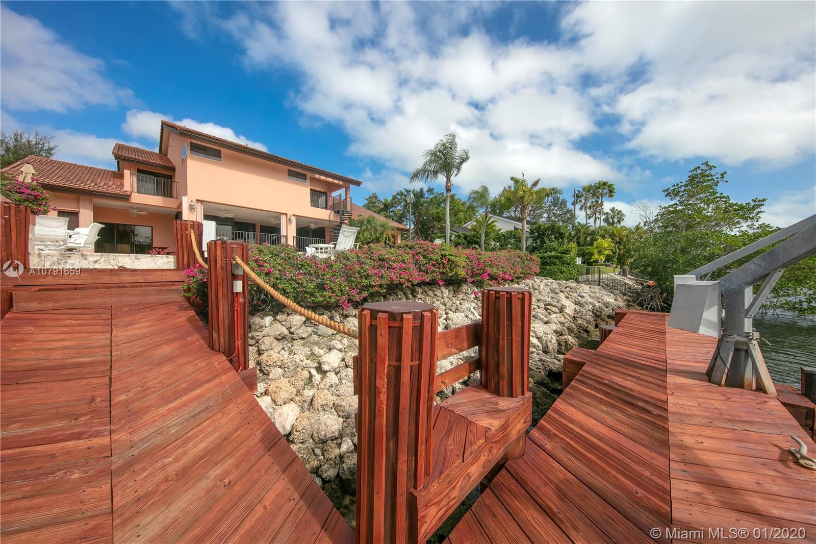 Waterfront 2-story in Islands of Cocoplum. Circular driveway & beautiful landscaping leads to front entrance. Well-appointed home w/high ceilings, open spaces & water views from almost everywhere. Large living rm,dining rm and wet bar. The eat-in kitchen overlooks the pool & waterway. Family rm & cabana bath are adjacent to the kitchen. Across the hallway there is a powder room, laundry, 1 bedrm & bath. Upstairs, the large main suite has a walk-in closet & a spacious bathrm w/2 sinks, shower,& jetted tub/spa. Spiral staircase access to pool. 2 balconies overlooking the waterway. Additional 2 bedrms w/walk-in-closets, 2 baths & office on 2nd floor. Covered terrace and spacious outdoors terrace, 20'x40' pool, 42’ dock w/davits, water & electricity. 2-car garage. Full hurricane protection.