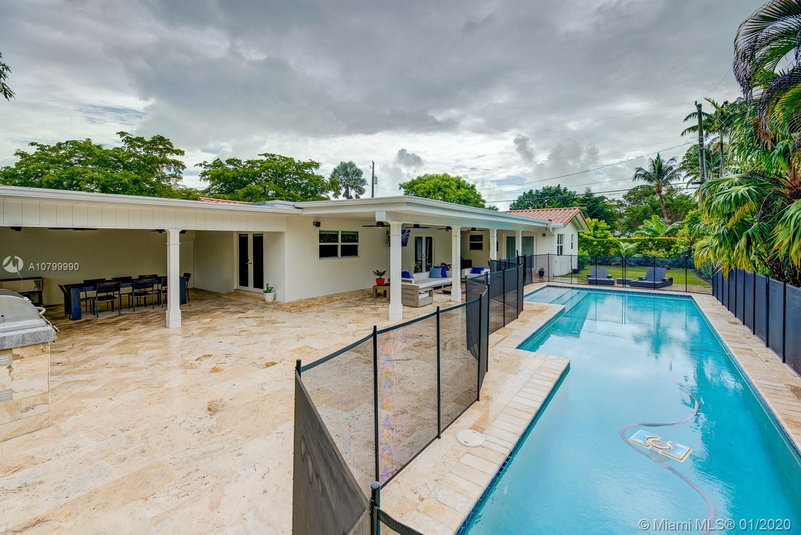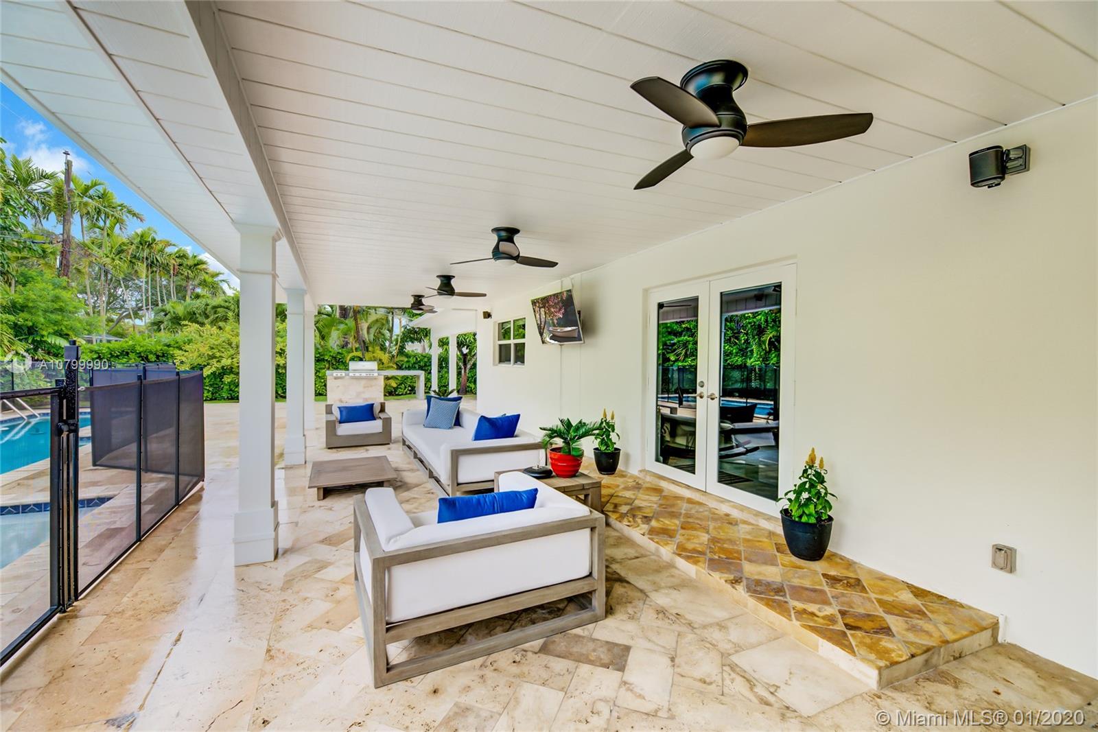 Reduced $100,000 - Seller Motivated!!! Situated on a quiet tree-lined street, this beautiful turnkey residence sits on an oversize 15,800 SF lot in Pinecrest. This 4/3 offers smart home technology, hurricane impact windows and doors, automated shades, and custom finishes throughout. Updated Kitchen with state of the art appliances, gas range, custom cabinetry, Osmosis Water System, and brand new bathrooms. The master ensuite is complete with working office/den and custom closets. Comprising over 3100 sf of interior living space with porcelain and hardwood flooring, living, dining, and family room lead out to an expansive covered terrace. Exterior features: outdoor kitchen, covered terrace with travertine flooring, climate control pool and 2-car garage. Google full address for HD video.