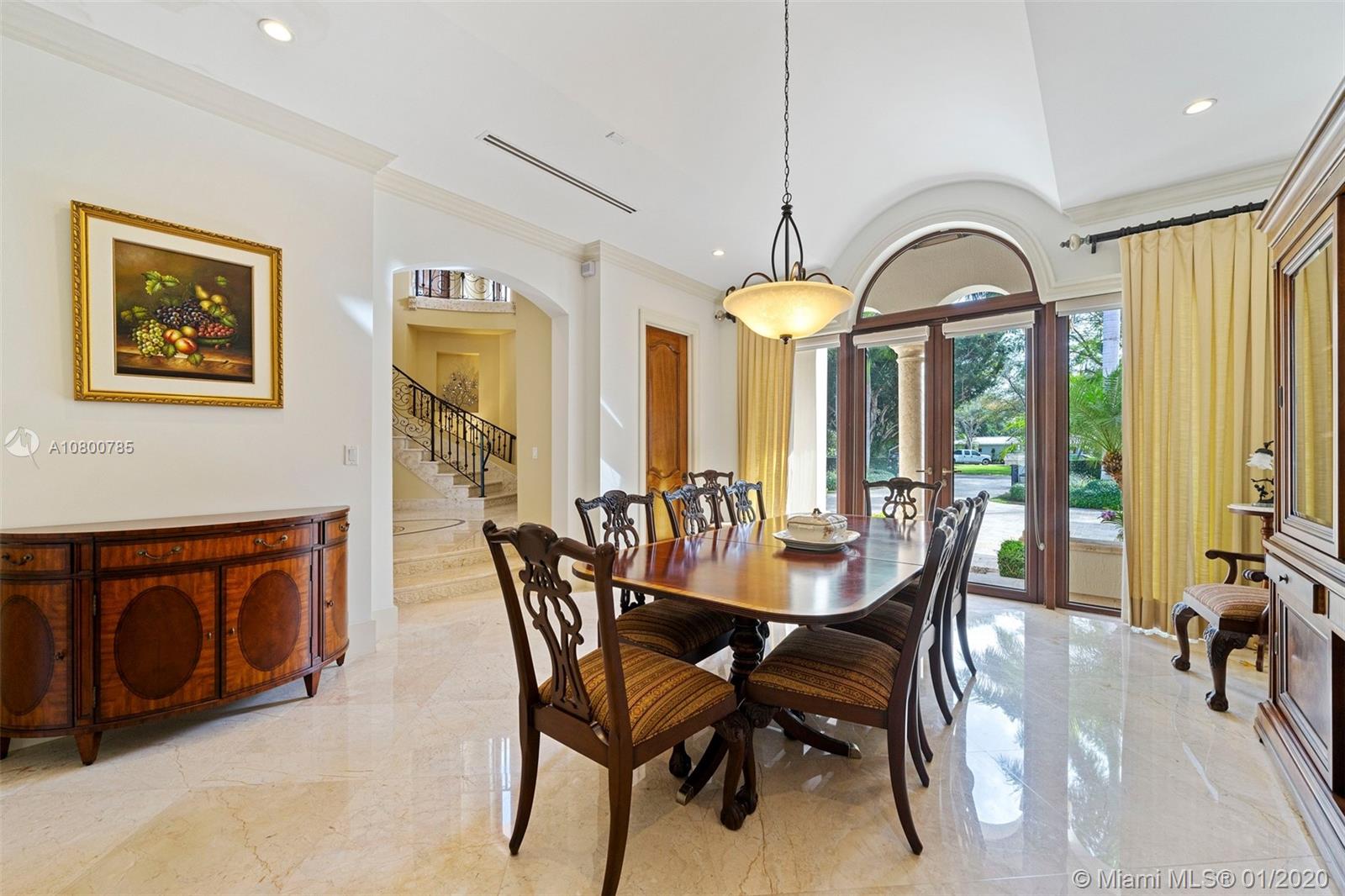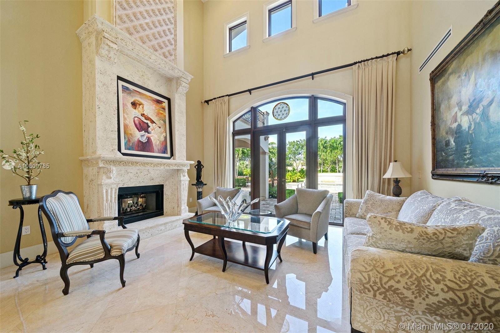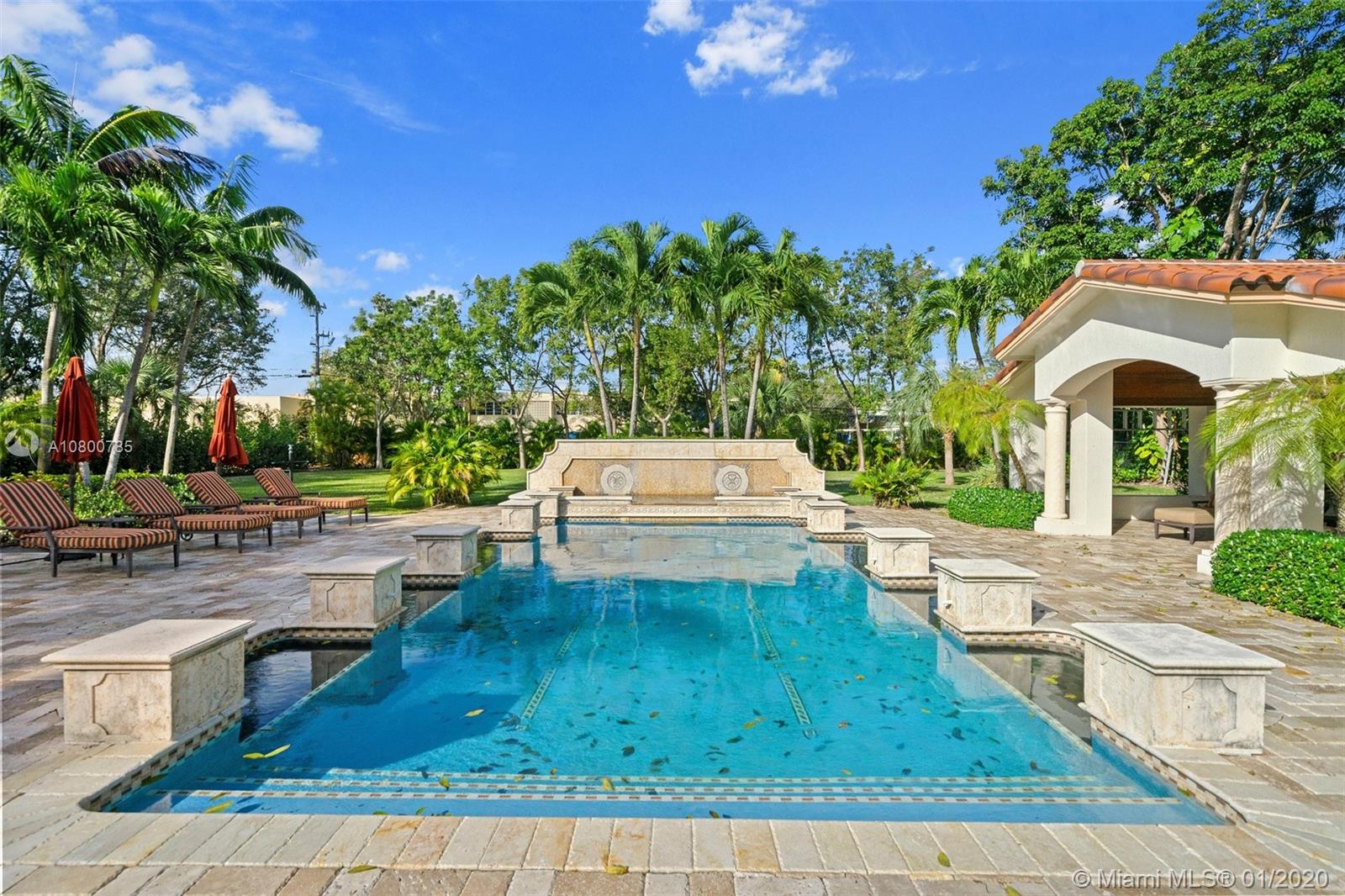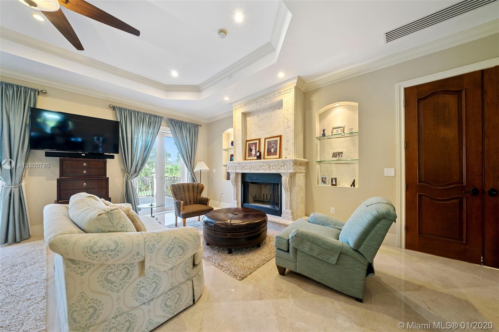 Impeccable 7 bdrm/ 6.5 bath gated residence on deep acre lot in Pinecrest. Grand foyer w/ impressive double entry doors, volume ceilings & marble staircase. Formal living & dining. Spacious family rm w/ keystone fireplace. Gourmet kitchen w/ large island, gas stove, breakfast nook. Downstairs you will find 3 guest bedrooms, the perfect guest quarters. Upstairs you will find the lavish master suite, complete w/ sitting rm w/fireplace, spa-like bath w/ steam shower and balcony, plus 3 additional guest bdrms. Marble flooring. Serene grounds include pool w/ water feature, expansive patios, summer kitchen, sprawling lawn beyond. Stone paver driveway. Room to discreetly park a boat. 2-car garage + 1-car carport, perfect for the car enthusiast.