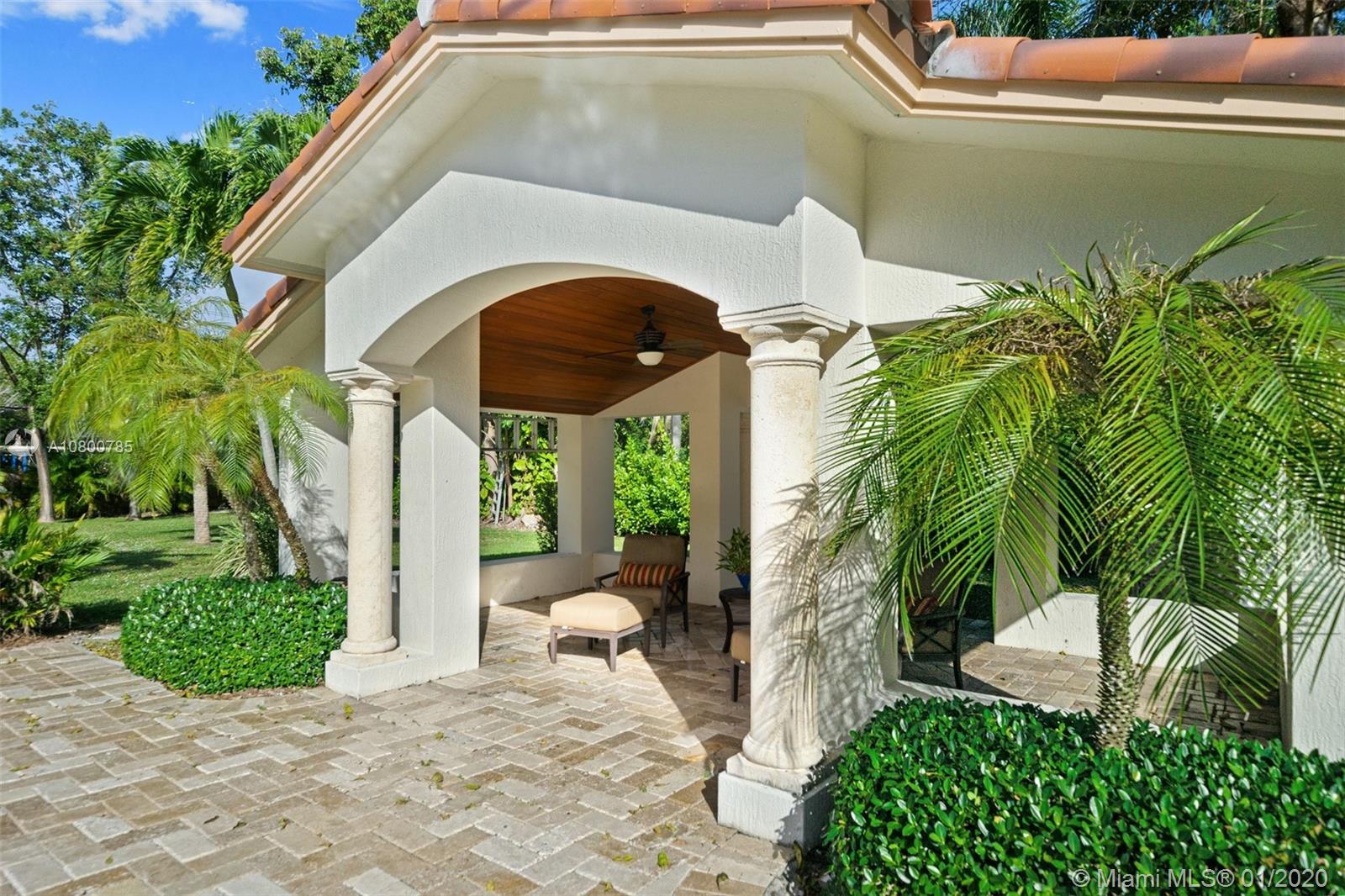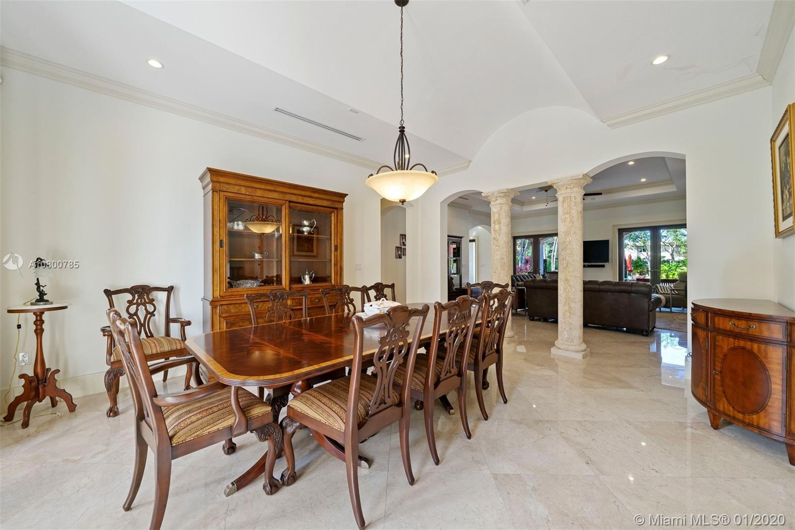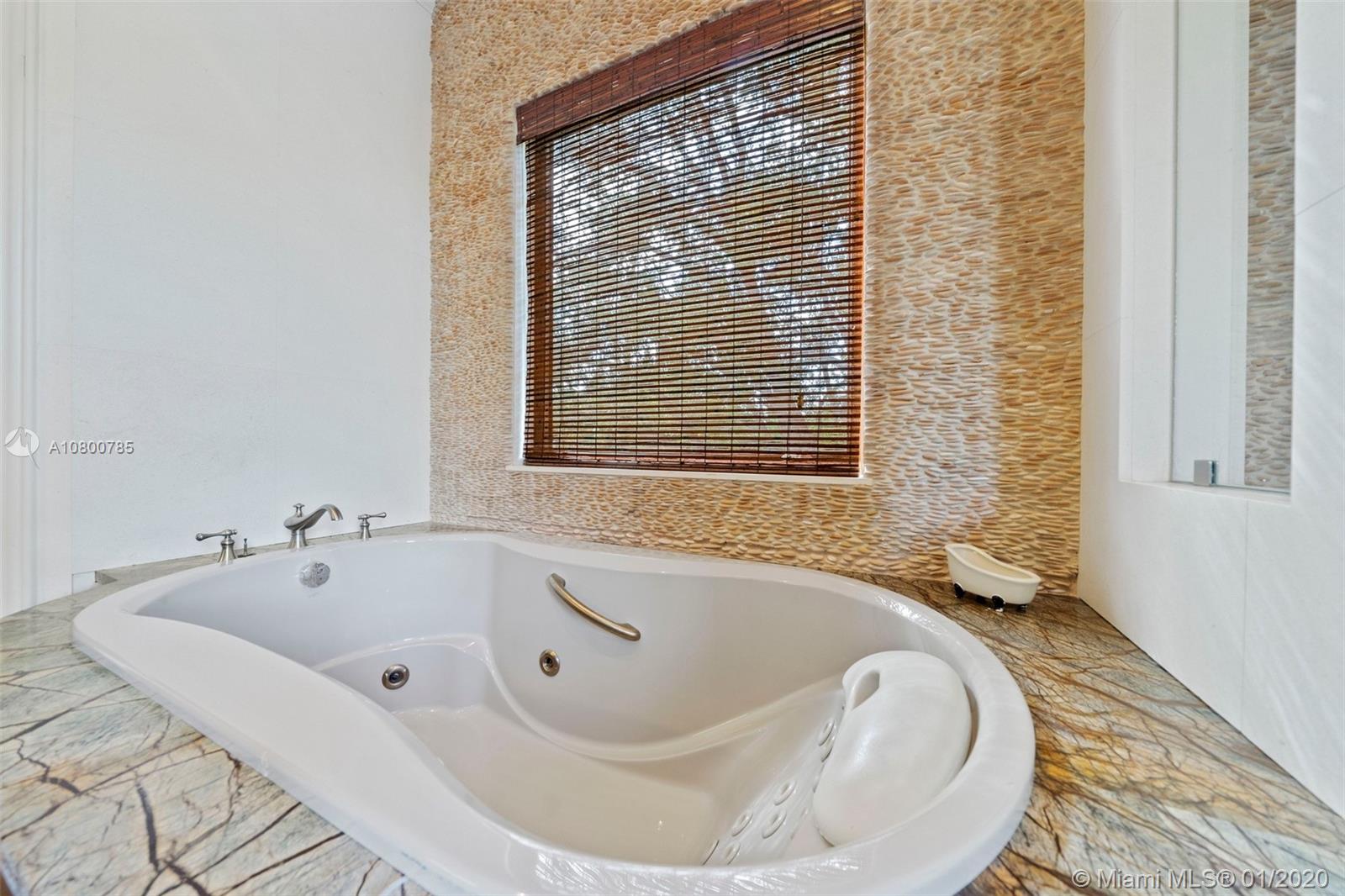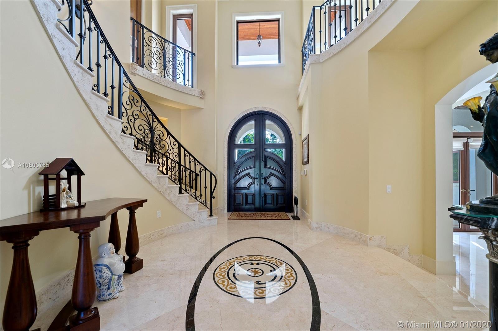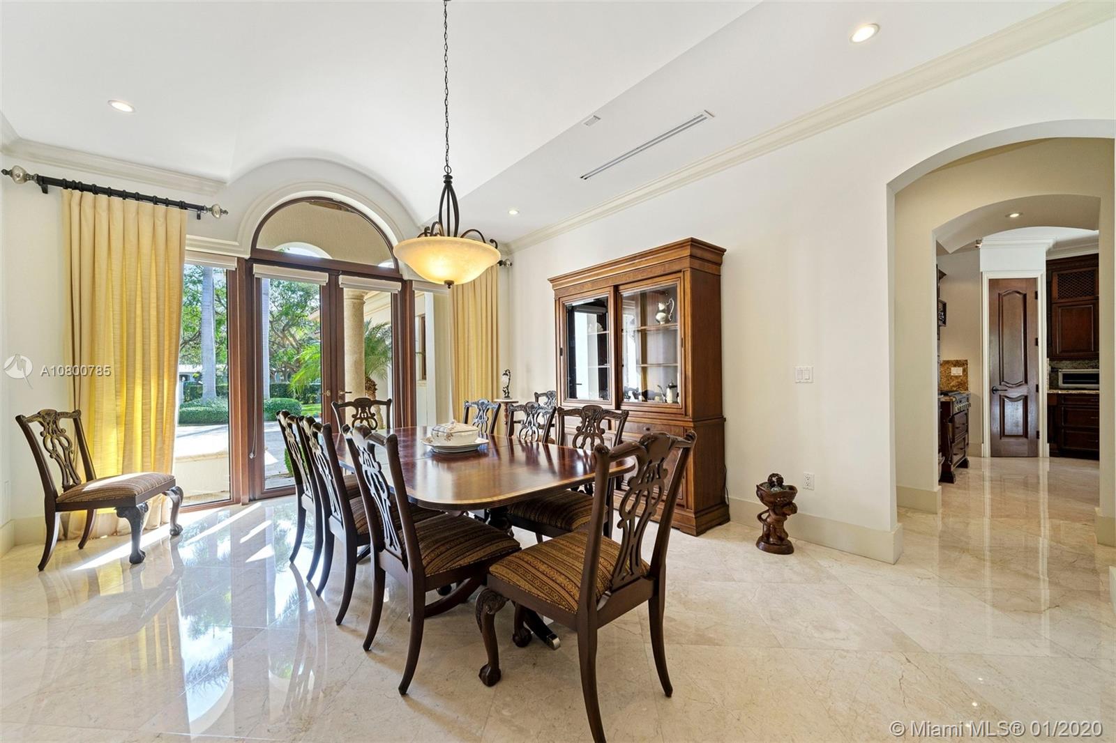 Impeccable 7 bdrm/ 6.5 bath gated residence on deep acre lot in Pinecrest. Grand foyer w/ impressive double entry doors, volume ceilings & marble staircase. Formal living & dining. Spacious family rm w/ keystone fireplace. Gourmet kitchen w/ large island, gas stove, breakfast nook. Downstairs you will find 3 guest bedrooms, the perfect guest quarters. Upstairs you will find the lavish master suite, complete w/ sitting rm w/fireplace, spa-like bath w/ steam shower and balcony, plus 3 additional guest bdrms. Marble flooring. Serene grounds include pool w/ water feature, expansive patios, summer kitchen, sprawling lawn beyond. Stone paver driveway. Room to discreetly park a boat. 2-car garage + 1-car carport, perfect for the car enthusiast.