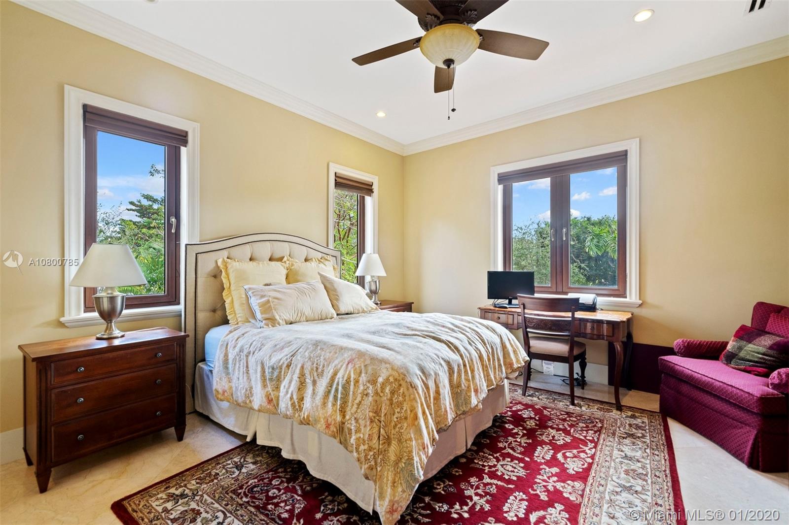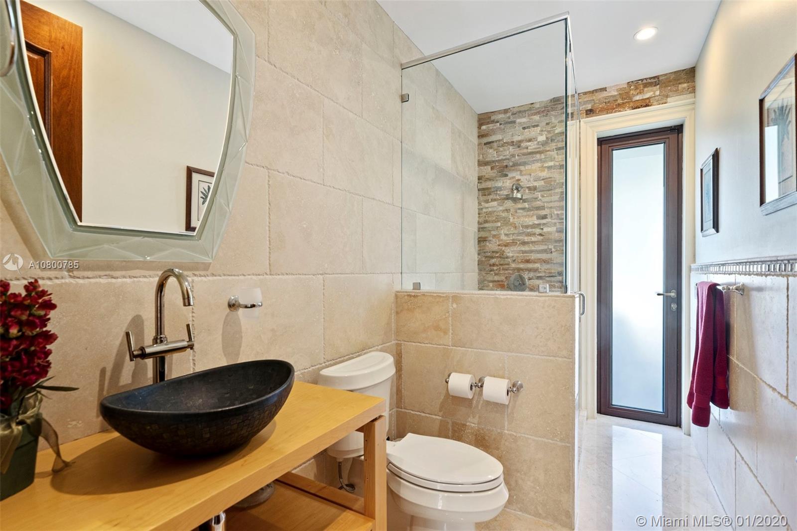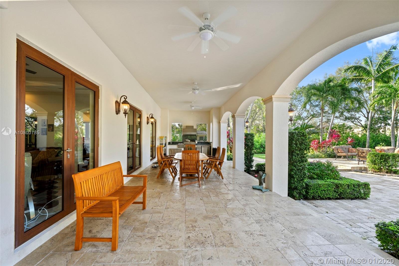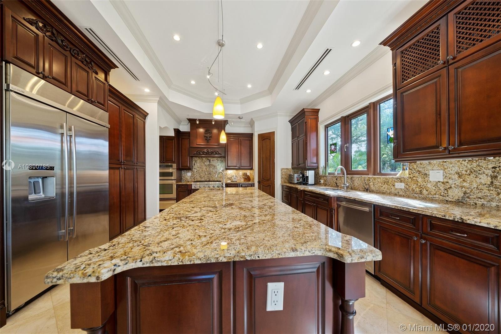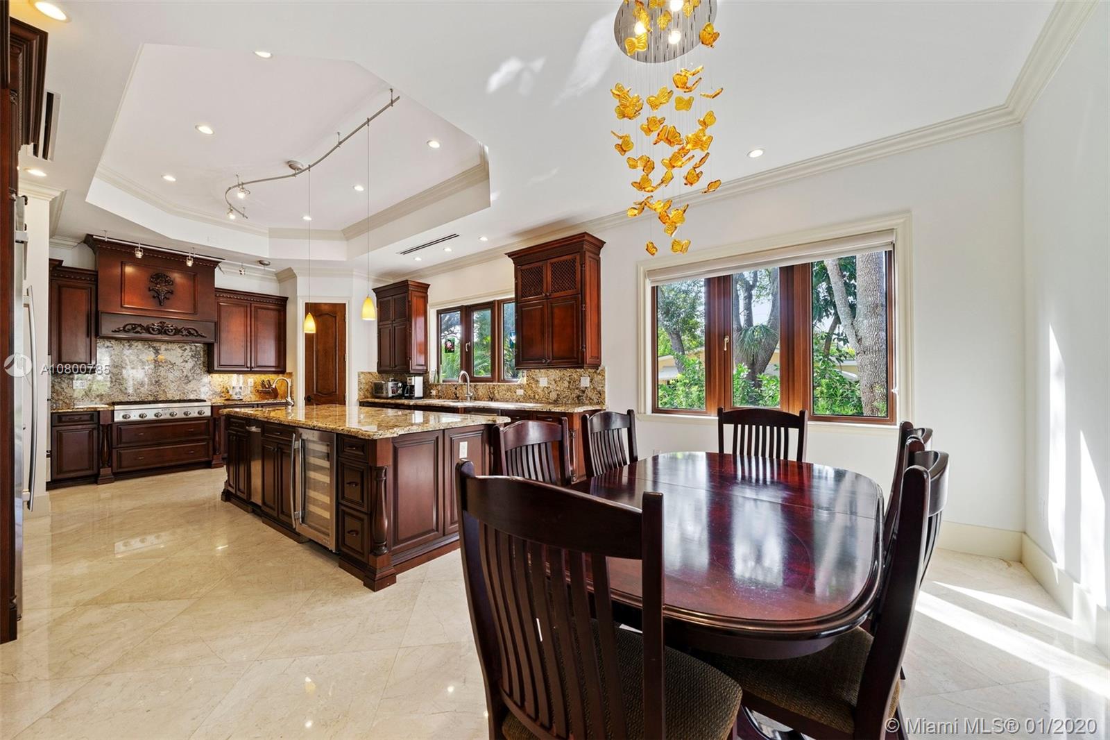 Impeccable 7 bdrm/ 6.5 bath gated residence on deep acre lot in Pinecrest. Grand foyer w/ impressive double entry doors, volume ceilings & marble staircase. Formal living & dining. Spacious family rm w/ keystone fireplace. Gourmet kitchen w/ large island, gas stove, breakfast nook. Downstairs you will find 3 guest bedrooms, the perfect guest quarters. Upstairs you will find the lavish master suite, complete w/ sitting rm w/fireplace, spa-like bath w/ steam shower and balcony, plus 3 additional guest bdrms. Marble flooring. Serene grounds include pool w/ water feature, expansive patios, summer kitchen, sprawling lawn beyond. Stone paver driveway. Room to discreetly park a boat. 2-car garage + 1-car carport, perfect for the car enthusiast.