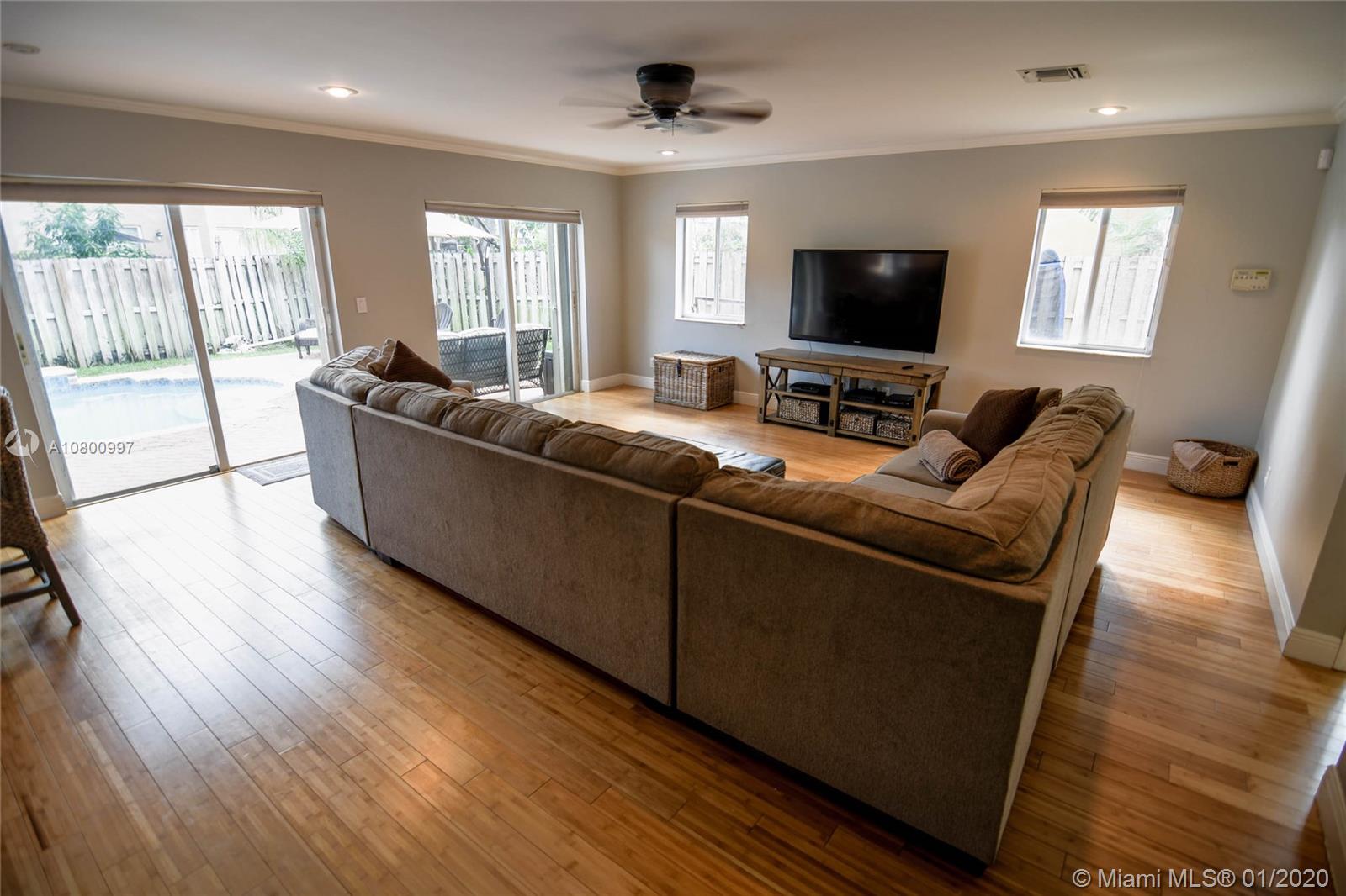 Beautiful 4 bedroom 3 bath pool home in Harmony Lakes on a "low traffic" street. Bamboo flooring throughout the house and new appliances in 2018. Heated Swimming Pool was refinished in 2019 with upgraded lighting in the pool. The schools are arguably some of the very best schools in Broward County. Grocery shopping restaurants are a 1/2 mile from the front entrance. This community has tennis, basketball and racquetball courts along with a community playground area for the kids.