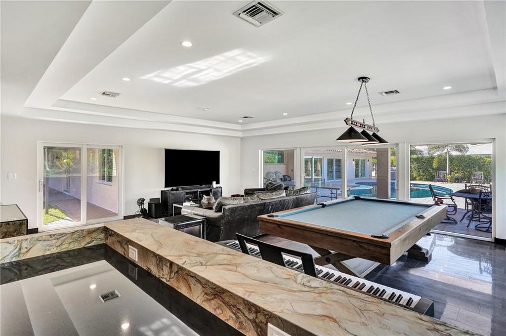 Stunning single-story estate with the best views on the Coral Ridge Country Club golf course. Brand new course renovation has forever changed the views-direct East views to the Clubhouse over 580 yards (.33 mile) away! This home has been completely renovated in 2016 to include raised ceilings in living areas, kitchen, bathrooms, flooring, Impact Windows and Doors, and more. Open living space with plenty of natural light. Gourmet kitchen boasts Statuario Marble countertops and backsplash, Thermador gas range and white shaker cabinetry. Expansive master suite features two walk-in closets and spa like bath with dual vanities, clawfoot bathtub and shower. Huge second family room (800 sq ft) with wetbar, vaulted ceilings and full bath. 21,000 sq ft lot (175' deep). No golf membership required.