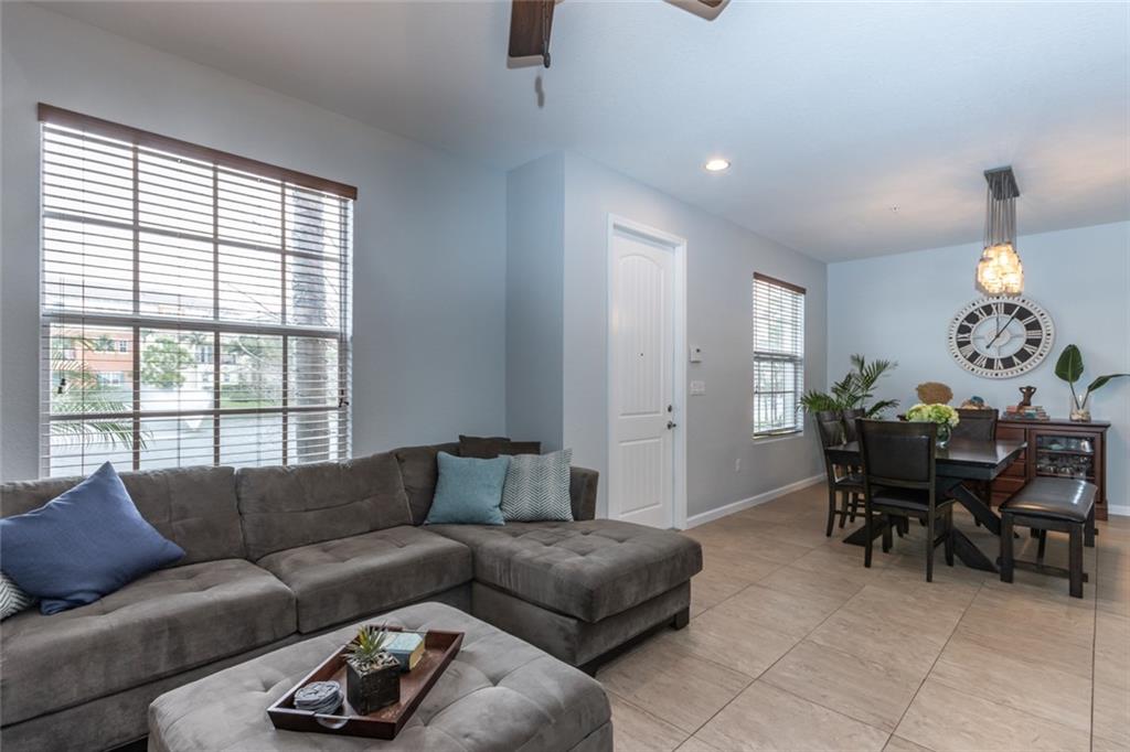 This light and bright 3 bedroom / 2.5 bath townhome is located in the heart of Orchid Grove - right on the lake! Water views from living room, dining room, kitchen, and master bedroom. Freshly painted throughout. New flooring on entire second floor. Separate office area. In unit washer & dryer. Enjoy walking around the lake, onsite fitness center, heated pool, and clubhouse. Pet friendly community. Roaming on-site security officer. Centrally located with easy access to I95 and minutes from the beach. No waiting period to rent.