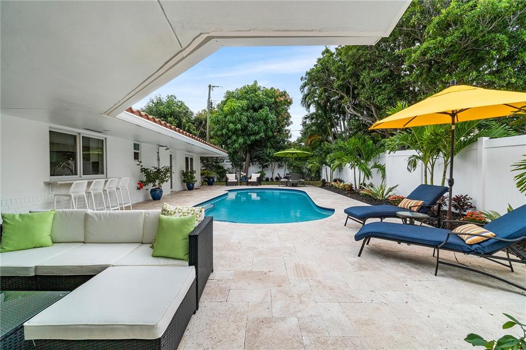 Best turnkey value in Harbour Inlet! Come see for yourself!! Property has had a total renovation, is minutes from Harbor Beach and a short walk or drive to everything the city of Fort Lauderdale has to offer. Impact glass, gourmet kitchen, four large bedrooms, teak and porcelain floors. Newer roof, 2 zoned AC. Updated heated pool, deck, poolside bar, lighting, and landscape provides plenty of room for outdoor entertaining or relaxing. Pool, side and back yards fenced for privacy. New three zone irrigation with rain sensor. Two car garage as well as garage storage and work bench. Backyard storage shed for pool equipment.