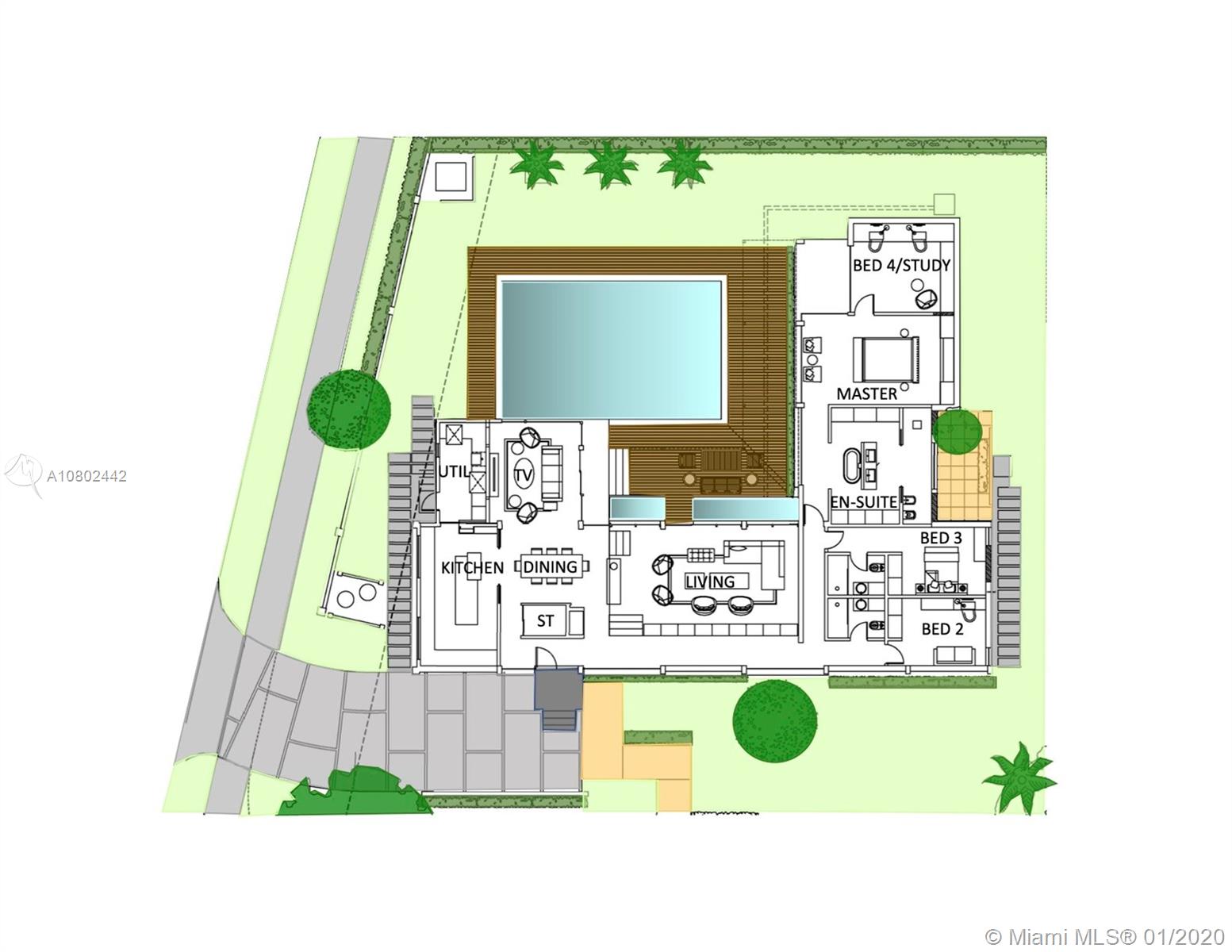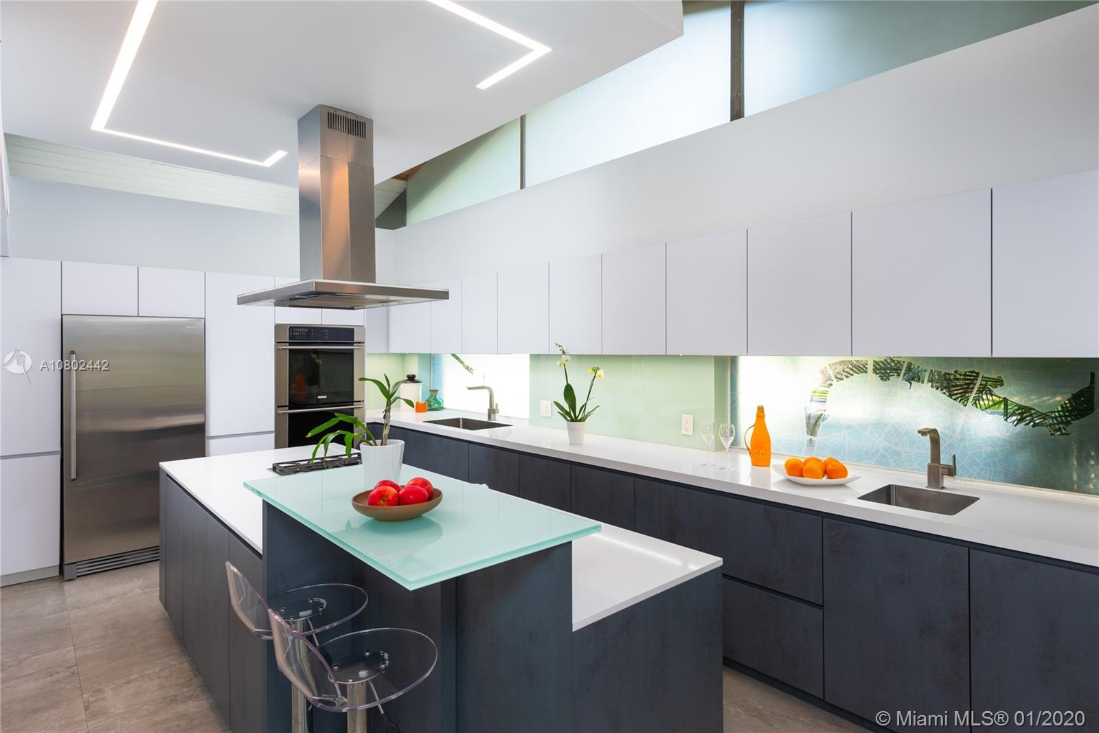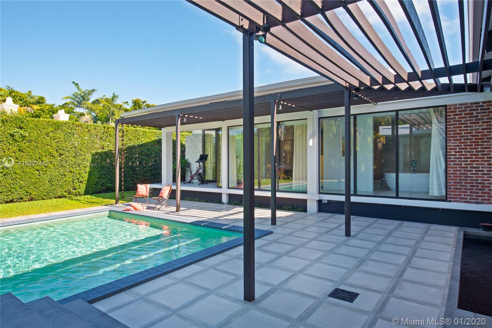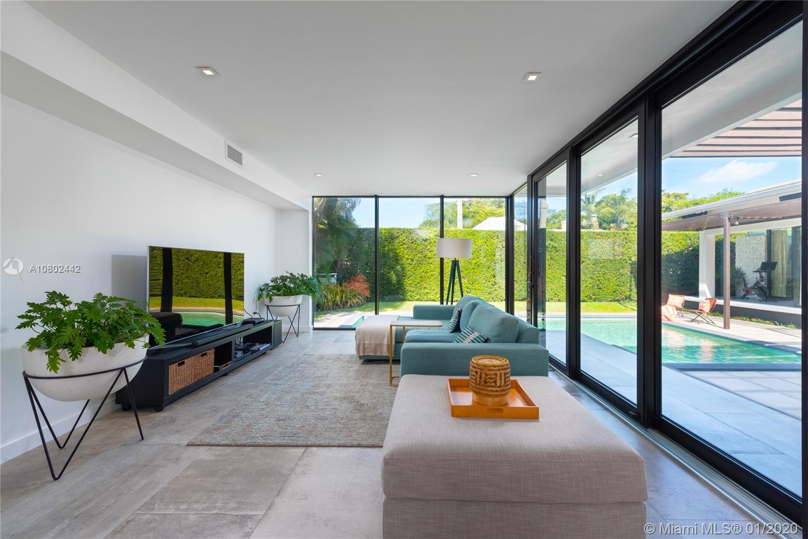 Timeless midcentury modern, 1 of a kind, Henry End designed architectural gem in Miami Shores exudes elegance of bye gone era & embraces excitement of modern living. Natural light flows throughout this 4 bd, 3 ba, 3,300+ sq ft home w/views of pool from every room.17’ ceilings add to voluminous feeling of home. Functional built-in 16' Brazilian Rosewood console divides sunken living room & gallery. Large pool adjacent to new koi pond surrounded by 15’ privacy foliage on oversized corner lot. Boasting gourmet gas chef’s kitchen w/second refrigerator in adjacent utility room. Located on quiet street in best section of Miami Shores 1 block from bay & bay walk. Future ready after comprehensive 22 mos renovation. Many more details available. A space not just for living, but for feeling alive.