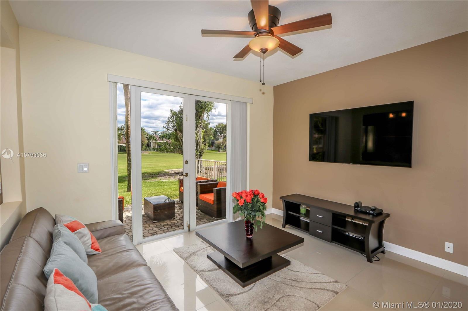 Incredible end unit with spectacular golf views. Come on home to this cozy, high ceiling living room area, sit and relax in the family room and watch the golfers at their best. Entertain in the upgraded kitchen and enjoy newly upgraded bathrooms. Hurricane shutters on all windows, and much more.