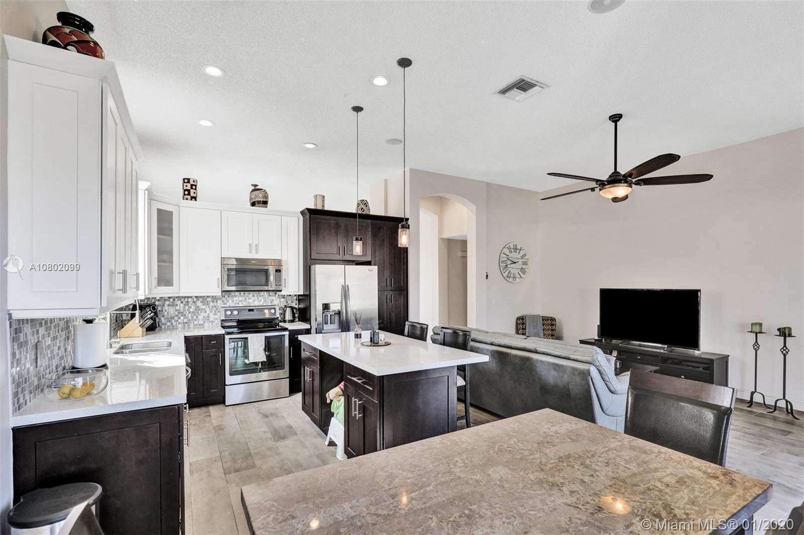 Welcome to Pembroke Falls, a gated community with a focus on active lifestyles.This beautiful and fully remodeled home is new on the market!Carmel model has so much to offer with 3 beds,2.5 baths and a spacious living area.Be the first to see this immaculate home with new tile floors,new ample kitchen with quartz countertops and a cooking island,stainless steel appliances,renovated bathrooms,new a/c unit and water heater, a new washer and dryer, new garage motor, freshly painted in and out, and fully fenced-in backyard for privacy. This home has it all! Pembroke Falls has numerous amenities: the 18,000 sqft community clubhouse, fitness center and aerobics studio, activity rooms for entertaining and a grand ballroom. The clubhouse has a heated pool with jacuzzi and a children's wading pool.