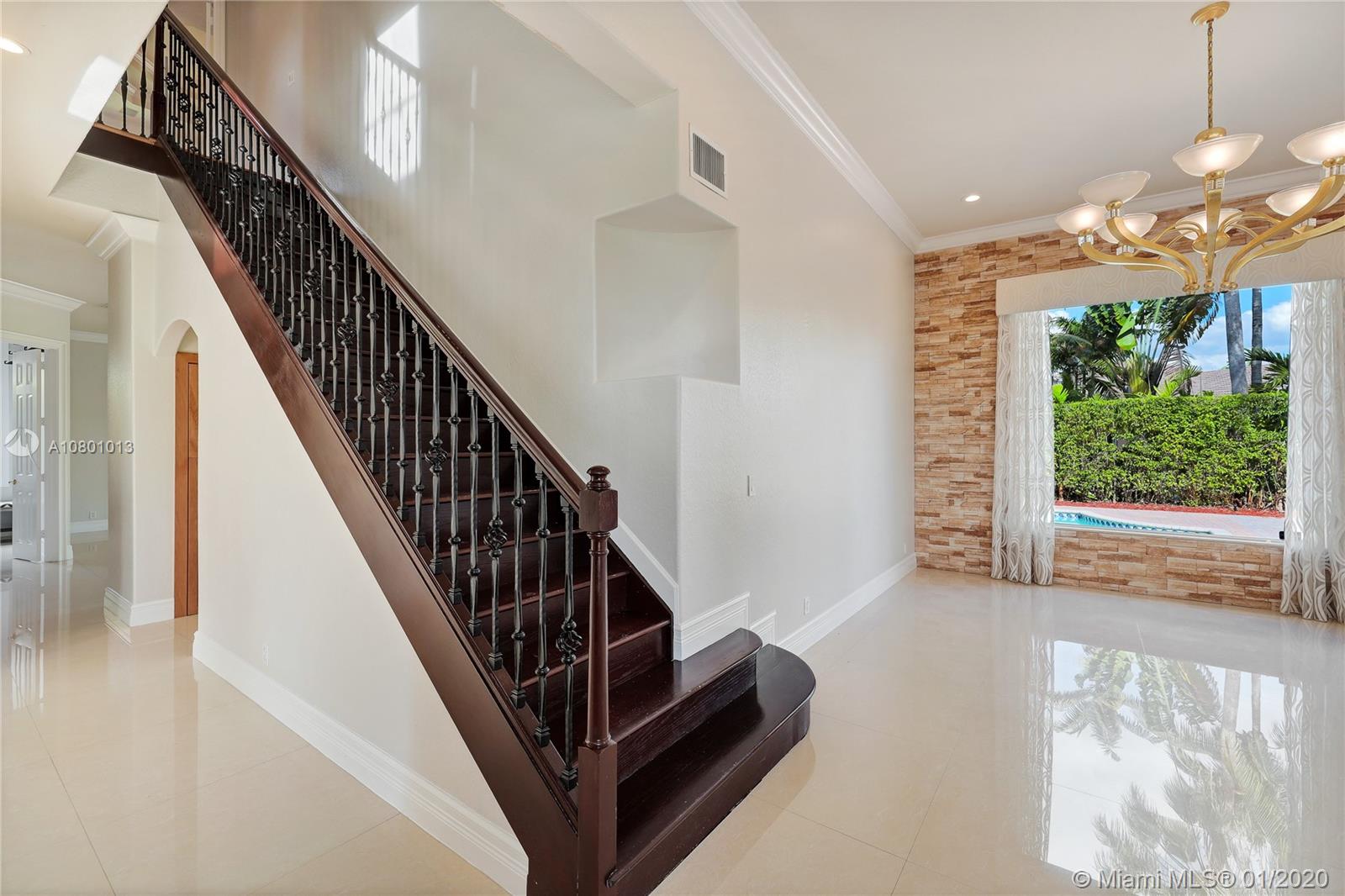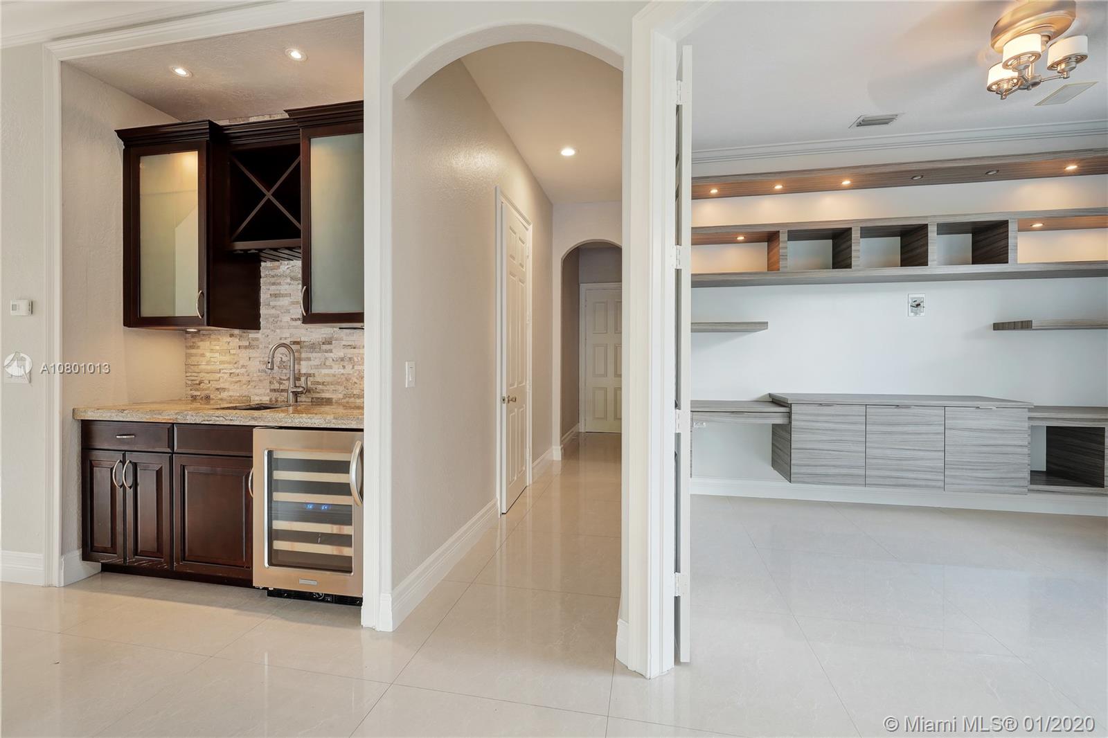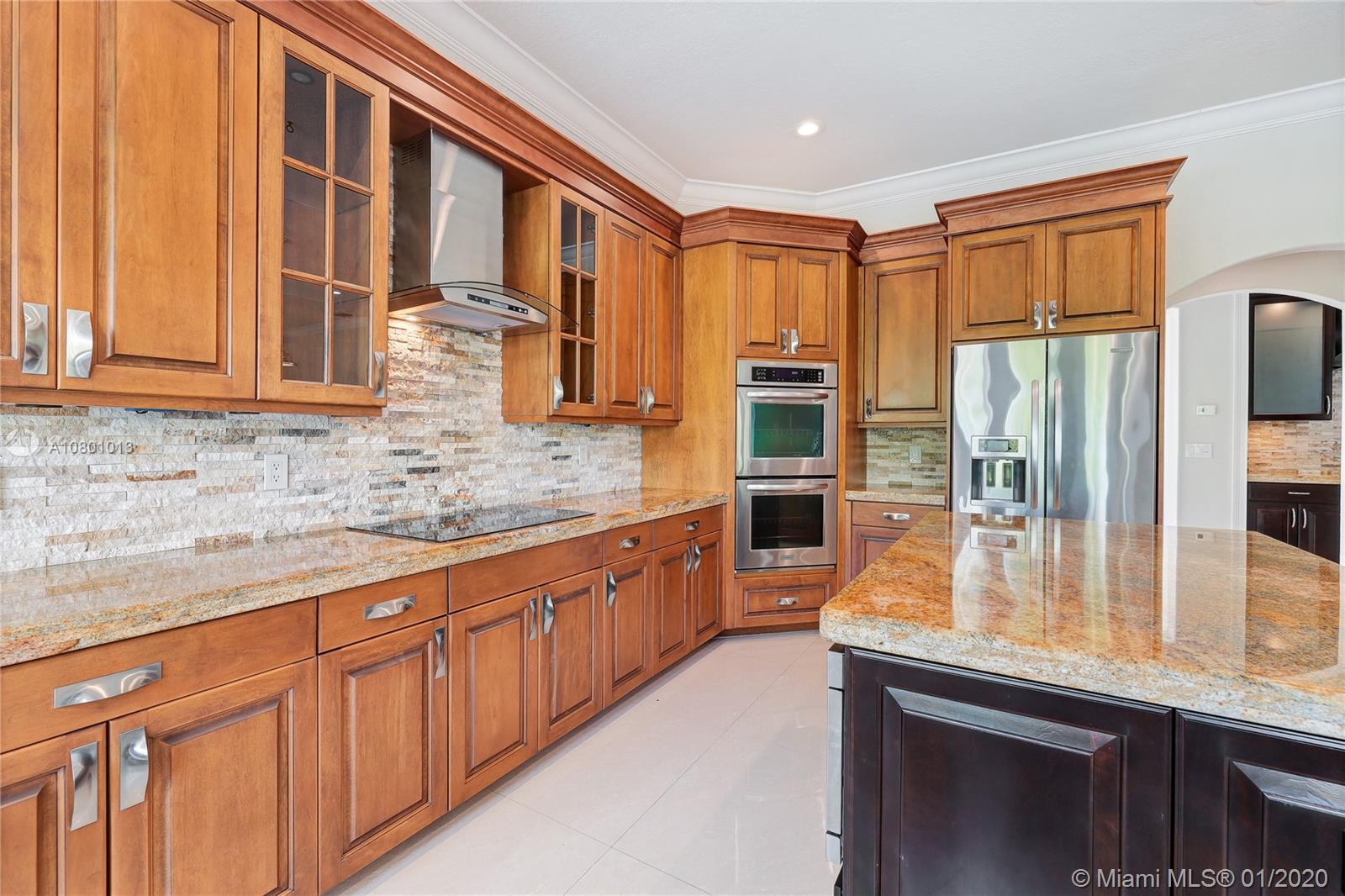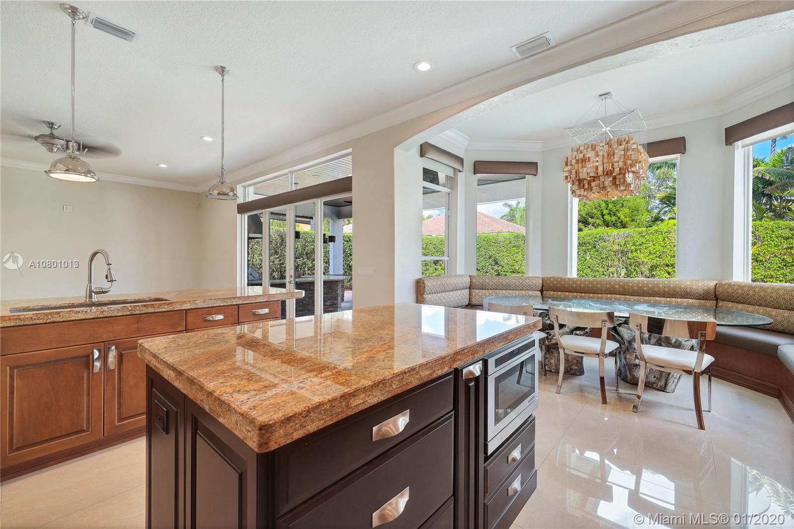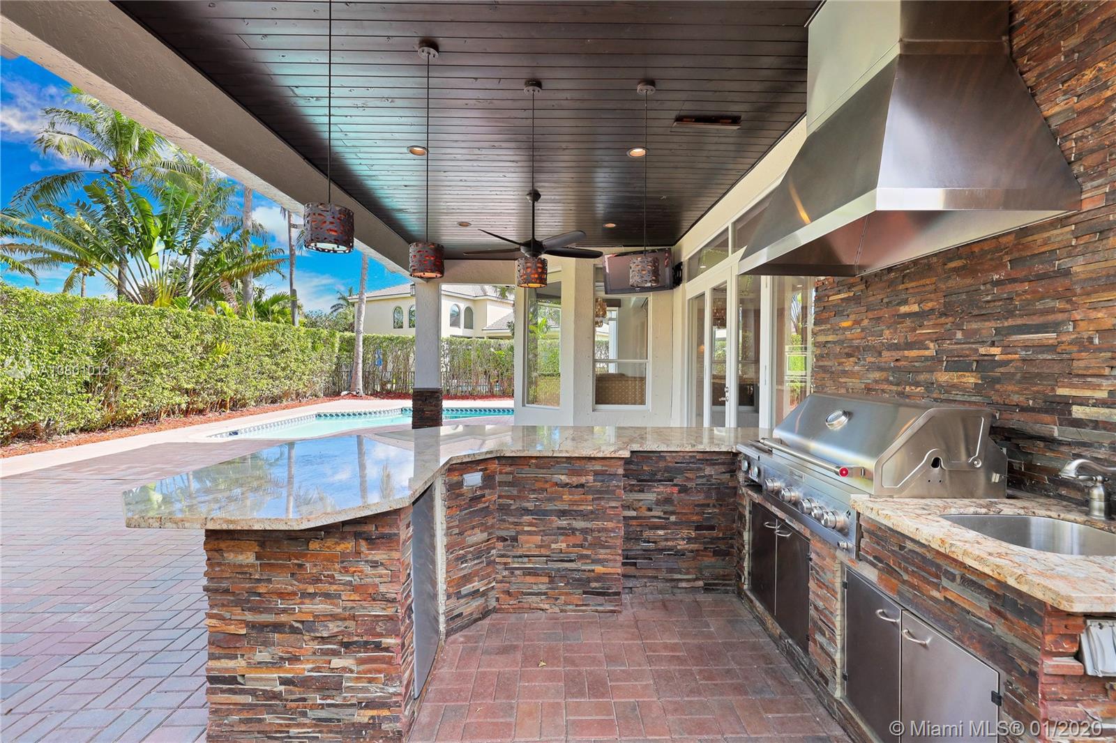 Luxurious Pool Home Corner Lot. 32X32 Porcelain Tiles w/ 6 inch Base Boards & 7 1/4 Crown Mldg Updated Kitchen with extended Island Granite Counters Stone Back Splash Pantry Double Oven Microwave Drawer Fridge Glass Hood Cooktop Wine Cooler Wet Bar Breakfast Nook Oversize Built in Bench with Custom Upholstered seating w/ storage Laundry room has Cabinets Granite Counter with Washer and Dyer Den/Office Cabana Bath 1 Bedroom downstairs. Wood Floors upstairs, 3 Bedrooms, plus Master Suite has Built in Bar with Beverage Center Marble Top Accent Tile Wall Recessed TV Master Bath Jacuzzi Tub Linen Pantry and Bench Rain Shower Custom Built Outdoor Kitchen w/ Commercial 2600 CFM Hood Built in 30" Gas Burning Grill Sink Under-counter Fridge Pendant Lights TV Stone Wall Brick Pavers Heated Pool