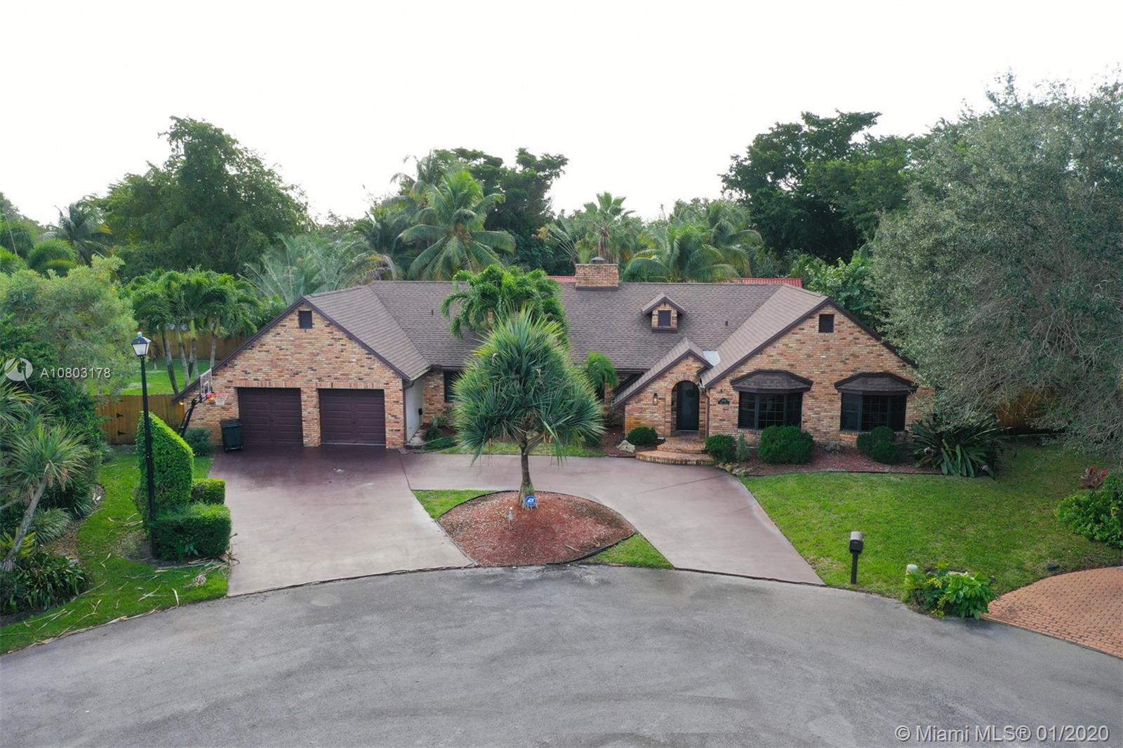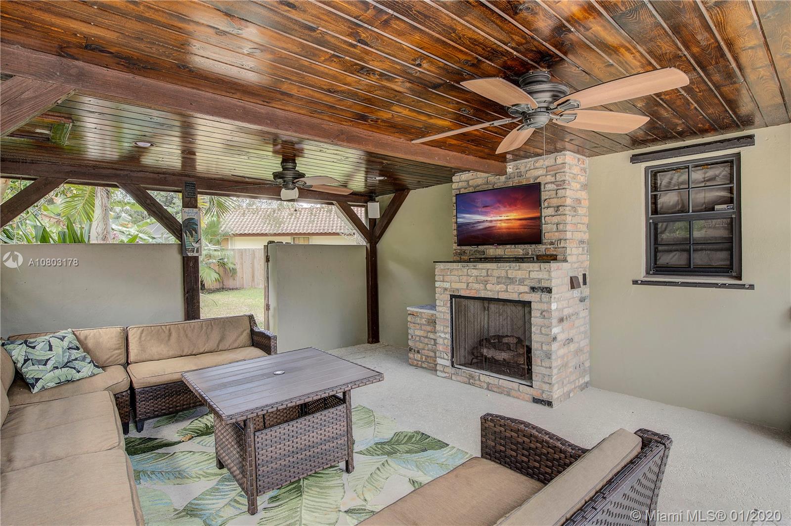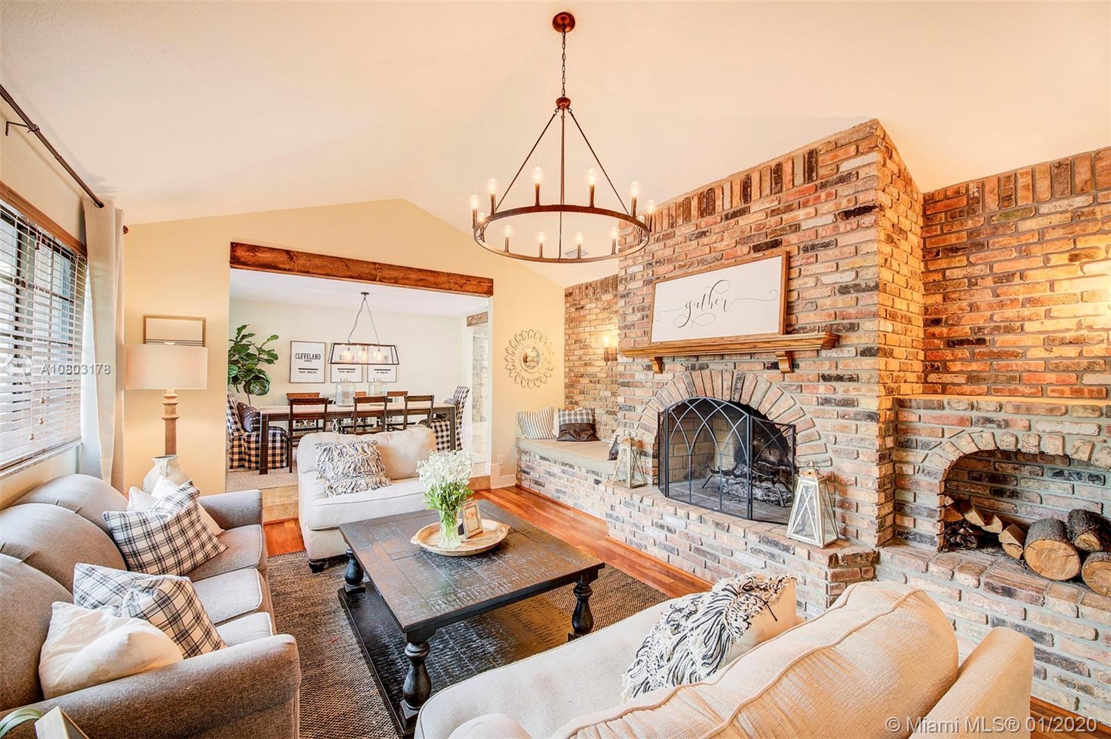 Step inside this ONE OF A KIND spectacular 5 bedroom 3 bathroom home with a pool sits on an oversized pie shaped lot at the center of a private cul-de-sac! Custom designed home that offers a split floor plan (in law living quarters with own bathroom), Specially designed indoor and outdoor gorgeous brick fireplaces. NEW ROOF, HURRICANE IMPACT WINDOWS, BRAND NEW AC/AIR DUCTS, BRAND NEW SOLAR PANEL/POOL PUMP AND CHILD SAFETY GATE, 24X24 Porcelain tile flooring, NEW ENGINEERED WOOD FLOORING in rooms, BRAND NEW WATER HEATER. CUSTOM BUILT Wet Bar! Master Bath/2nd bathroom all redone. 2 car garage, NEW landscaping + fencing, SURROUND SOUND SPEAKER INDOOR AND OUTDOOR, SMART HOME (RING DOOR BELL/SMART SWITCHES/ 24/7 Camera surveillance), Two separate oversized yards! OVER $200,000 in upgrades!!