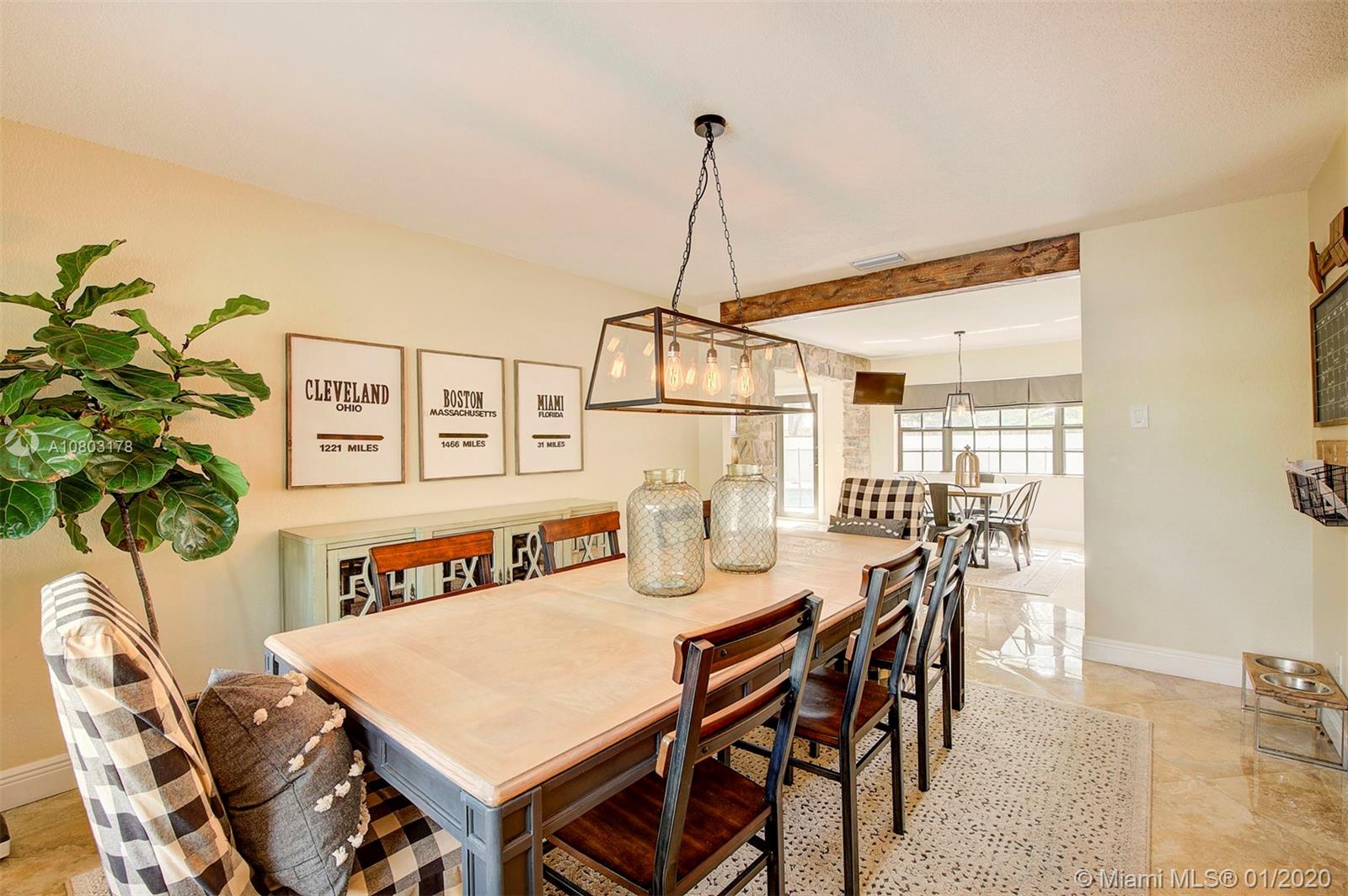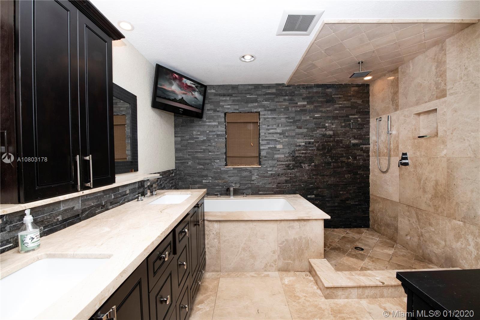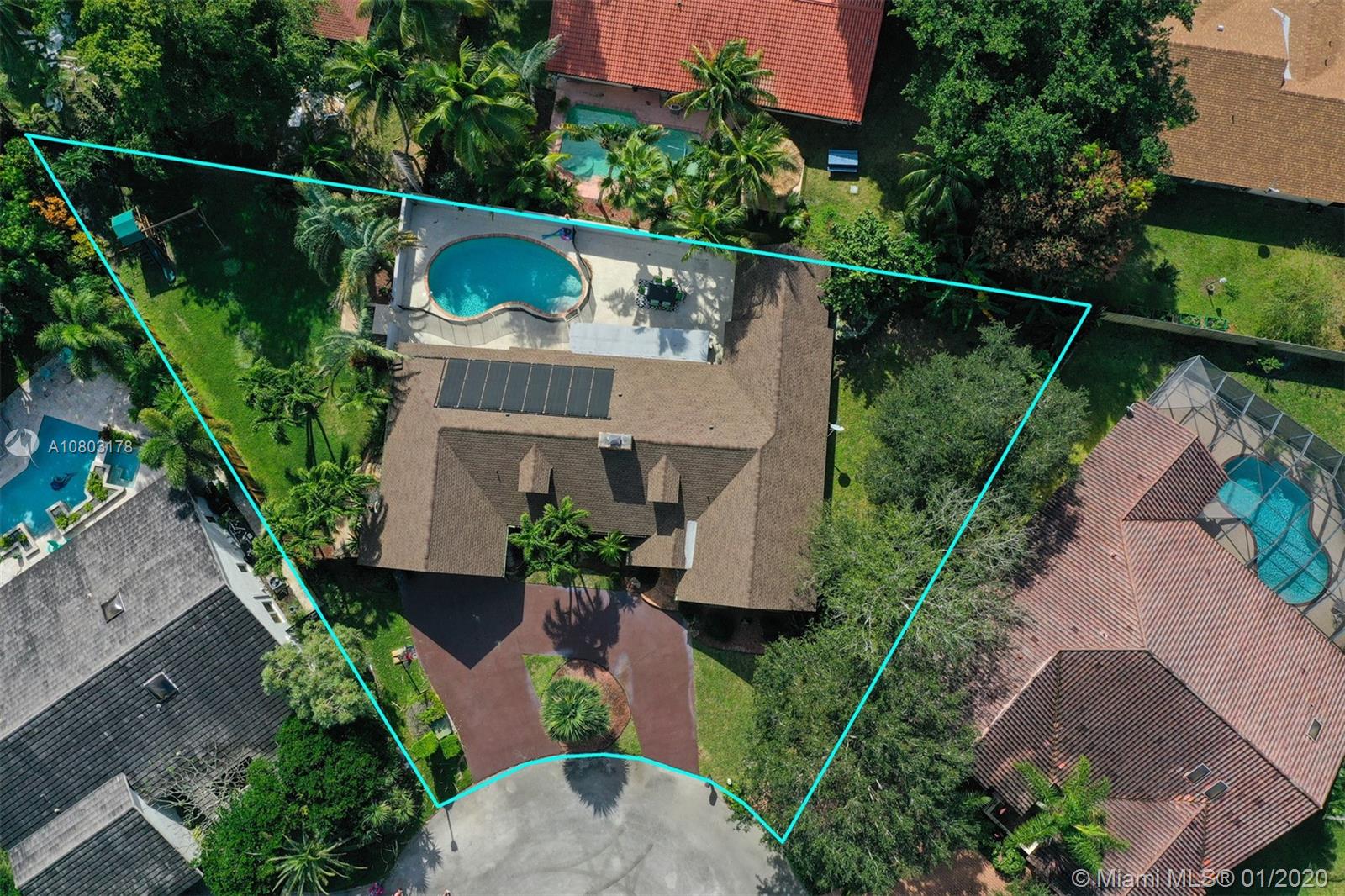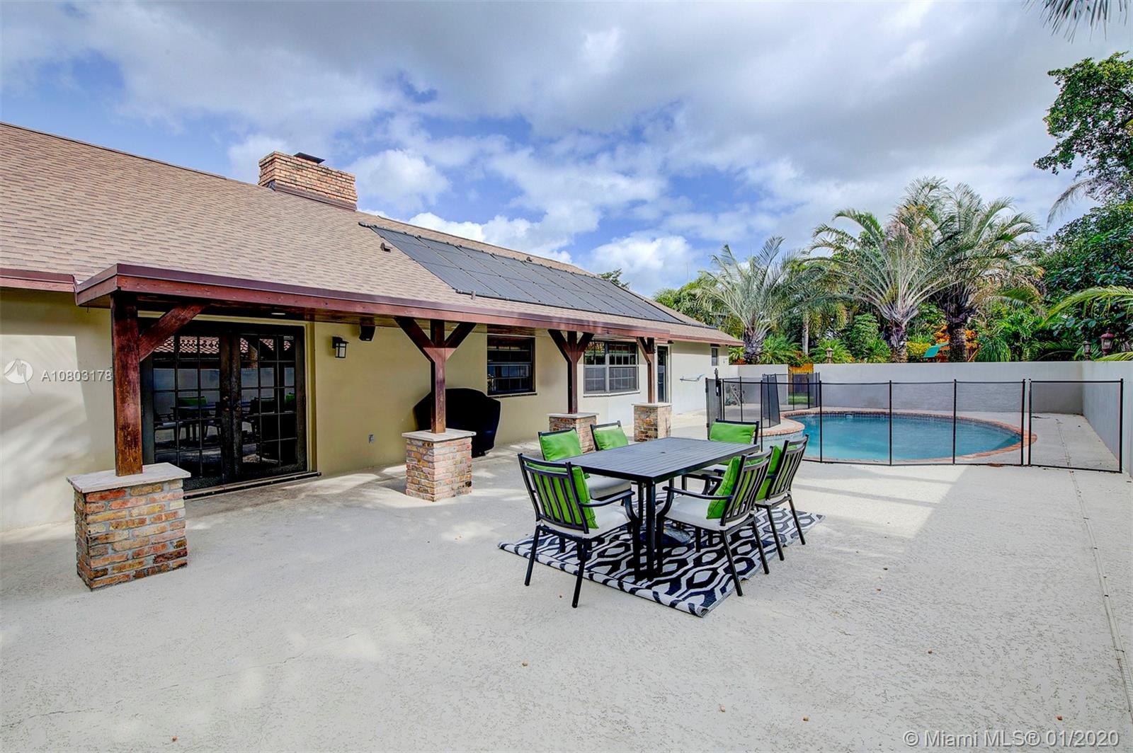 Step inside this ONE OF A KIND spectacular 5 bedroom 3 bathroom home with a pool sits on an oversized pie shaped lot at the center of a private cul-de-sac! Custom designed home that offers a split floor plan (in law living quarters with own bathroom), Specially designed indoor and outdoor gorgeous brick fireplaces. NEW ROOF, HURRICANE IMPACT WINDOWS, BRAND NEW AC/AIR DUCTS, BRAND NEW SOLAR PANEL/POOL PUMP AND CHILD SAFETY GATE, 24X24 Porcelain tile flooring, NEW ENGINEERED WOOD FLOORING in rooms, BRAND NEW WATER HEATER. CUSTOM BUILT Wet Bar! Master Bath/2nd bathroom all redone. 2 car garage, NEW landscaping + fencing, SURROUND SOUND SPEAKER INDOOR AND OUTDOOR, SMART HOME (RING DOOR BELL/SMART SWITCHES/ 24/7 Camera surveillance), Two separate oversized yards! OVER $200,000 in upgrades!!
