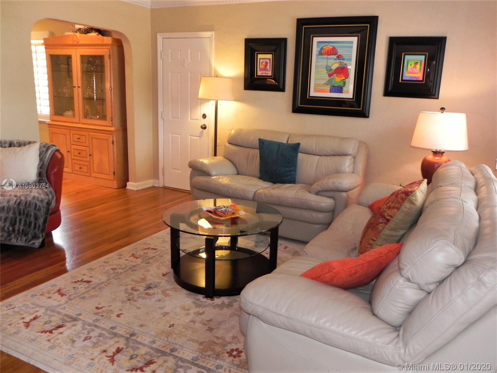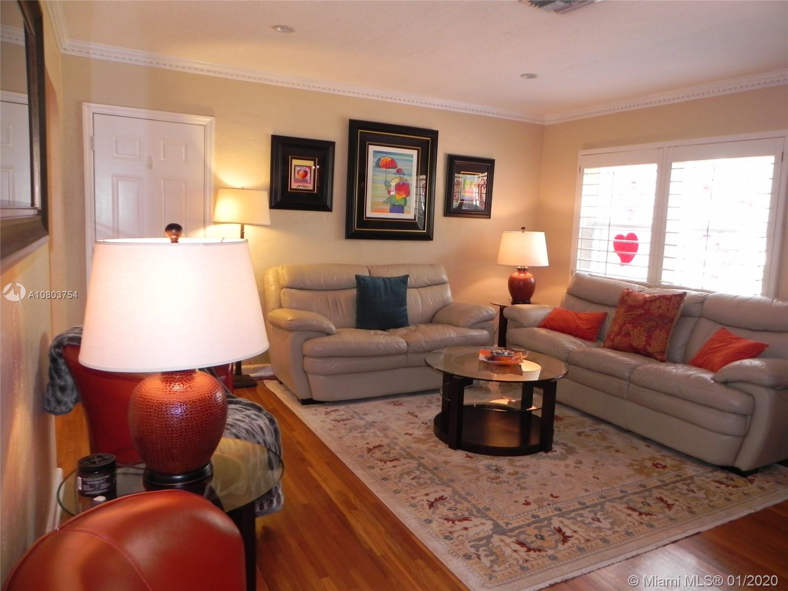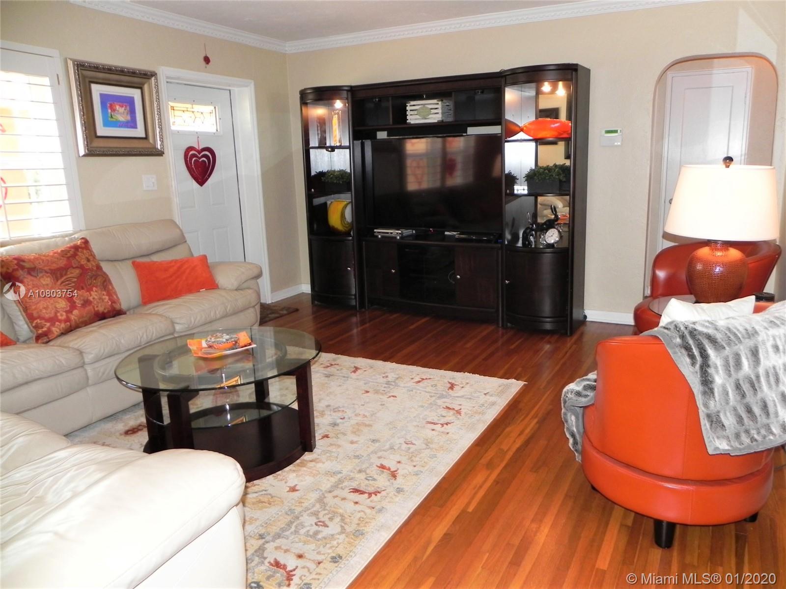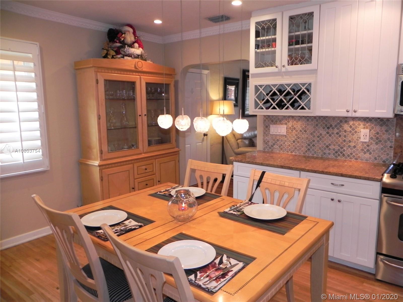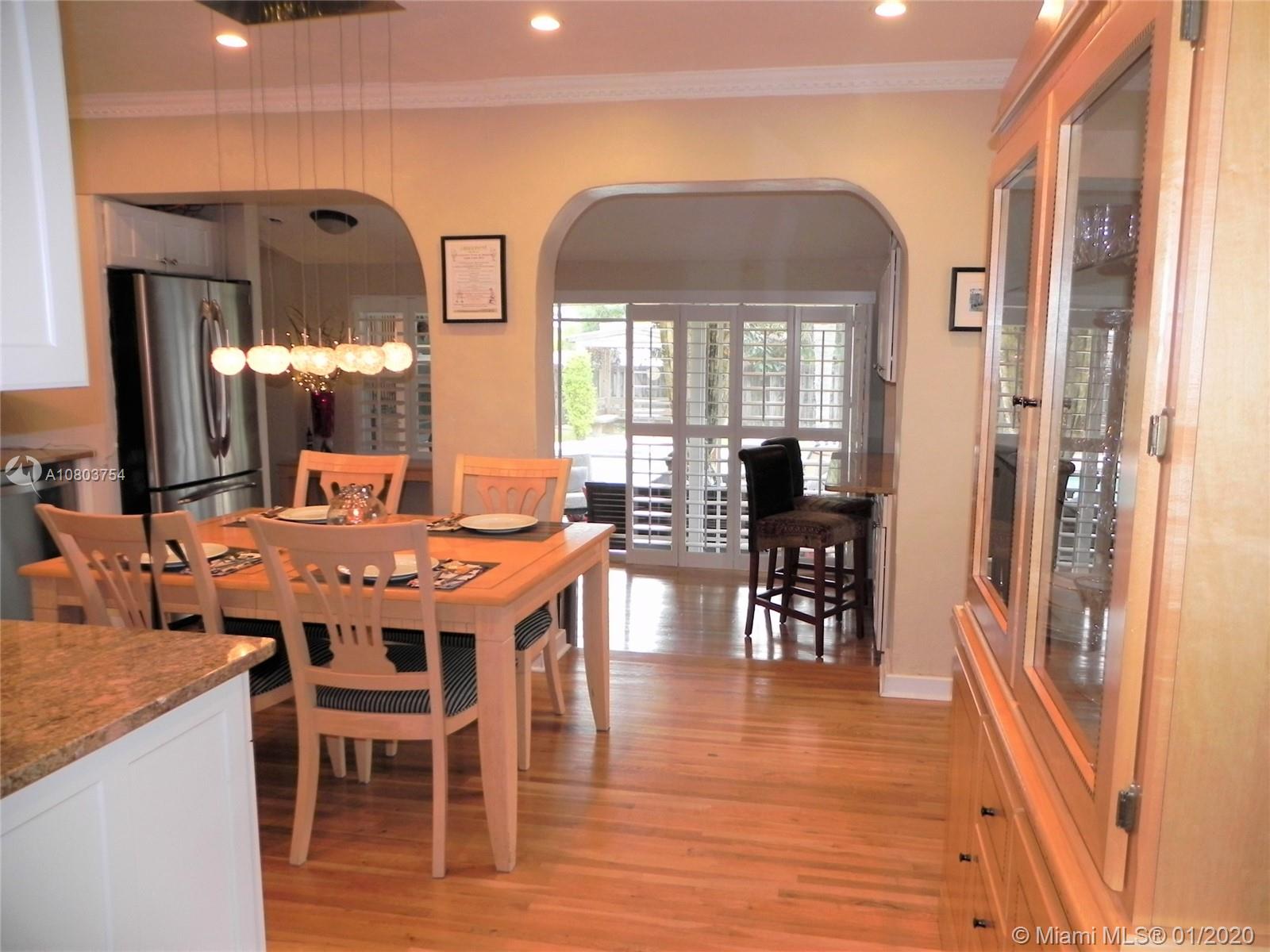 Beautiful Hollywood Lakes 3 bed, 2 bathroom home with awesome indoor and outdoor living spaces. Gorgeous screened and covered patio looking out to your huge backyard with large custom pool, established tropical landscaping, and private gazebo. Perfect for cooling off, relaxing, or entertaining friends and family. Large open kitchen with granite counters, stainless steel appliances, gas oven/range, tile backsplash, and custom cabinets. Kitchen opens to indoor bar overlooking pool and back patio. Beautiful indoor plantation shutters on all windows and sliding door. Private master suite. Impact windows and doors. Large stamped concrete circle driveway with one car garage and laundry/utility room. Minutes to beaches, downtown, golf, and more. Dade/Florida pine wood floors. Gas water heater.