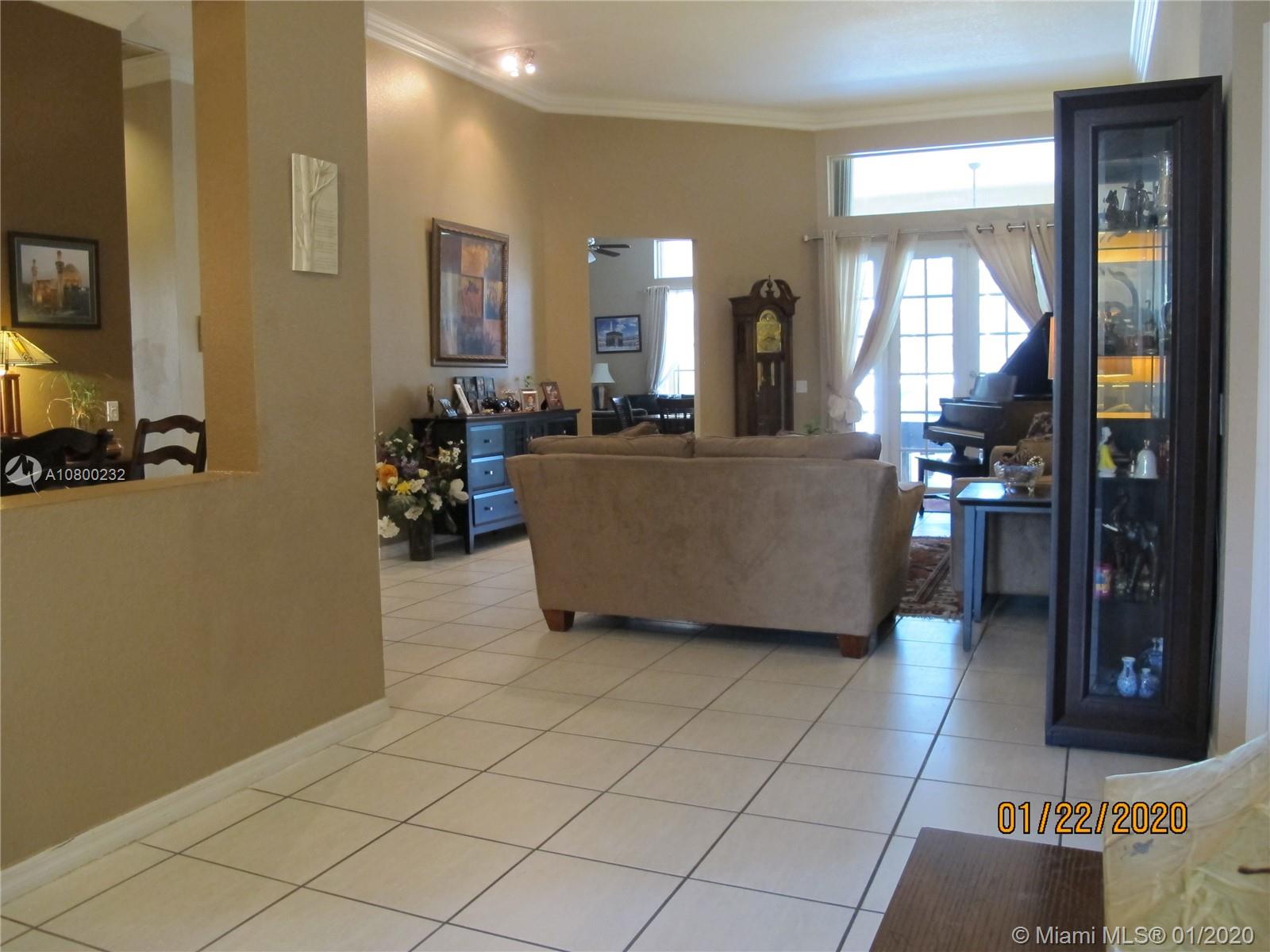 Motivated seller: Bright and spacious beautiful one story single house with 4 bedroom, 3.1 bathrooms, and a large office which can be a 5th bedroom. 2 car garage located in The Meadows with security guard gate. Community offers Kids playground, basketball, community pool and a lot more amenities. High ceiling throughout the house including the garage. Upgraded kitchen with granite counter-tops, new stainless steel appliances. Open kitchen, breakfast area, family room, large covered patio screened-in with the pool overlooking the water. Ceiling fans, tiles and carpet floors. Relaxing back yard. Hurricane shutters. Excellent rated School. Close to all Schools, shopping center, and major highways. You will be relaxed walking in this guarded community.