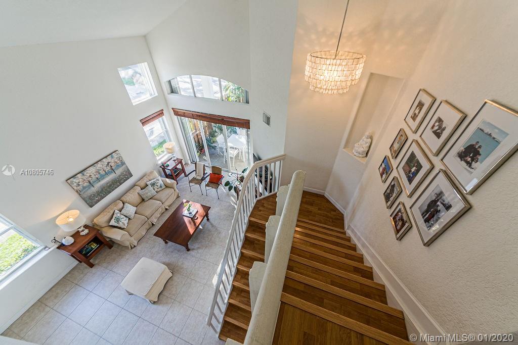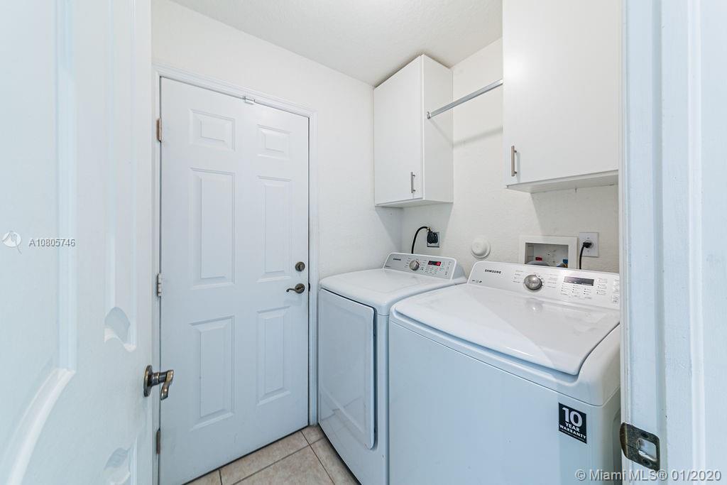 Beautiful 3 beds/3 full baths corner townhouse at gated community in Doral. Spacious, full of light layout with high ceilings, Accordion shutters in all windows and sliding doors. Tile flooring downstairs and laminated flooring upstairs. Kitchen with SS appliances and granite countertops. Downstairs bedroom with full bath and private entrance, perfect for in-laws, guests or home office. 2 large master suites style upstairs. New A/C. Designer landscaping outside and at paved, fenced patio. 2 car garage plus 2 cars at driveway. Plenty of visitor parking. Garage with extra storage. Exclusive and safe community, rarely a home for sale! Access to Islands of Doral Clubhouse. Next to Turnpike, new Legacy Park, new Glades Park, A+ schools, malls, restaurants and more. Easy to show!