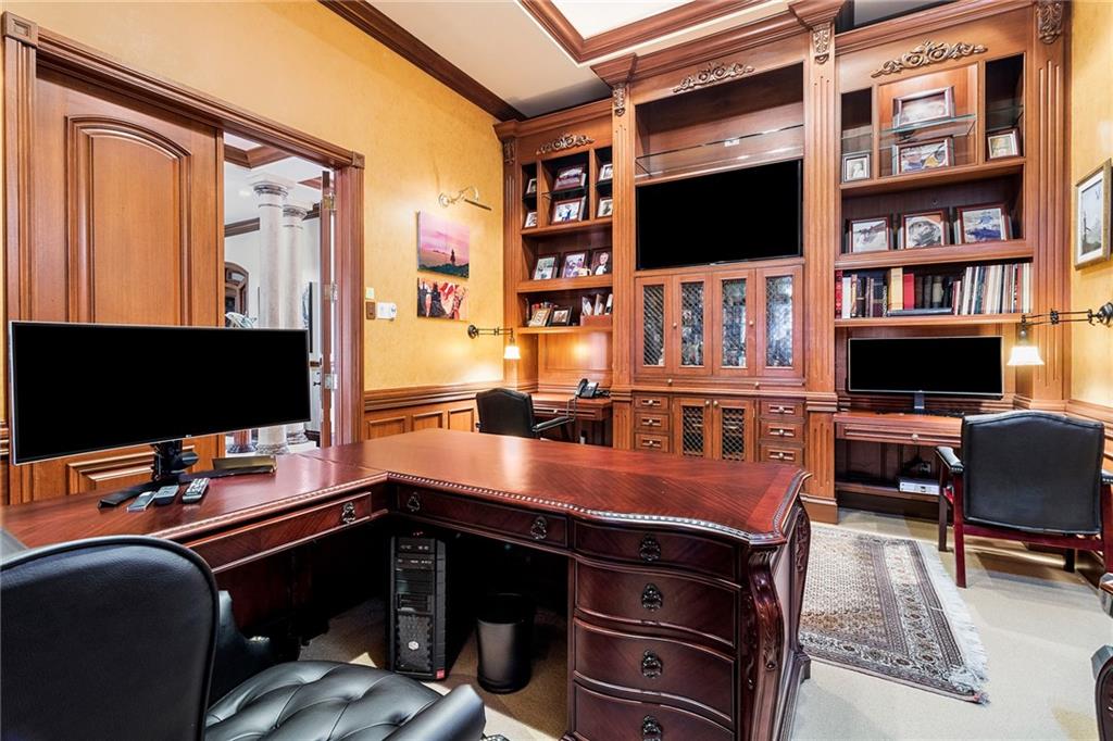 Elegant, custom built home with 125' of deep water frontage. Impact glass with high-end finishes throughout the home. Solid, mahogany doors, extensive use of marble and granite throughout. Home has an impressive office, den, gourmet kitchen with top of the line appliances. Temperature controlled wine cellar, Lutron Smart Home System controls & indoor/outdoor surround sound. Floor to ceiling built-ins, emergency generator. Home has 4 car garage (2 bays with lifts in place for 4 cars). Mediterranean- style dream home!