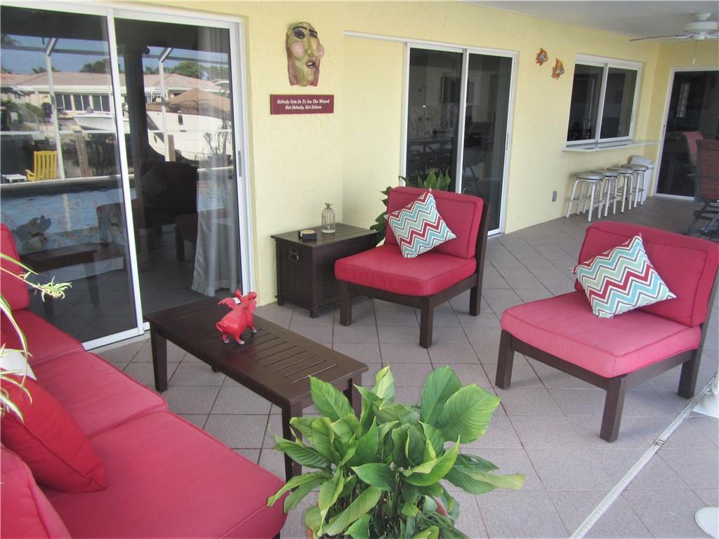 Rarely available-top location-80' waterfront-quiet cul-de-sac street. Nice curb appeal with NEW long lasting tile roof & paved drive. East exposure in back takes advantage of the cool ocean breeze. Prepare gourmet meals in the BRAND NEW luxury kitchen featuring quartzite counters and SS appliances. Rooms wrap around newly screened enclosed pool area & provide sparkling views of intersecting canals. Open to the pool with pocket sliders & kitchen pass thru bar. Extra outdoor covered entertainment space allows plenty of room to socialize in all types of weather. Great layout with split master suites each with accommodating new double sink counter-tops & vanities. Complete with a formal dining room/family area. Big walk-in custom closet. 14,000 lb boat lift, 65' dock. 4th bedroom/office.