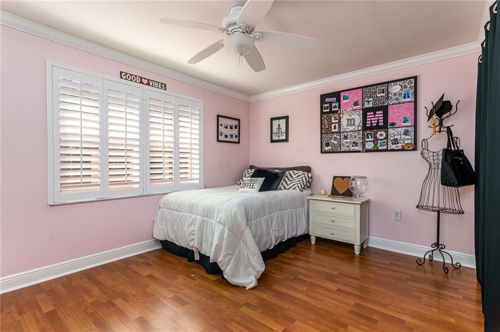 Move-in ready, meticulously maintained home on beautiful .23 acre, magical cul-de-sac lot where the neighborhood children play together. Many recent improvements include renovated kitchen and bathrooms, a new A/C unit, new pool equipment, and many other updates. Interior features include plantation shutters and custom closets throughout. 24X24in. porcelain tile flooring on the first floor living areas and flawless wood laminate on the stairs and second floor. French door leads to beautiful and private pool surrounded by palm trees and landscaping with custom concrete boarders. Private guard gated community with fitness center and community pool is within walking distance to great schools and large regional park.