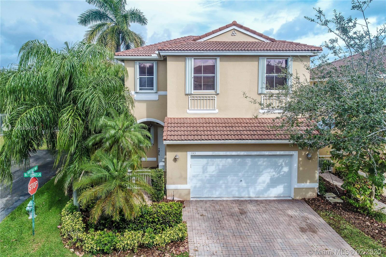 MOTIVATED seller, bring all offers, Beautiful 2 Story home 3BR, 2.5 baths, Open floor plan, formal Dining room, living room and family room, 2 car garage. Kitchen granite countertops 2100+Sf, NEW MICROWAVE & STOVE, newer refrigerator 1yr old. Marble flooring downstairs, Master bedroom & guest bath are updated w/ large sitting area could be an office/nursery. All bedrooms upstairs. Barrel Tile roof, Accordion shutters, Newer A/C & water heater. Safe and Beautiful community, Great Amenities 24 hr security, Tennis courts, Gym, Club House, heated community pool, clubhouse. Caravaggio Model. NOTE: Gate can be installed for access to the park PRIVATE BACKYARD, NO NEIGHBORS. Corner lot, very quiet area with little traffic, property over looks the reserve. LOW MAINTENANCE FEE, see attachments