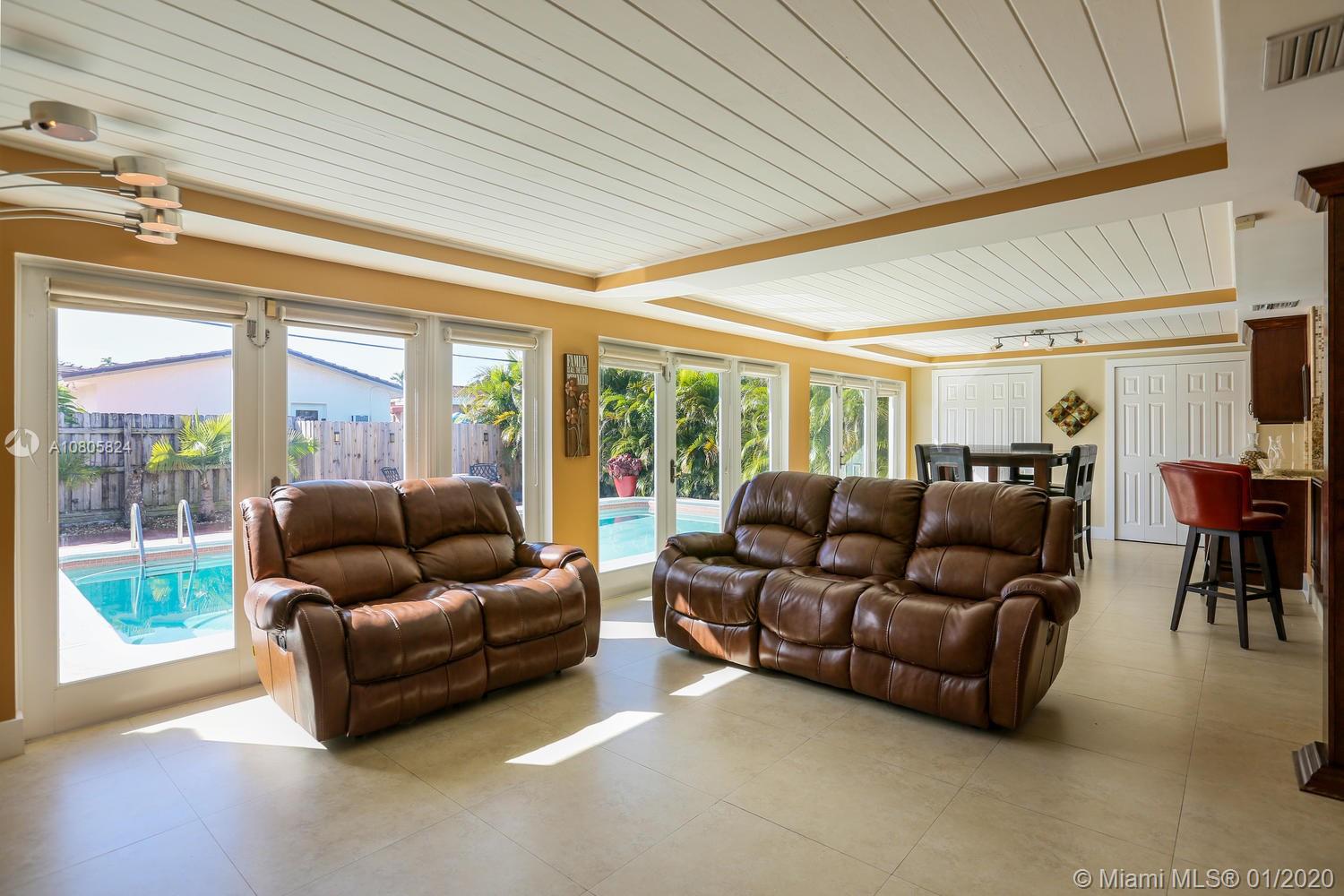 Another Hot Hialeah Home! Serenity speaks in this beautiful, updated pool home! Cool, peaceful and perfect for entertaining with large family room overlooking pool area. Spacious modern kitchen with stainless steel appliances. Large modern tiles throughout main living areas. All bathrooms have been updated, newer a/c system, impact doors and windows throughout the entire property. Huge closet in one of the bedrooms - built-in custom shelving throughout the different closets. Home is set up as a 4 bedroom, 2.5 bath home although tax record states 3/2 - records show garage was enclosed at some point in time. 3 bedrooms/1 bath on 1 side of home and 1 bedroom/1 bath on the other side. 1/2 bath off family for guests. Plenty of driveway space for parking.