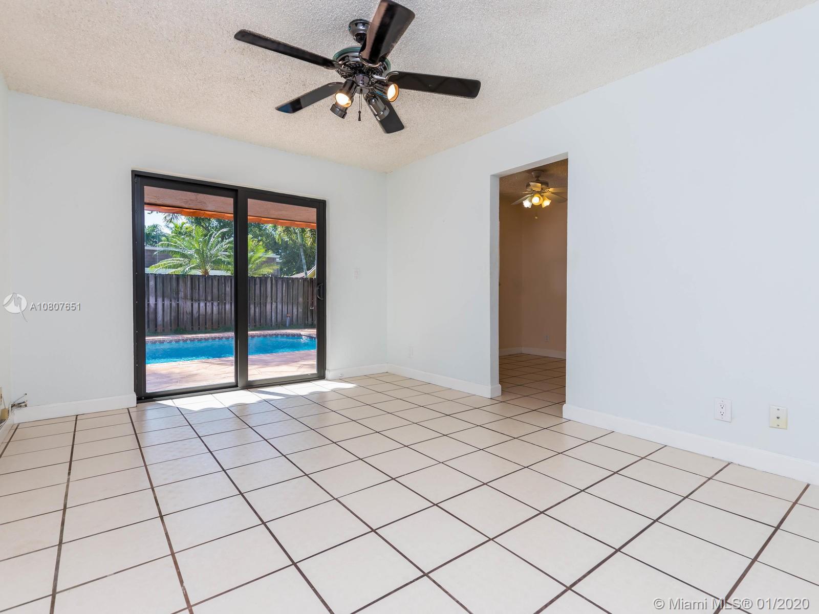 Lovely One story 3/2 home with a pool in the heart of Cooper City. Ready for new owner to make their own. Converted garage, inside laundry room, eat in kitchen, dining and living room. Spacious bedrooms and updated bathrooms. Accordion shutters and one impact sliding door. Recently painted inside and out and pool patio redone. Accross the street from Ted Ferone park. A schools, established area. Large fenced yard.