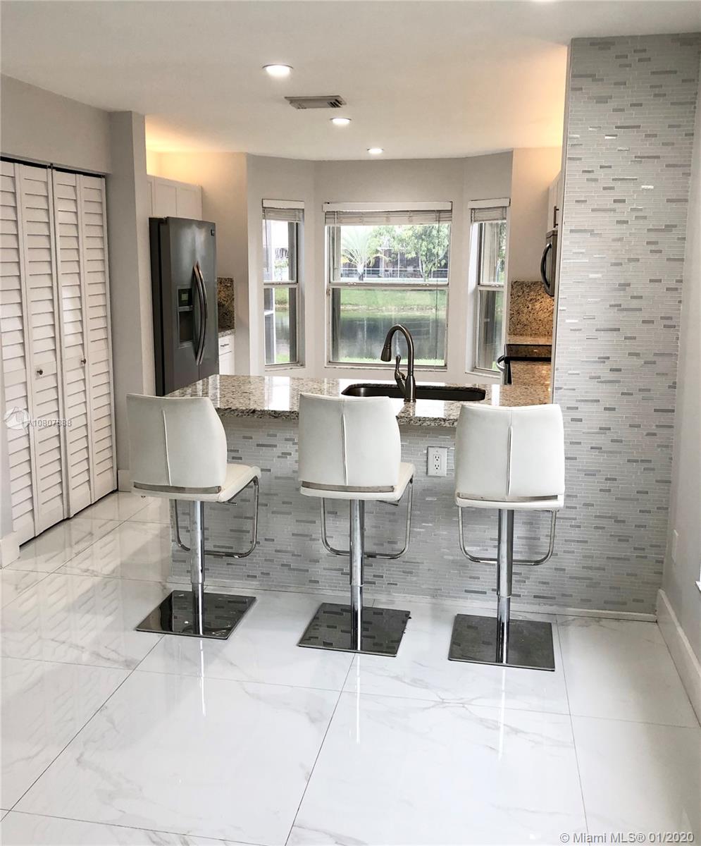 Beautiful 2 story in the heart of west Pembroke Pines. Originally a 4/2.5 with fourth bedroom being used as a loft or second family room upstairs, great for kids or an office. Elegant porcelain flooring on main floor and luxury wood vinyl on the second level. Granite countertops with white shaker cabinets and SS appliances. Large yard with screened in patio. Bbq area with bistro lighting and gorgeous lake views. Community association includes cable, internet, security, gate, front lawn and amenities.