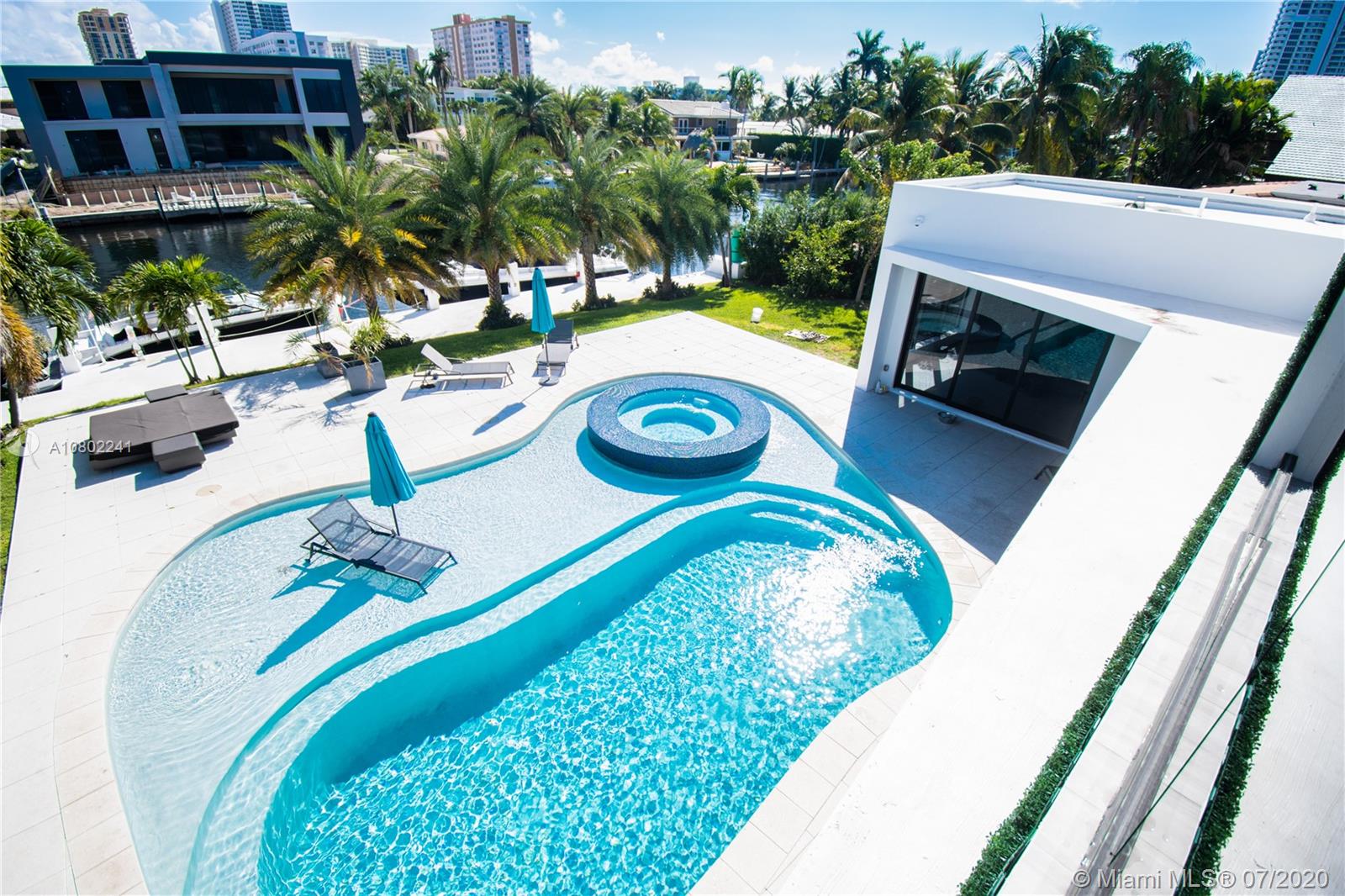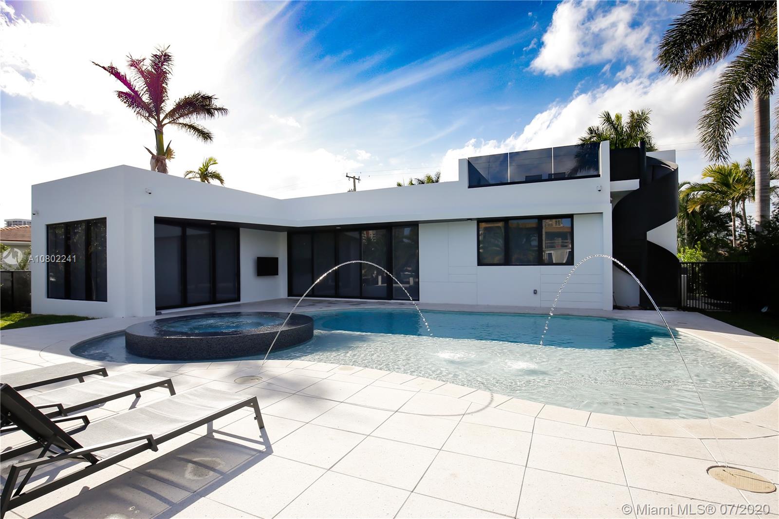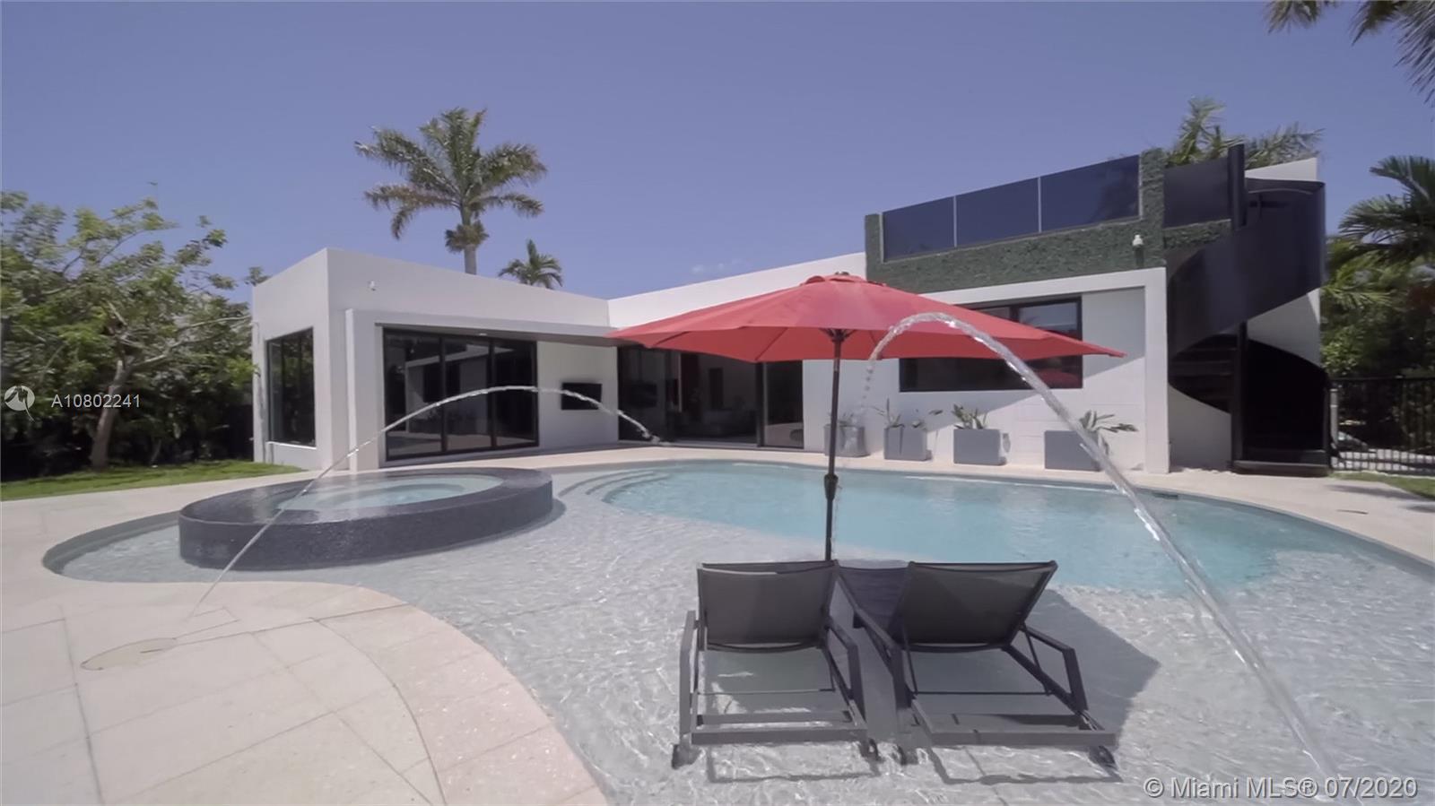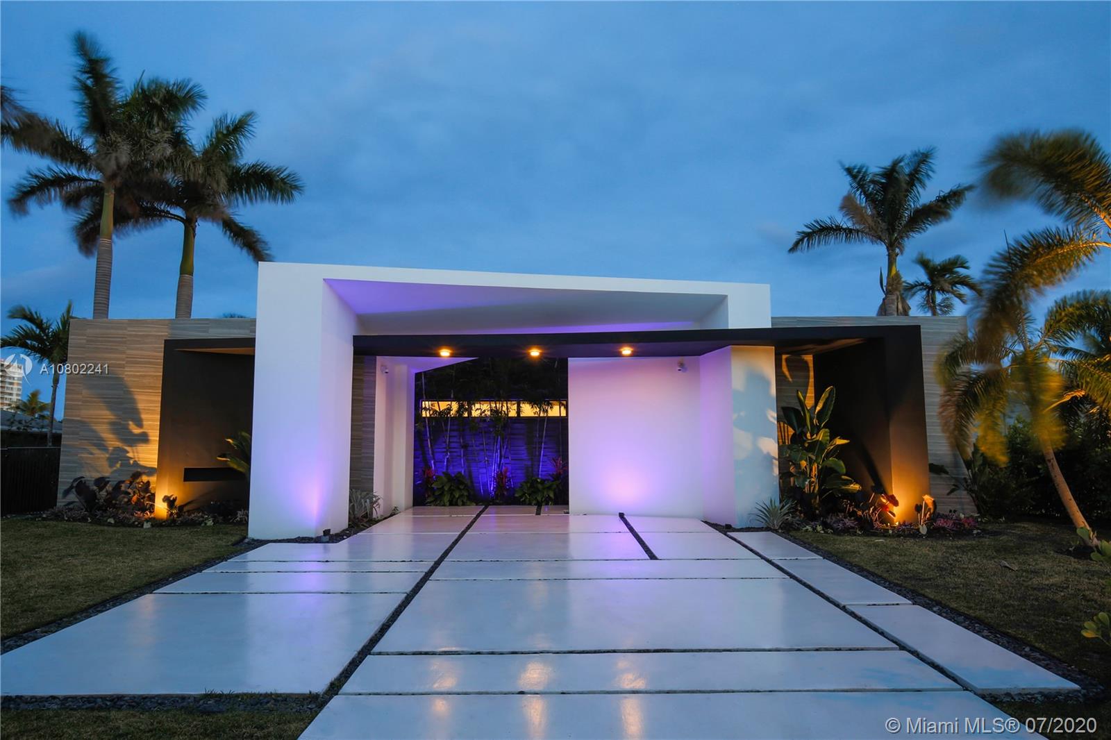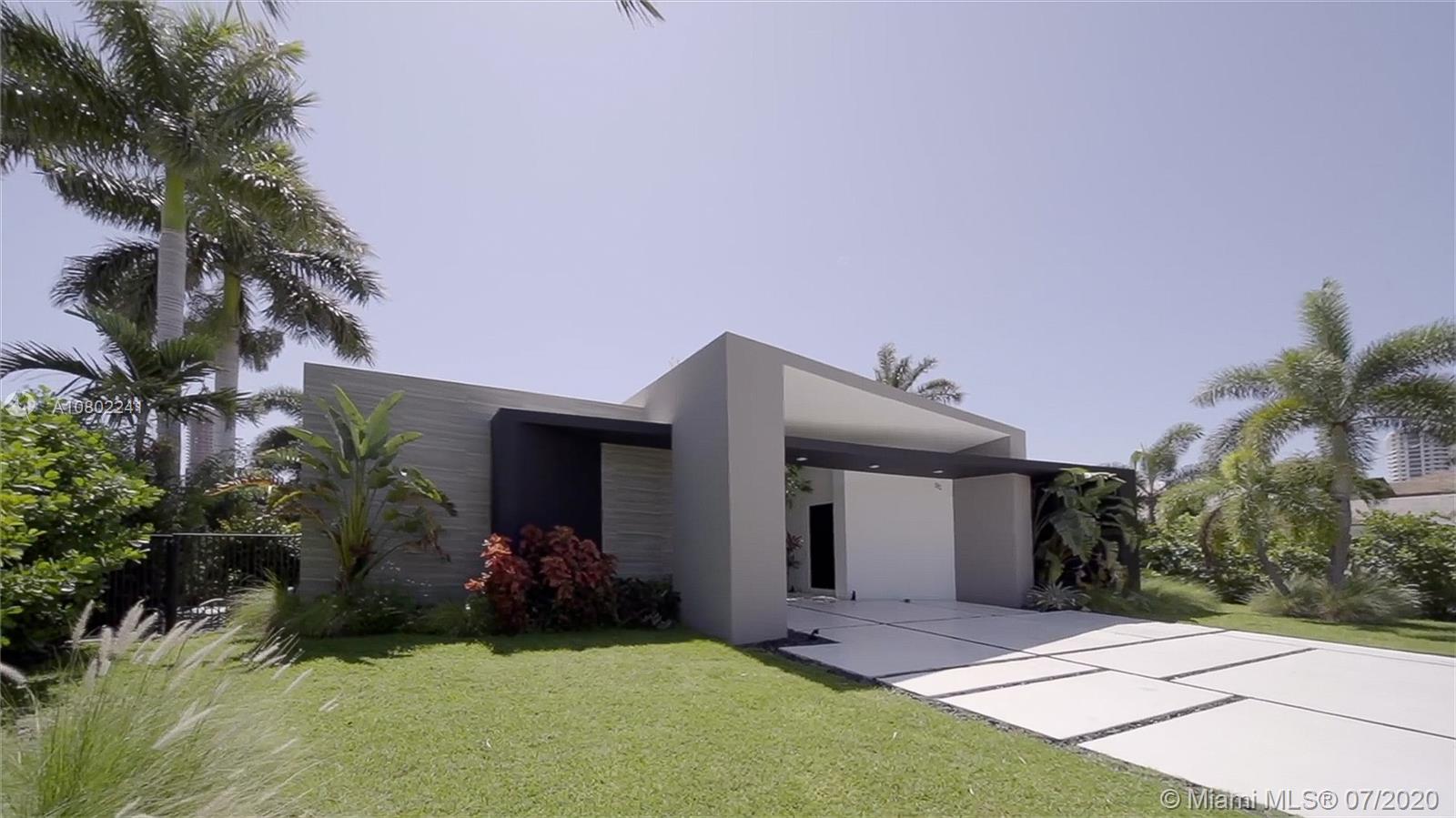 Ultra-modern single story architectural masterpiece in prestigious Golden Isles community. Meticulous no expense spared construction featuring impact windows, reinforced concrete roof, 500 Sq. Ft. rooftop terrace, large beach area pool with raised spa. 85' modern concrete dock with lights, dual power and water. The interior features 4 bedrooms and 3 bathrooms where 2 are primary bedrooms with en suite bathrooms, fully smart Control4 home with LED lighting, interior and exterior sound system and televisions, electric blinds and security systems all controlled from your phone or iPad. Just 1 block to the intercoastal and no fixed bridges to the ocean. Virtual Showing: https://vimeo.com/445824884