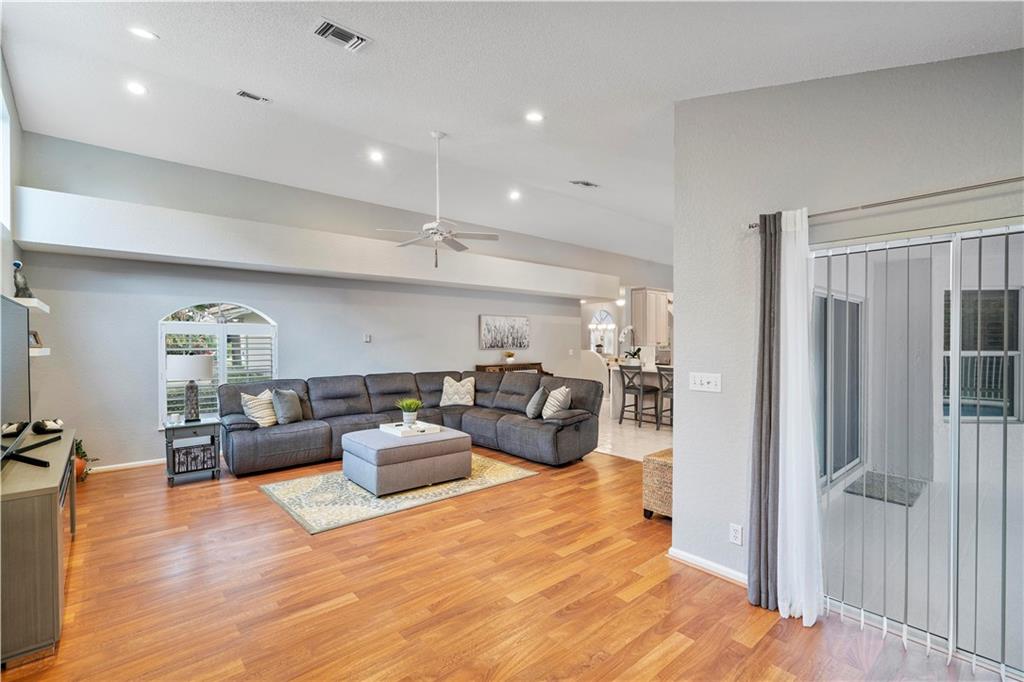 THIS IS IT!!! IN PERSON SHOWINGS AVAILABLE !!Check out this Pristine Must See 4 bedroom + office space Home !! The owners have really made this special. Upgraded Kitchen & All Baths. The choice of quartz waterfall design counter top in the kitchen is fabulous with white subway back splash. Beautiful natural maple cabinetry and stainless appliances. The family room (where you live) is huge. Plenty of room for 85" TV or more plus extra long sectional . How about a Pool Table?? Plantation shutters & New draperies, LED high hats throughout, New light fixtures New A/C Unit & More. Lot size over 13,000 sq ft. Ideal location near the Private community park is perfect. Oversize 2 car garage. Hello, It's a Keeper !!.