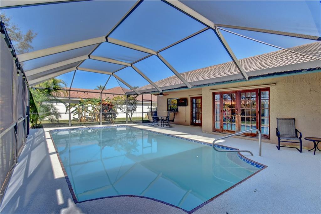 This Gorgeous 4/2 Pine Ridge pool home is waiting for you! This completely remodeled home features: oversized lot, hurricane shutters, 2015 A/C, circular paver driveway, spacious open floor plan, vaulted ceilings, newer laminate flooring throughout, modern kitchen with Stainless Steel appliances, wine rack, granite counters & pantry, knockdown ceilings, beautiful Travertine bathrooms, laundry room with full size washer/dryer, French doors for tons of natural light, screened-in/covered patio, heated saltwater pool and large, fully fenced backyard. Low Semi-Annual Maintenance fee. Close to shopping, dining, schools, parks and Sawgrass Expressway. Hurry this won't last!
