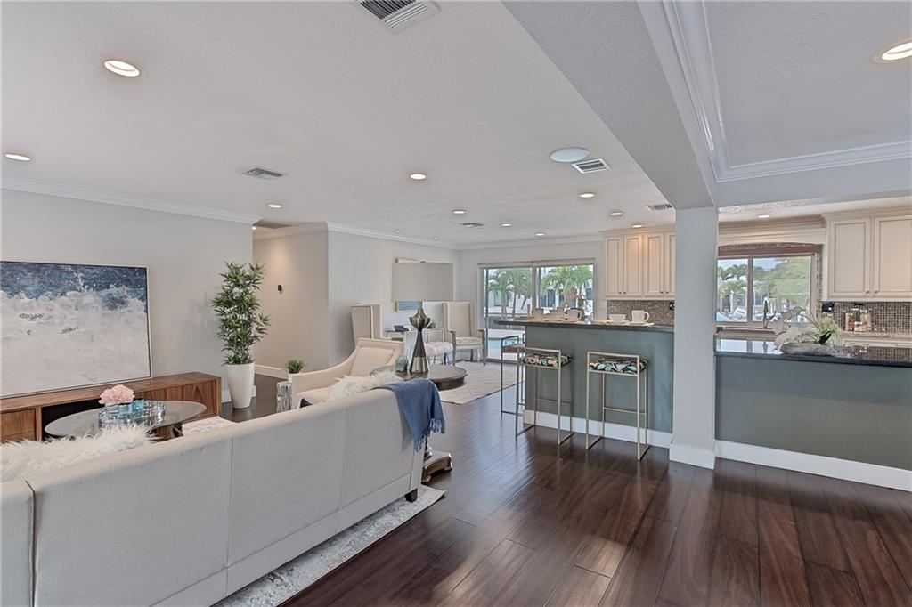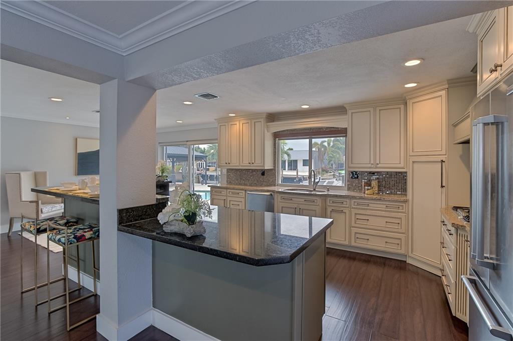 TURNKEY 2 BEDROOM/2 BATHROOM WATERFRONT POOL HOME. CAPTIVATING WATER VIEWS FROM YOUR COMPLETELY UPGRADED RESIDENCE. THIS HOME IS PERFECT FOR ENTERTAINING – OPEN FLOOR PLAN INSIDE AND WATER VIEWS FROM THE TRAVERTINE PATIO, LARGE POOL AND GAZEBO OUTSIDE! THE KITCHEN UPDATES INCLUDE GRANITE COUNTERTOPS, STAINLESS STEEL APPLIANCES, GAS COOK TOP, AND A WINE REFRIGERATOR/COOLER. BOTH BEDROOMS HAVE WALK-IN CLOSETS. THE LUXURIOUS MASTER BATHROOM HAS DUAL SINKS, JACUZZI TUB, AND A SEPARATE SEAMLESS GLASS DOOR SHOWER. ADDITIONAL UPDATES INCLUDE IMPACT WINDOWS AND DOORS, SMART HOME TECHNOLOGY, ELECTRIC SHADES/BLINDS, PLANTATION SHUTTERS, AND WOOD FLOORS THROUGHOUT. WITH 70' ON ON THE WATER PARK YOUR BOAT AT YOUR PRIVATE DOCK AND ENJOY YOUR PERSONAL BACKYARD PARADISE.