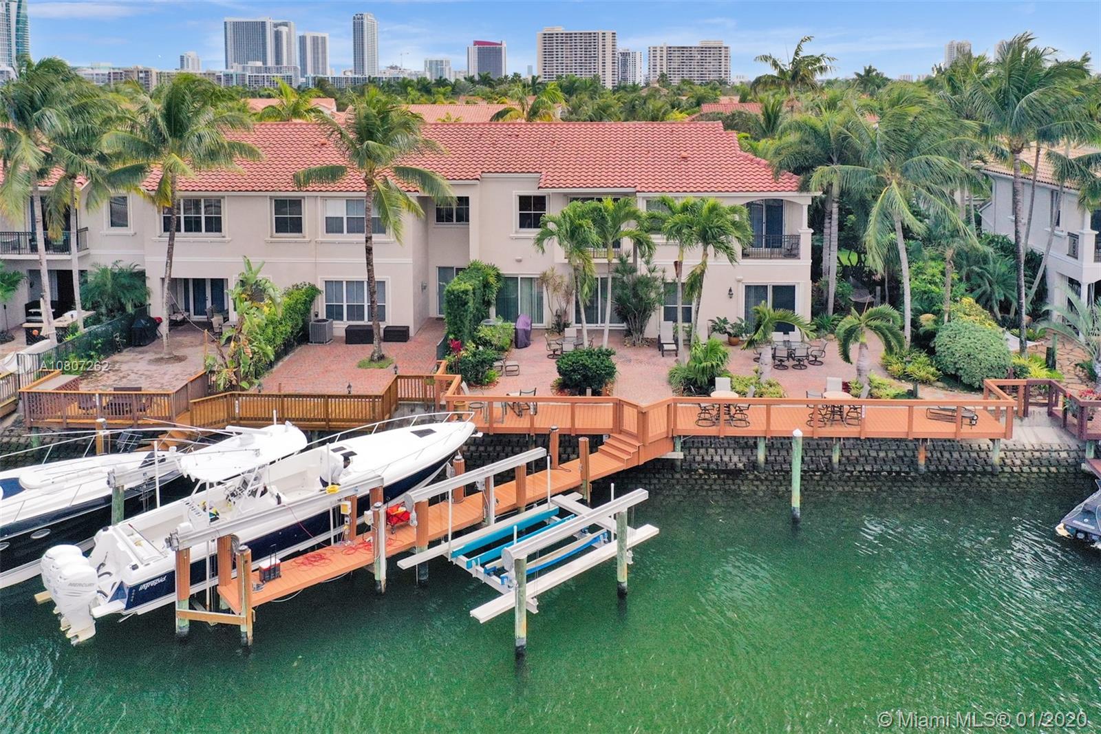 Waterfront-Direct Ocean Access. Located in prestigious gated community of Harbor Islands - this 3 bedroom 2.5 bath waterfront home is in move-in condition! Relax on the large waterfront patio with 37’private dock and no fixed bridges to the ocean. Bright and open feeling. Marble floors and a water view balcony off the master bedroom. This is a premium waterfront location at a bargain price. All landscaping is maintained by the association so you can enjoy the amenities like the on site health spa, full service marina, lighted tennis courts or take a walk in the community’s 20-acre park.