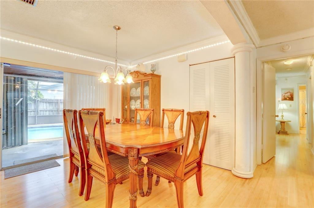 Fabulous location in desirable Palm Aire Village. Spacious home with 4 large bedrooms, 3 full bathrooms and pool with high screened enclosure. Flowing floor plan with updated flooring throughout. Hurricane windows in most of the home with a few hurricane shutters for the back windows. Huge family room and dining area lead out to pool deck. Home is equipped with a generator and two large built in propane tanks. You'll never have to worry about losing power again. There are two storage rooms in the back yard plus extra grass around the screened in pool for walking pets.