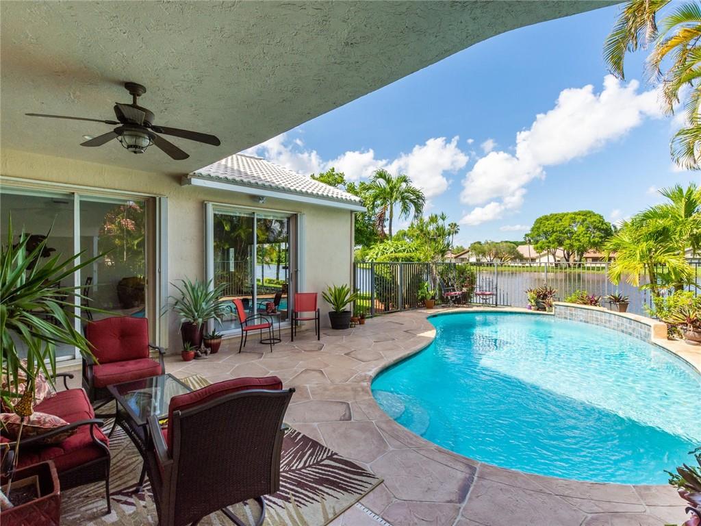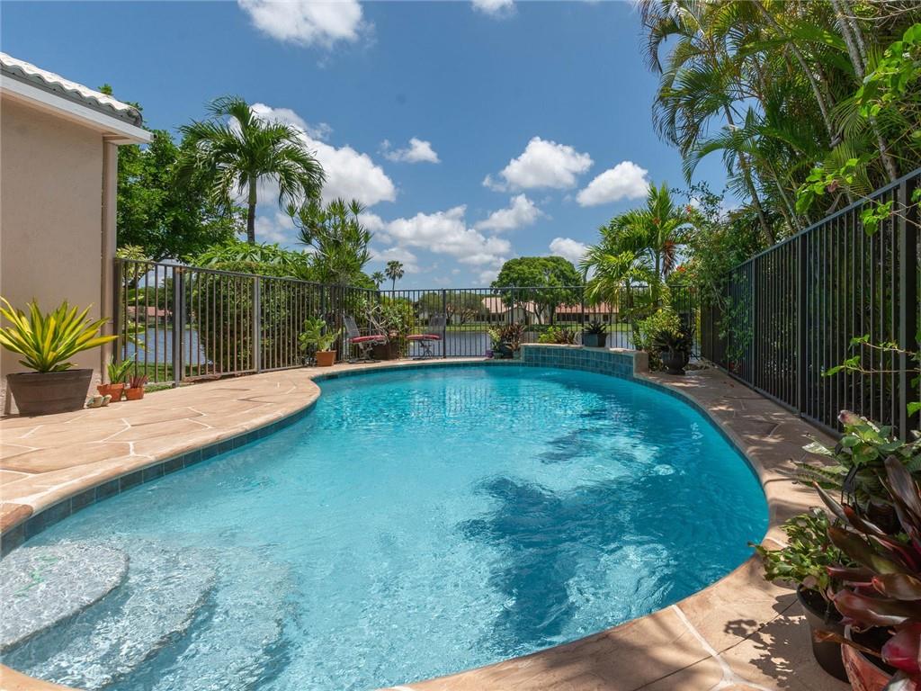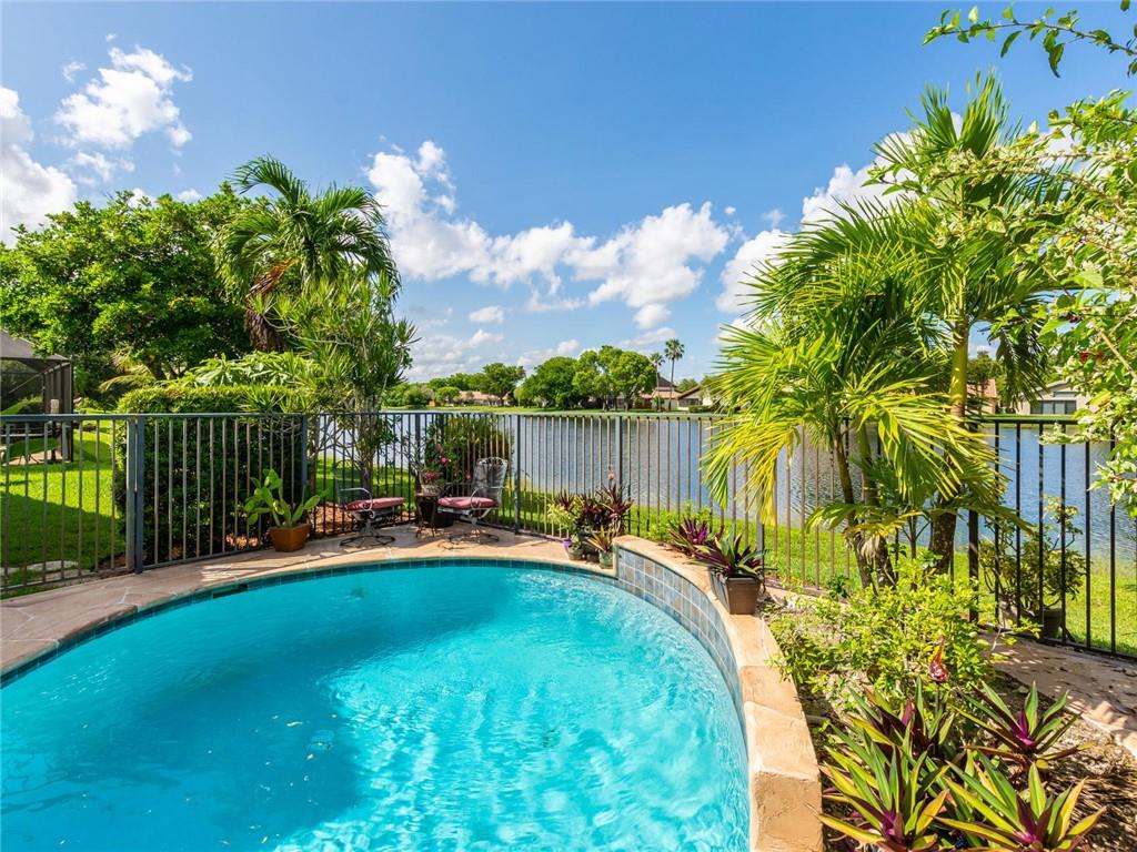 Beautiful and luxurious one-story 4/3 pool and lake home is perfectly situated on a gorgeous open, lake lot. The home boasts tile floors, an upgraded kitchen with granite counter tops, SS appls. Open Family rm w/ view to the lake, glass doors to the pool, patio, & lake. Elegant formal dining rm & living rm. Spacious master w/ 2 walk-in closets & bthrm w/ dual sinks & a gorgeous frame less enclosed shower. Laundry room w/sink, cabinets and washer and dryer. Upgrades incl newer tile rood, & pump, new a/c, crown moldings, covered patio, pool, professionally landscaped yard & more. Located across from Weston's Town Center, gated community, and A Schools.