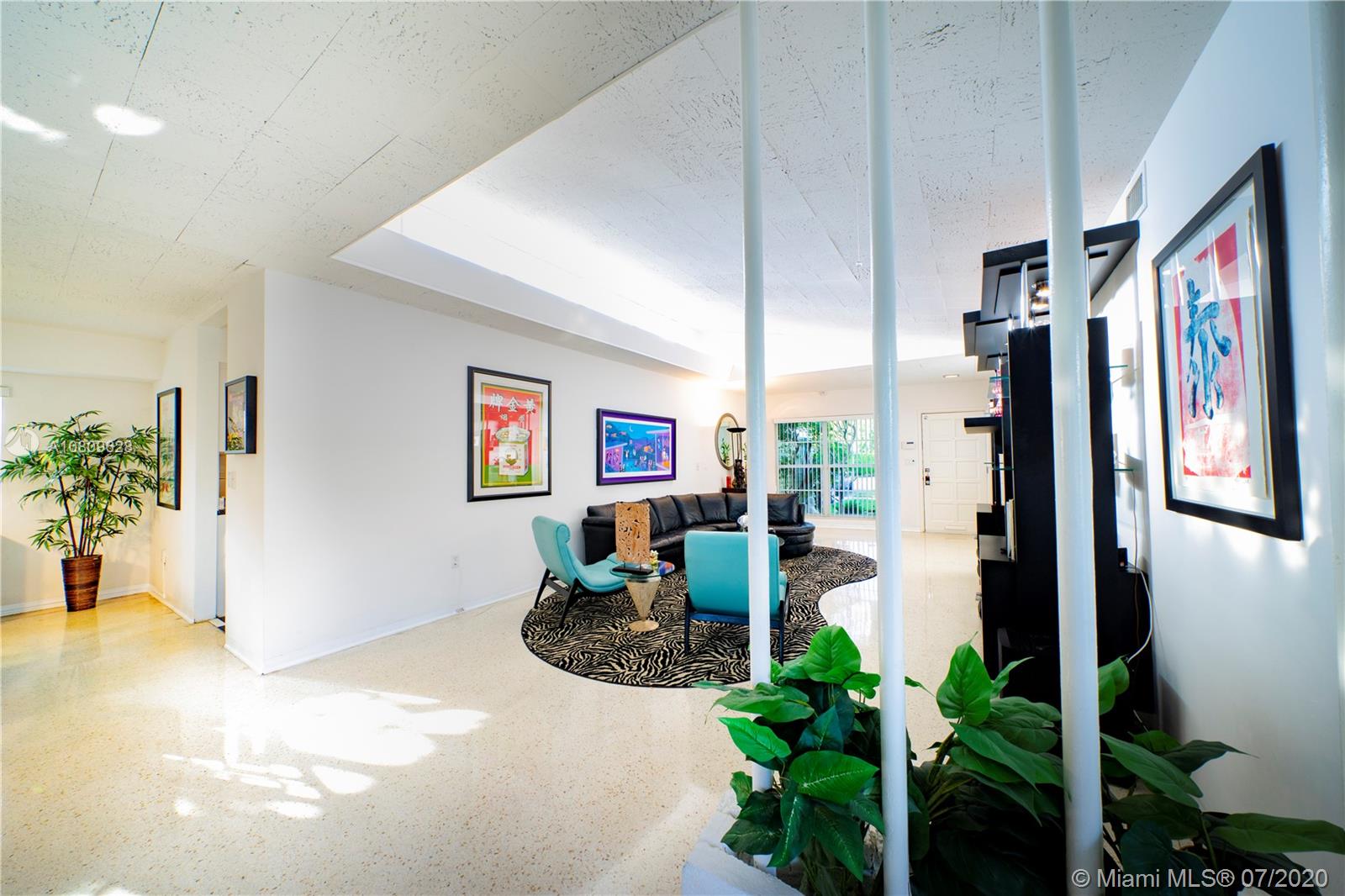 Hip & cool mid-century, single story, Carlos B. Schoeppl designed residence in coveted Lakeview neighborhood. Features iconic Carlos B. Schoeppl architectural details such as tall half-vaulted ceilings, sky windows, gleaming terrazzo floors, fluid floorplans & amazing use of space. Plenty of windows fill the home w/ natural light. Eat-in gas kitchen offers custom cabinetry & full S.S. appliances. Spacious backyard with wooden deck, jacuzzi, lots of green space lined with tall hedges for complete privacy+room for a pool. Great for kids & pets, fantastic schools – minutes to beaches, Rec Centers, Parks, dining & shopping! Easy commuting to major highways, JCC, Hospital & MIA. Oversized 1 car garage w/ shutters + laundry & storage..