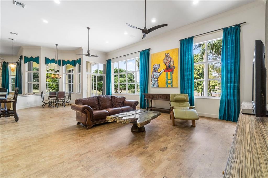 Exceptional, expansive 180 degree water views and lush, exquisitely manicured lawns set the scene for this executive oasis nestled in one of Davie's best kept secrets, Mystique Estates. Spacious 4 bedroom plus den, 4 bath, single level home bordered on two sides by 300 feet of lake frontage in gated community. Decorators own home completely redesigned with top of the line custom cabinetry, finishes, fixtures and appliances. Kitchen is a show-stopper! New flooring throughout home, new tile roof, refinished pool and patio. Open floor plan with 14-foot high ceilings. Perfect for entertaining. Spa-like master bath with steam shower and jetted tub, finished with travertine. Free form saltwater pool with waterfall. 3 car garage off circular paver driveway. Custom closets, and so much more.