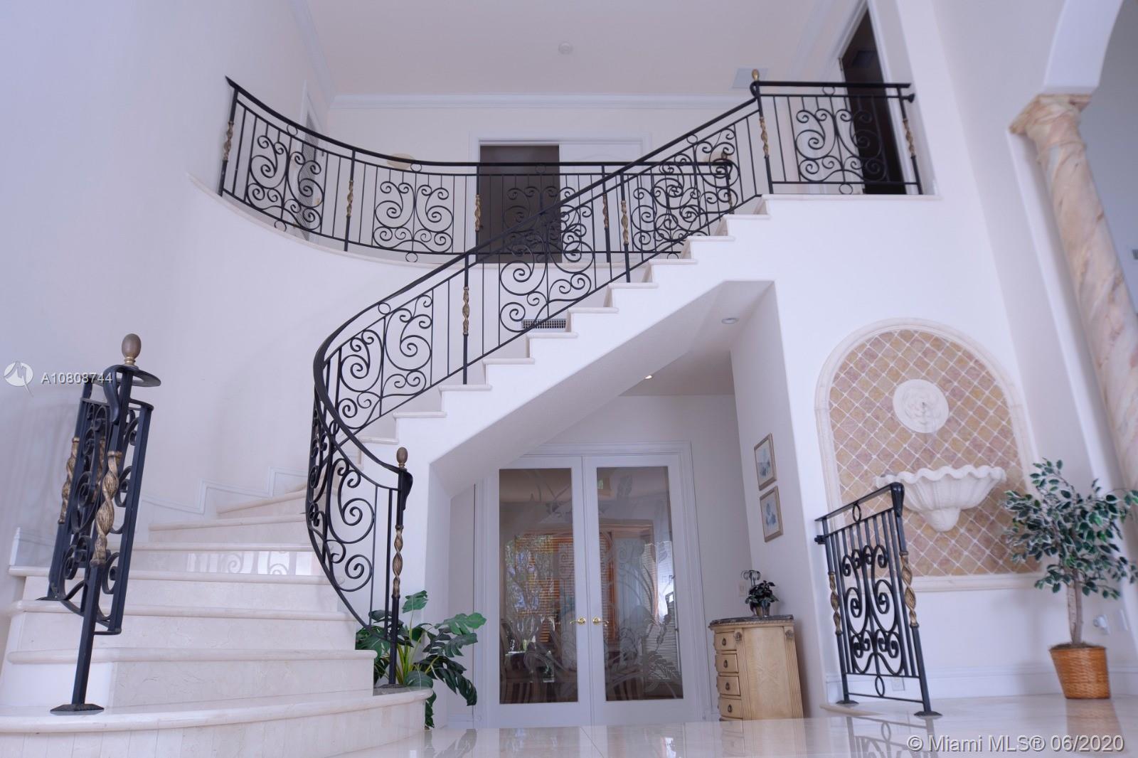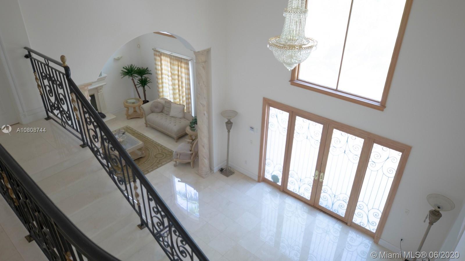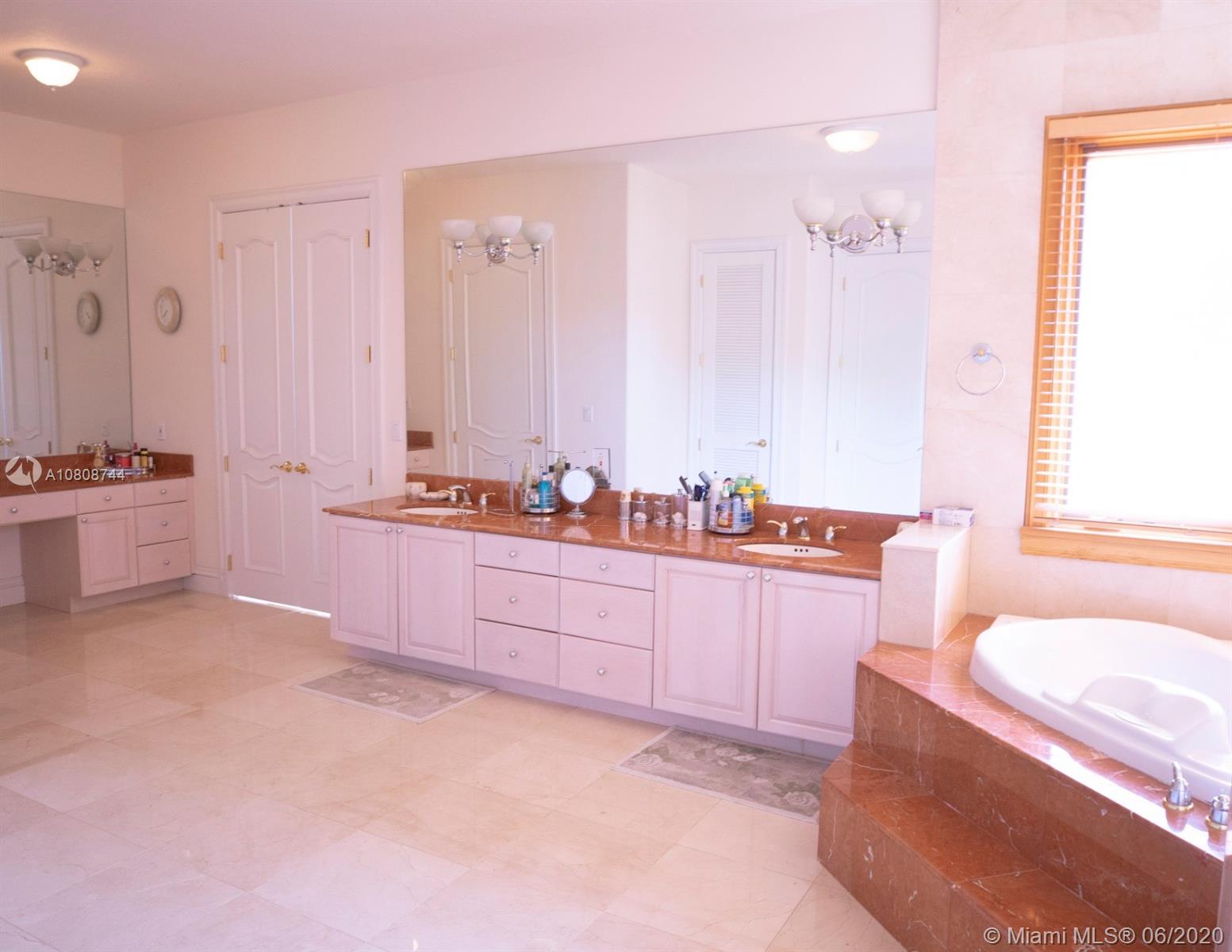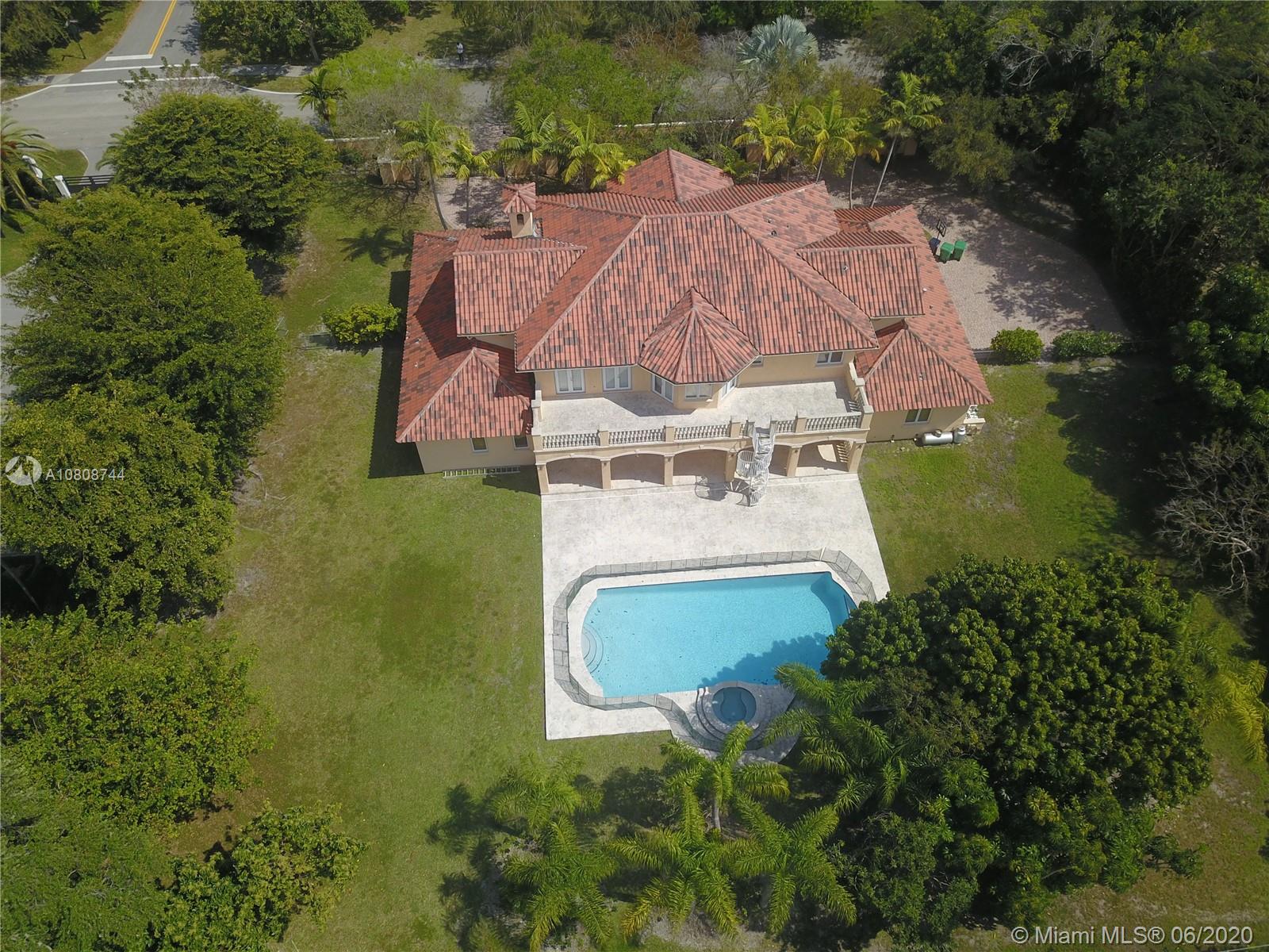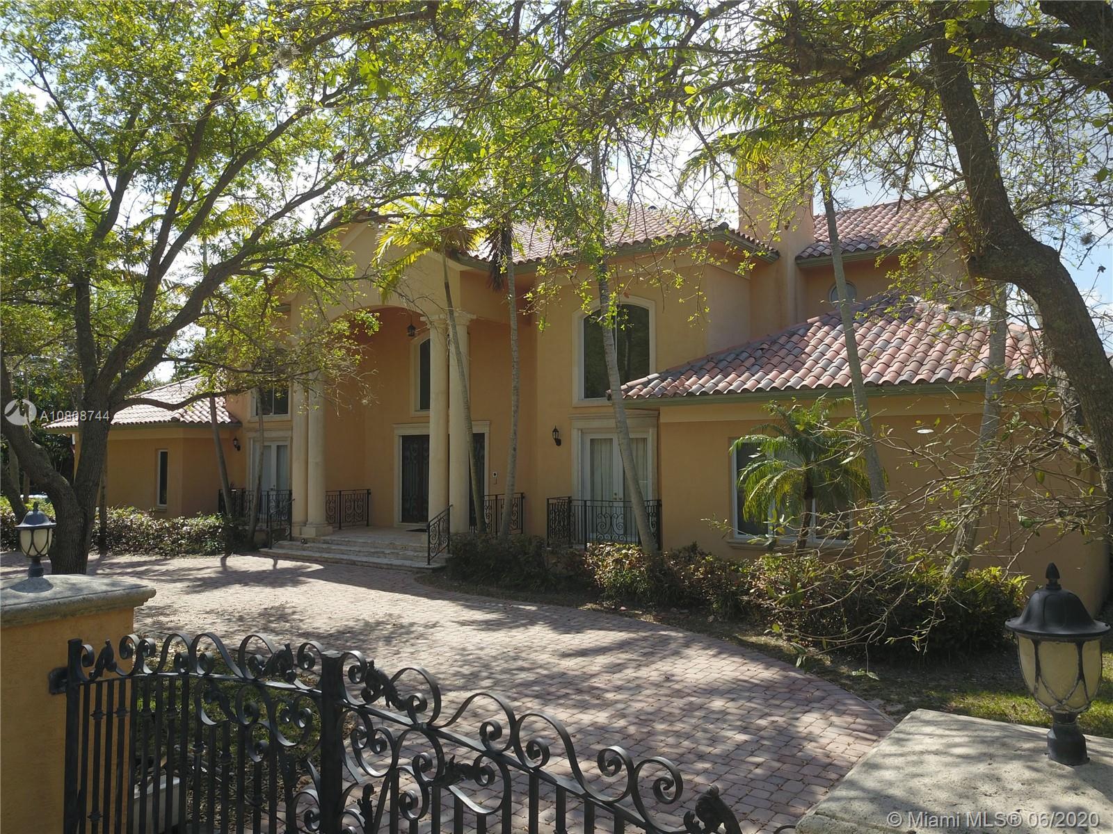 Waiting for your personal touches is this exquisite Pinecrest two story Mediterranean Estate. Walled and Gated entry for your privacy and security. Heated pool/jacuzzi. Drive way offers plenty of parking space in addition to a 3 car garage. This elegant home has 6151 sq ft of living space. Downstairs are 5 bedrooms and 3.5 baths. One small master suite, enormous walk in closets in 4 of the 5 rooms, Two of the rooms share a spacious Jack N Jill bathroom. All of the upstairs is the Master bedroom which in addition has its own siting area/living room, wet bar and also an additional room which could be a gym, nursery, or office as well as the bathroom. Easy to show.